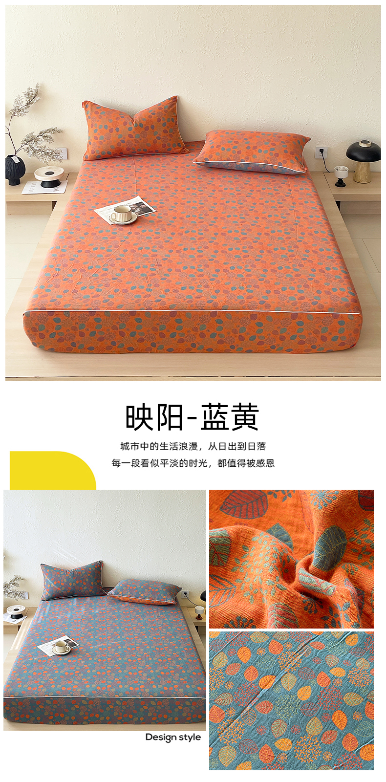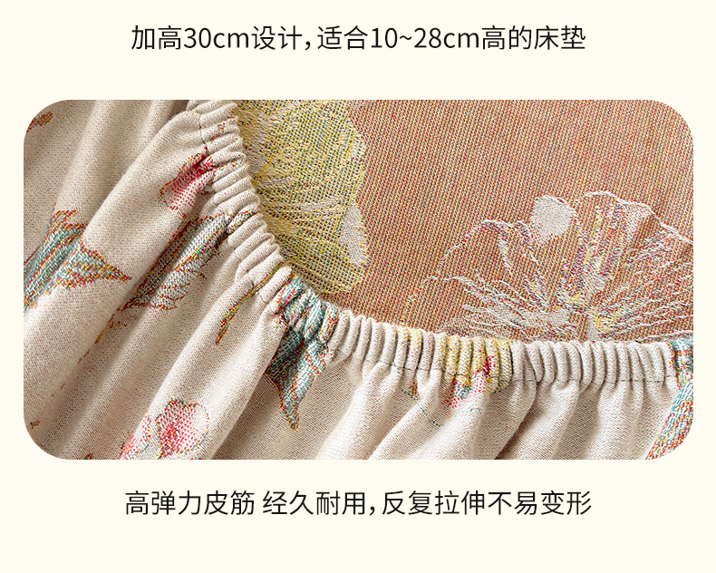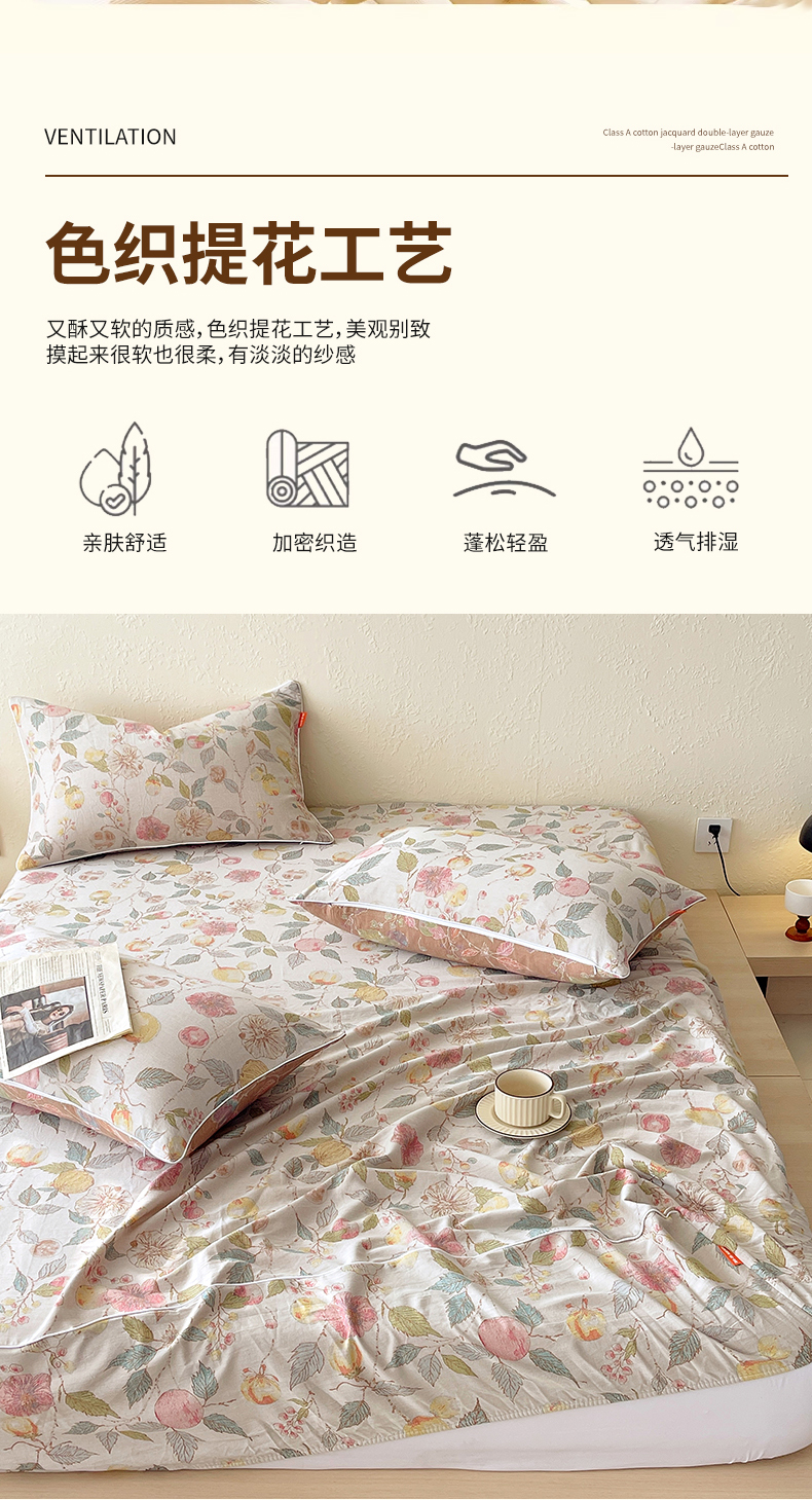 商品名称:春皖家纺 2026春夏新款(正反两用)A类提花双层纱单床笠 稔秋