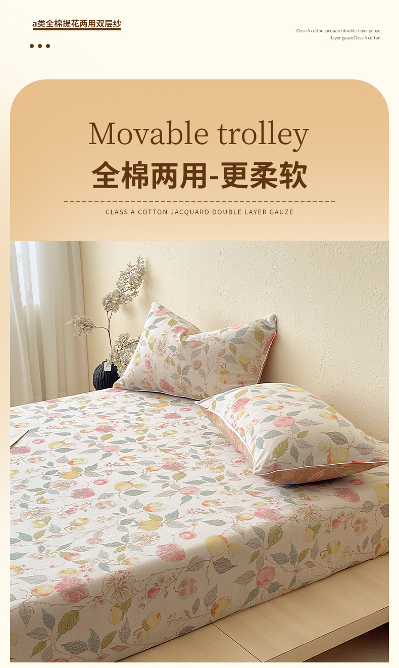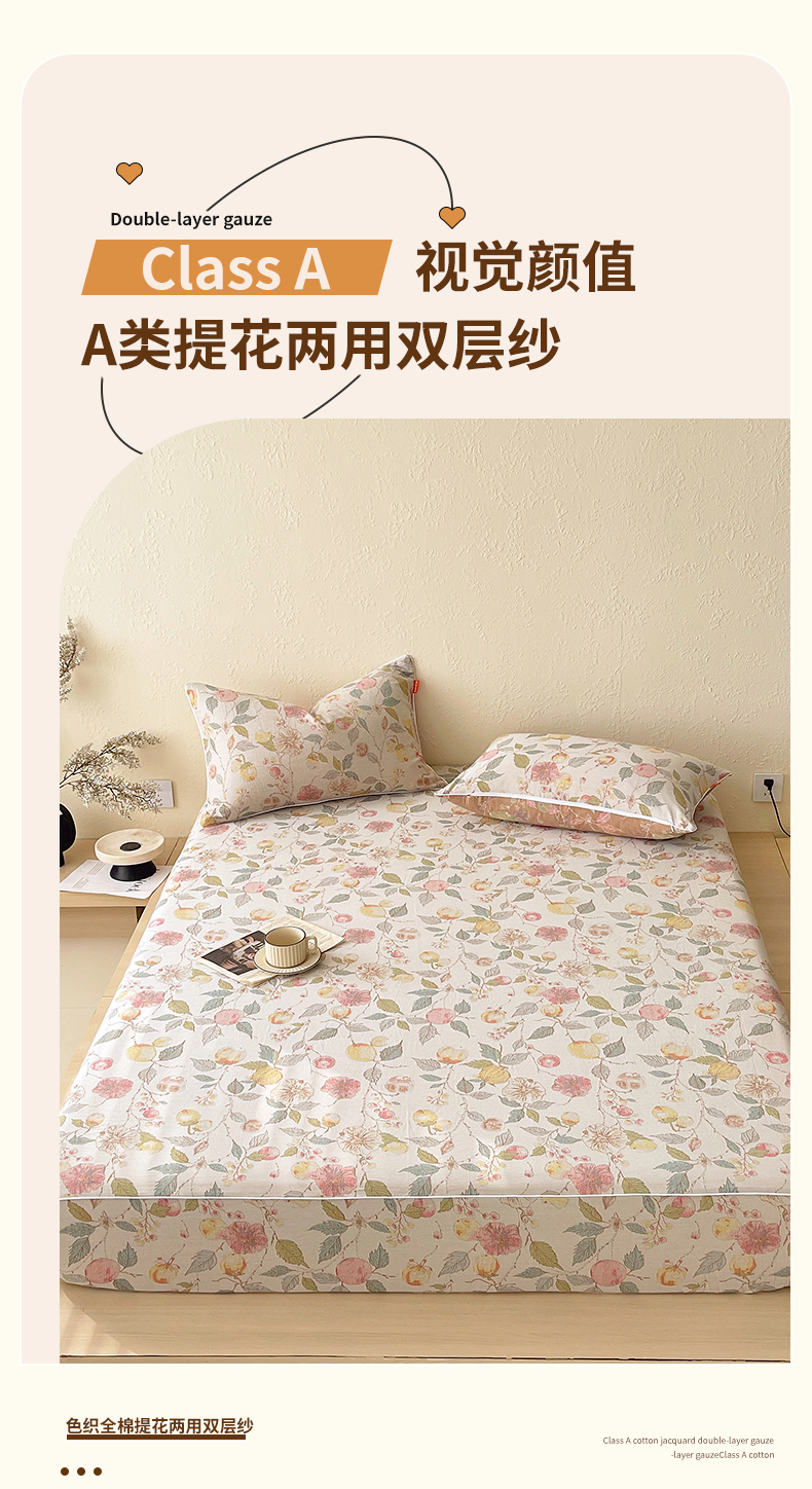 春皖家纺 2026春夏新款(正反两用)A类提花双层纱单床笠 稔秋