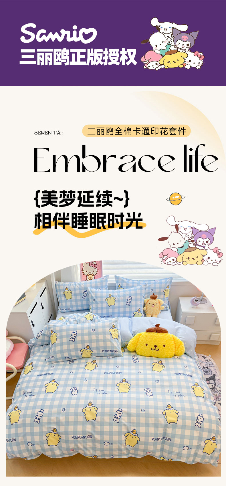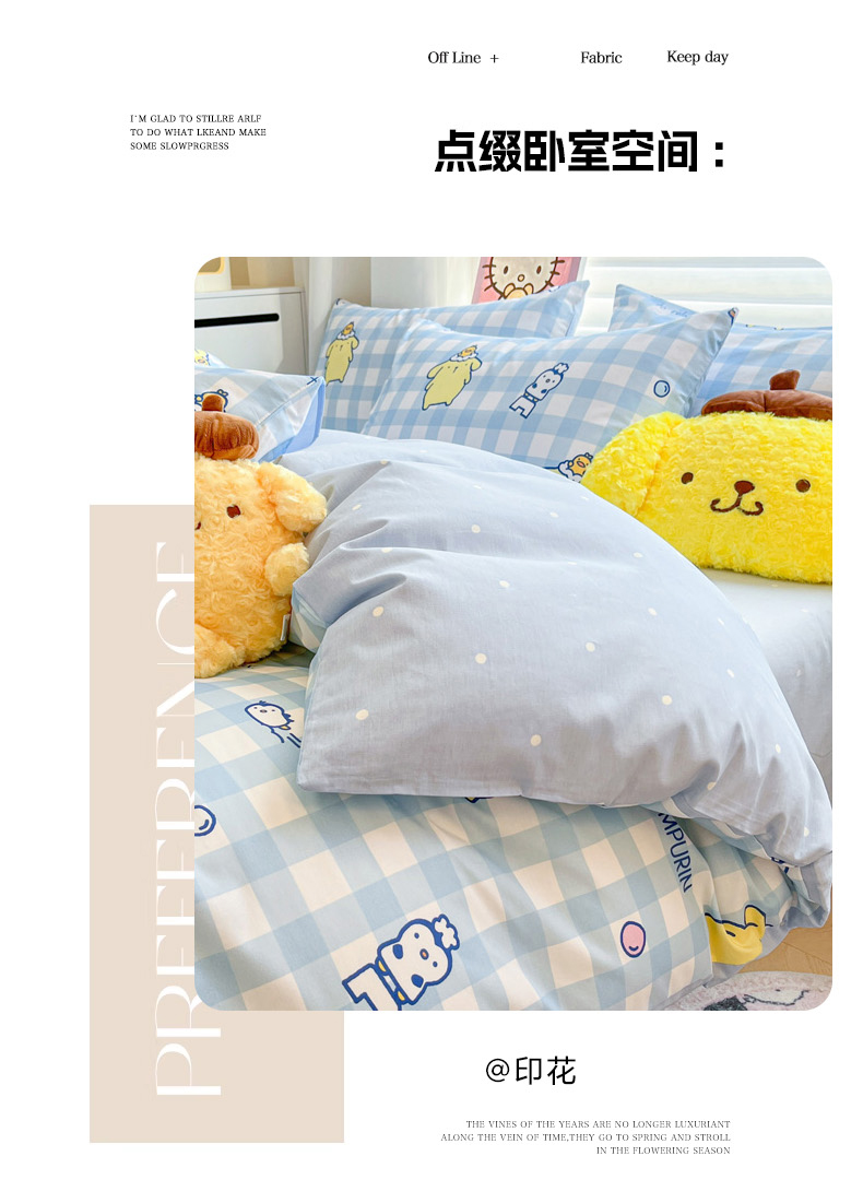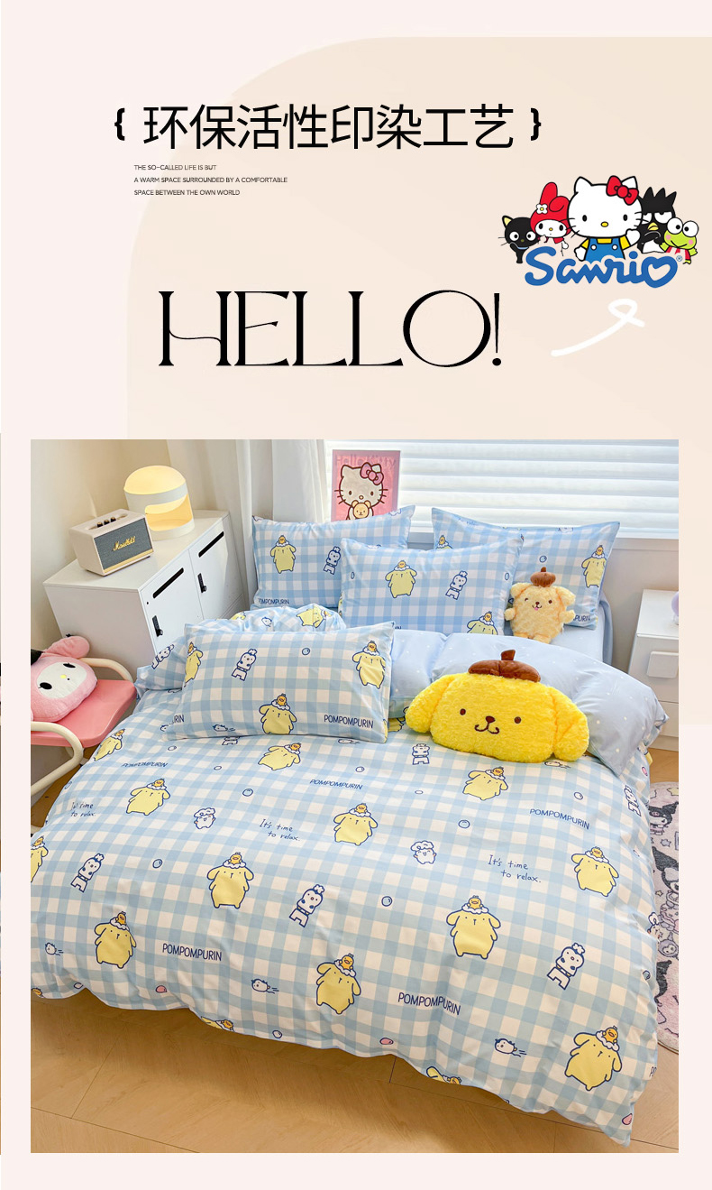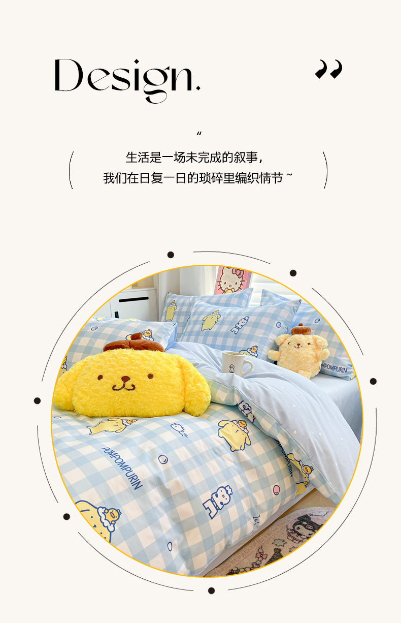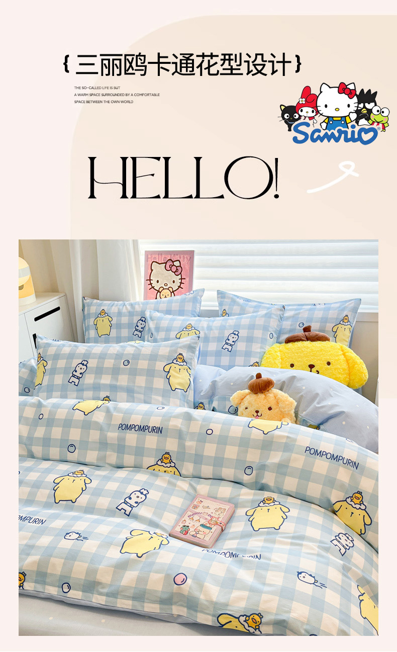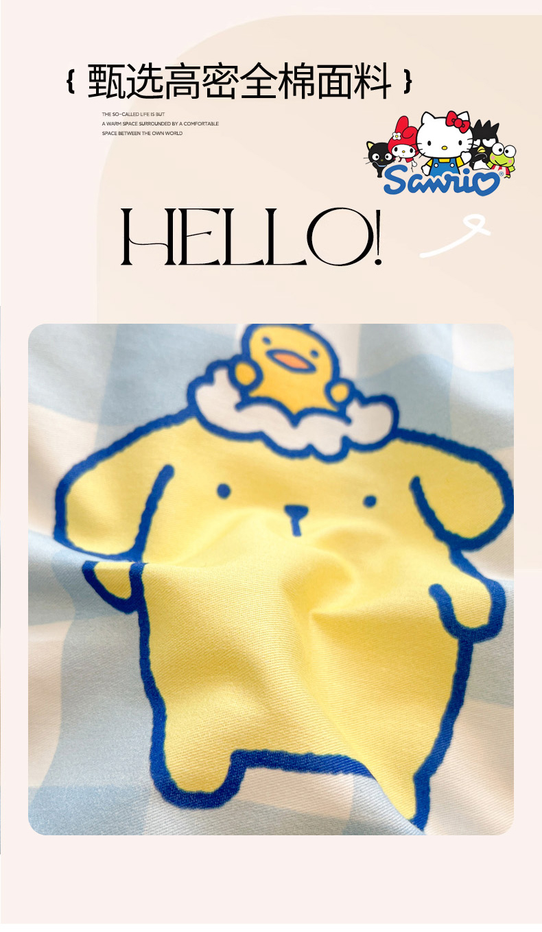 当前位置: 91家纺网 > 商品网购 > 床品套件 > 四件套 > 全棉普通四件套 > 暮思家居 2026新款正版授权三丽鸥全棉纯棉四件套系列-第二批 泡泡布丁狗