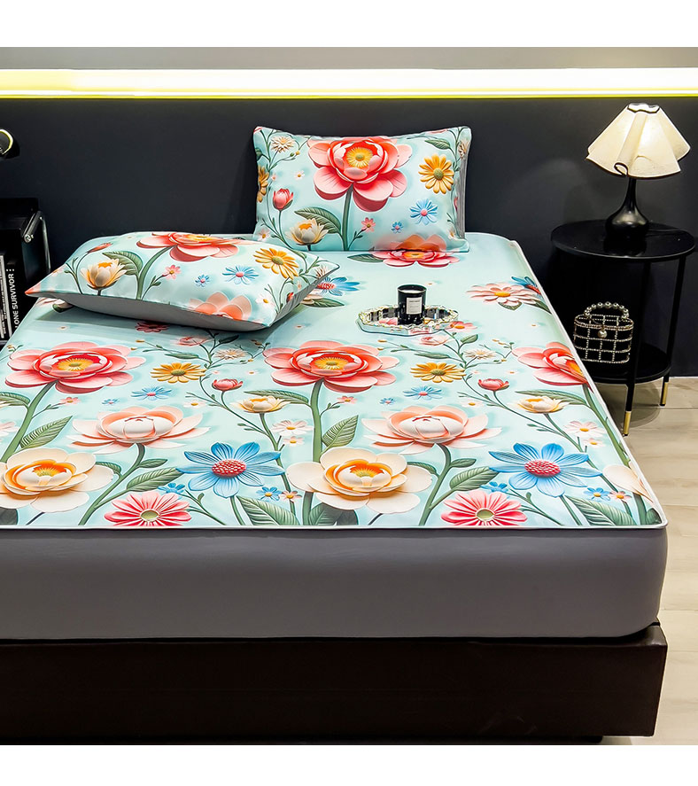 许林 2026新款冰丝凉席床单款凉席三件套 朵真,朵真