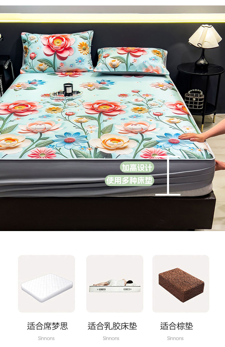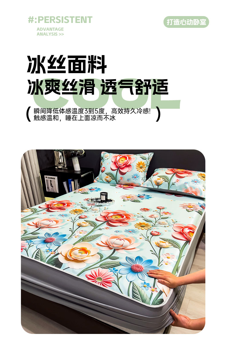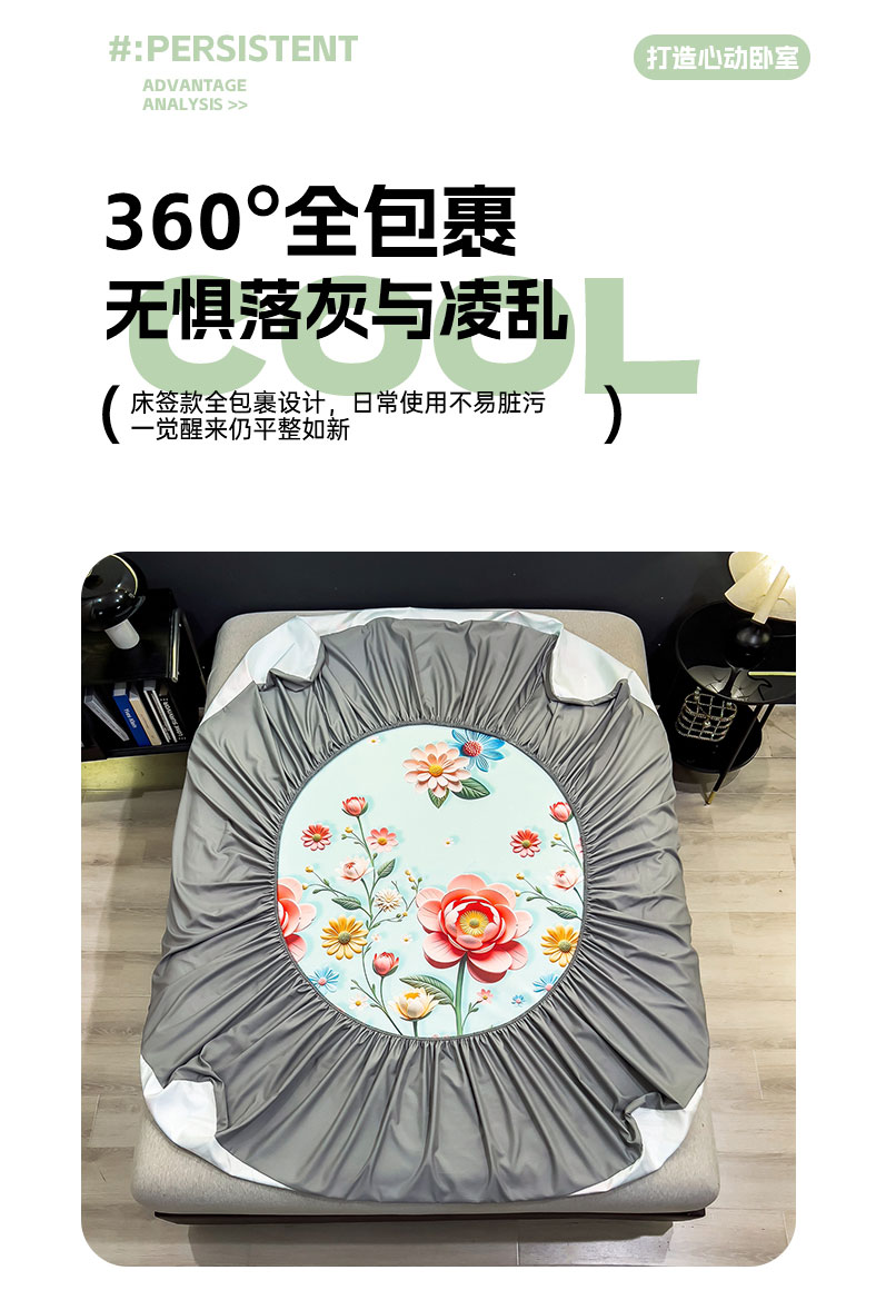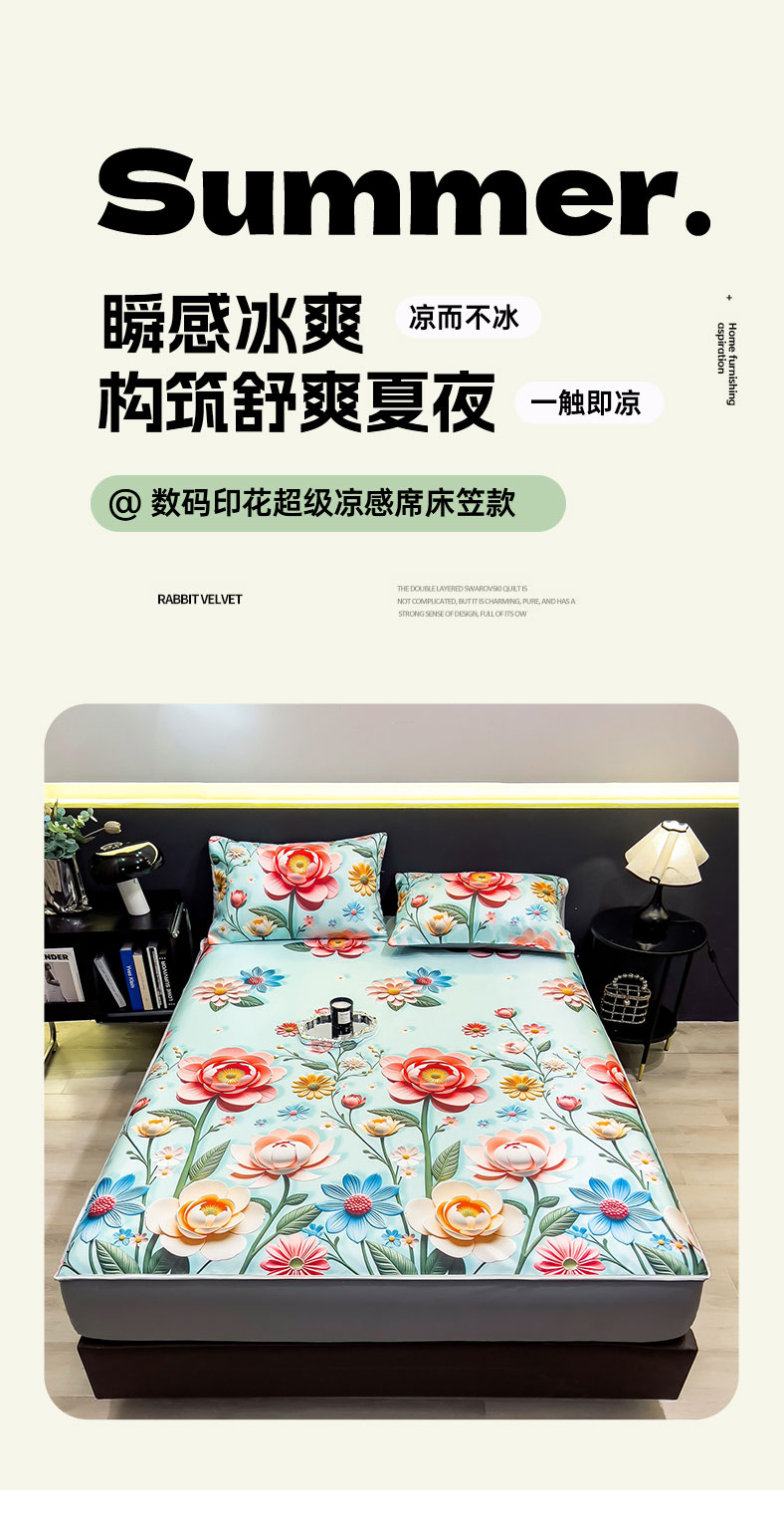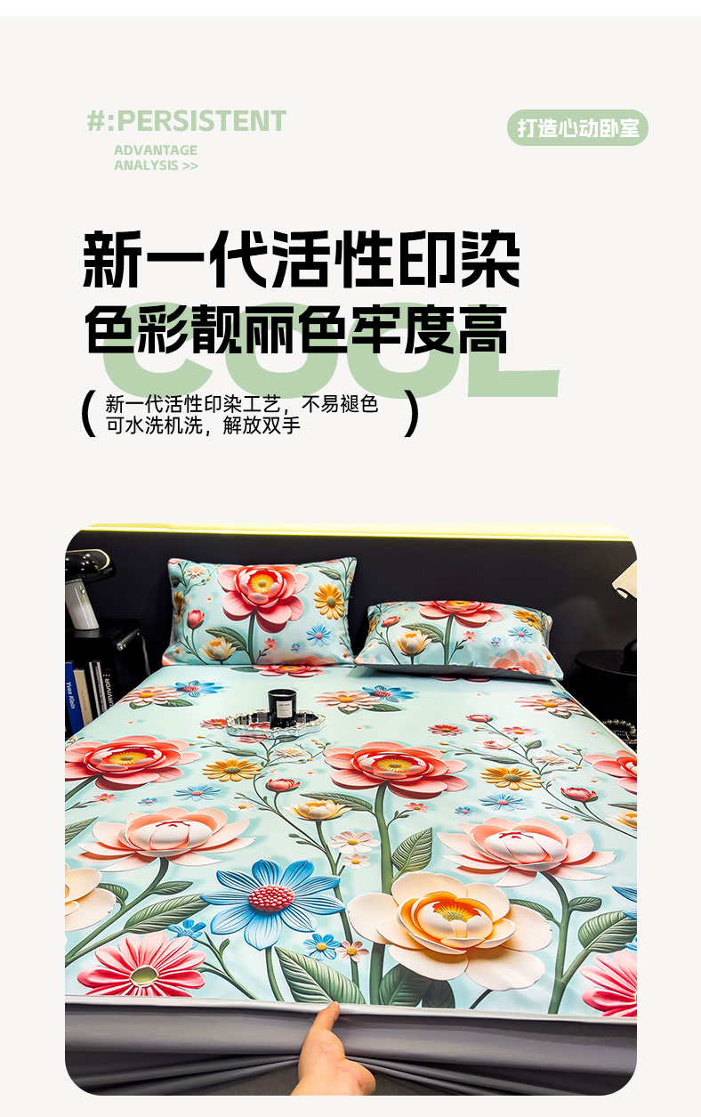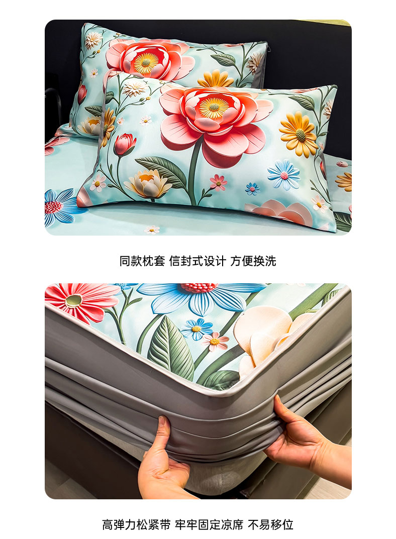 许林家纺 2026新款数码印花超级凉感席床笠款 春生物