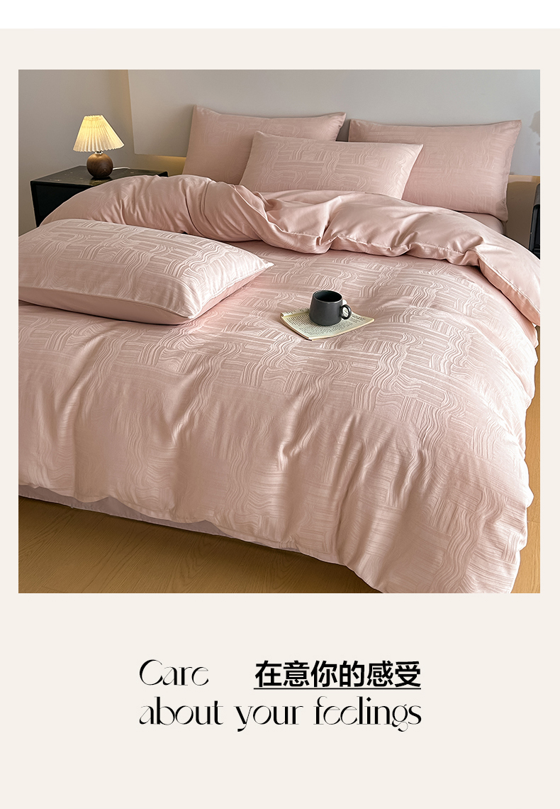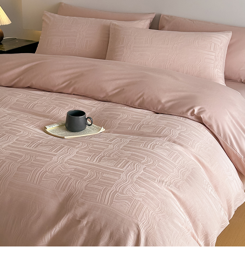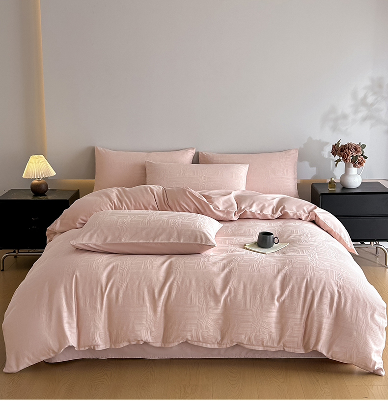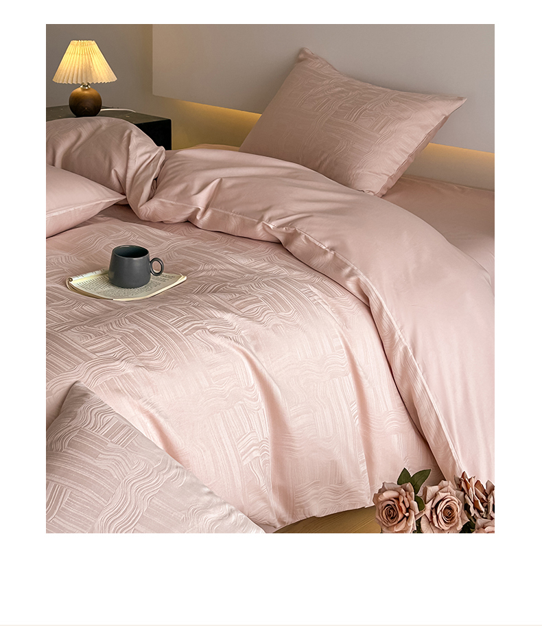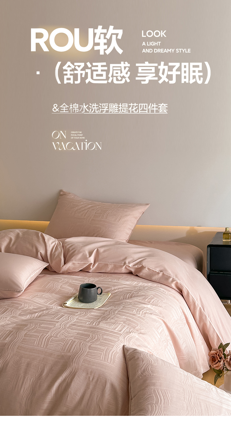 曼之夏 2026新款60支全棉水洗浮雕提花四件套 幻纤影-粉金