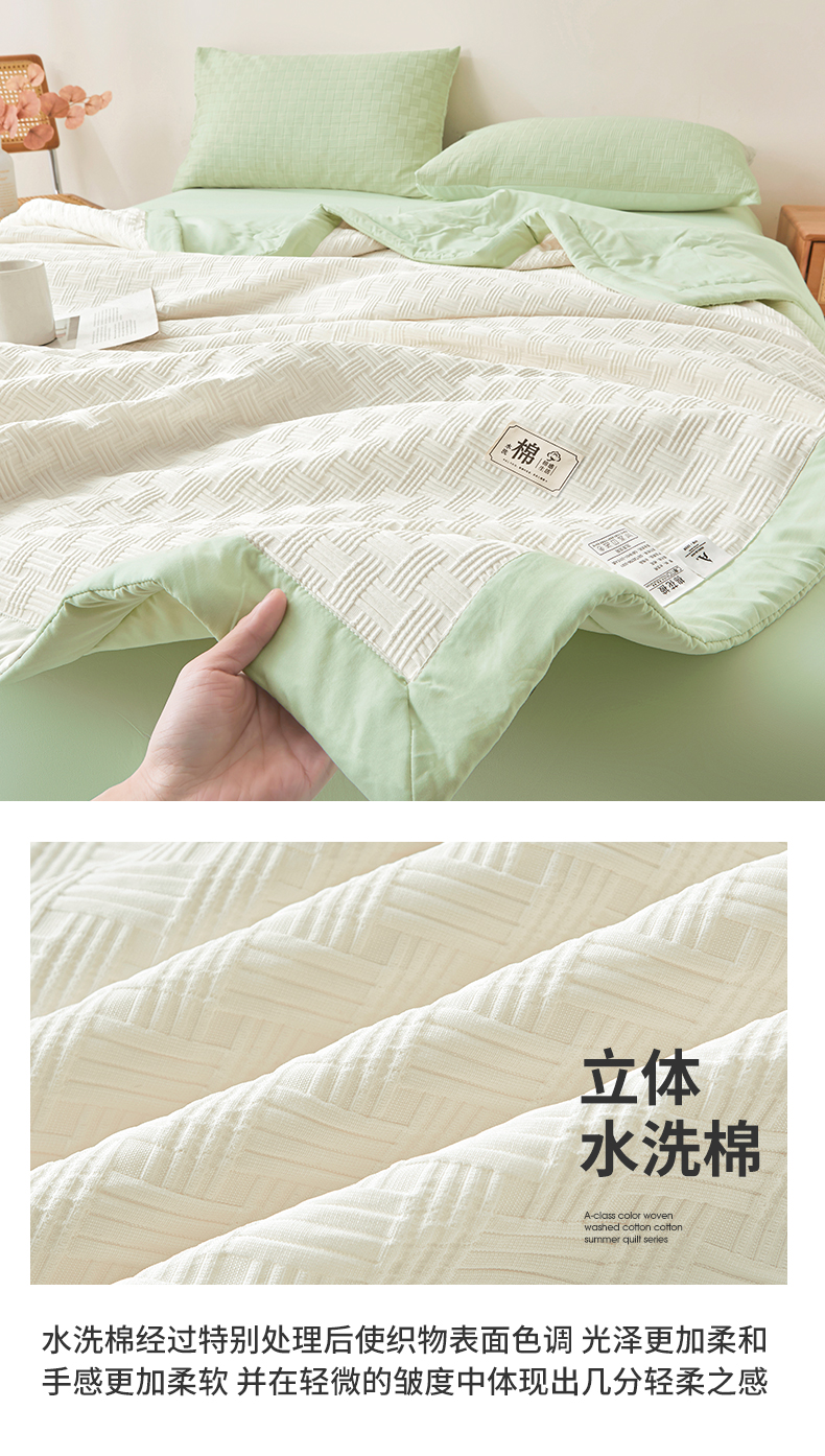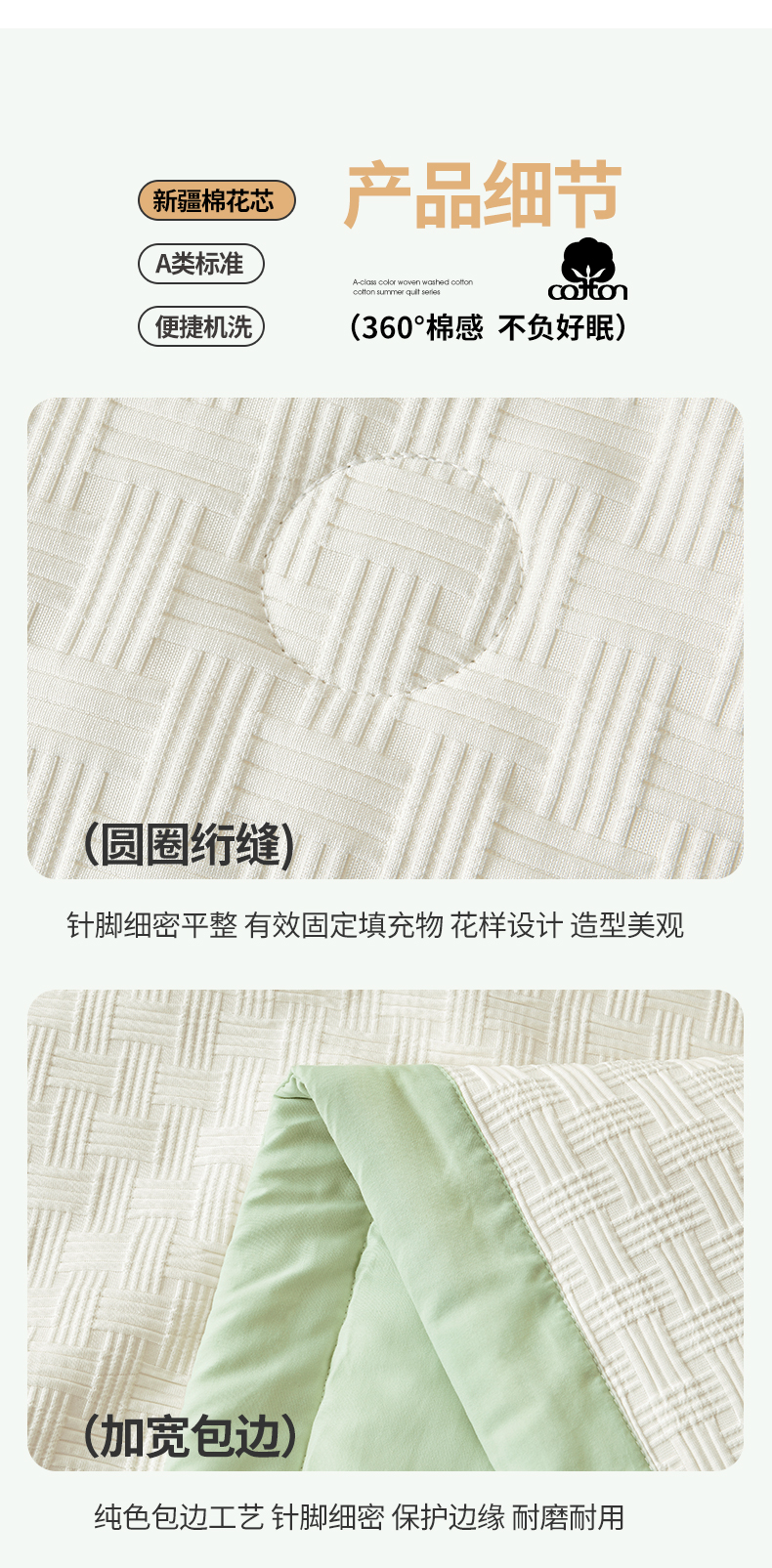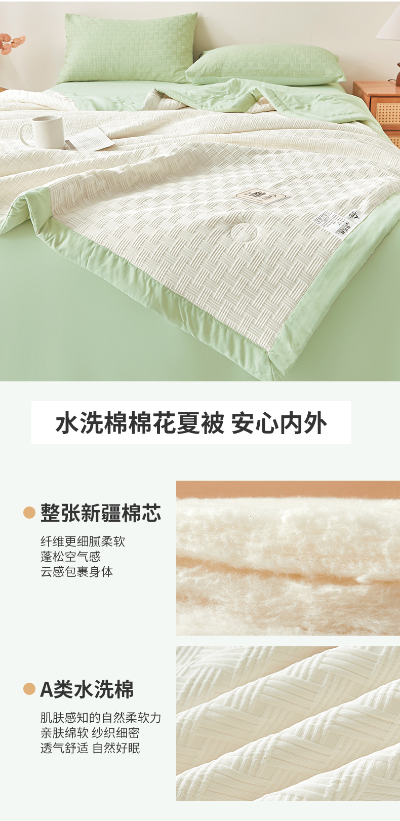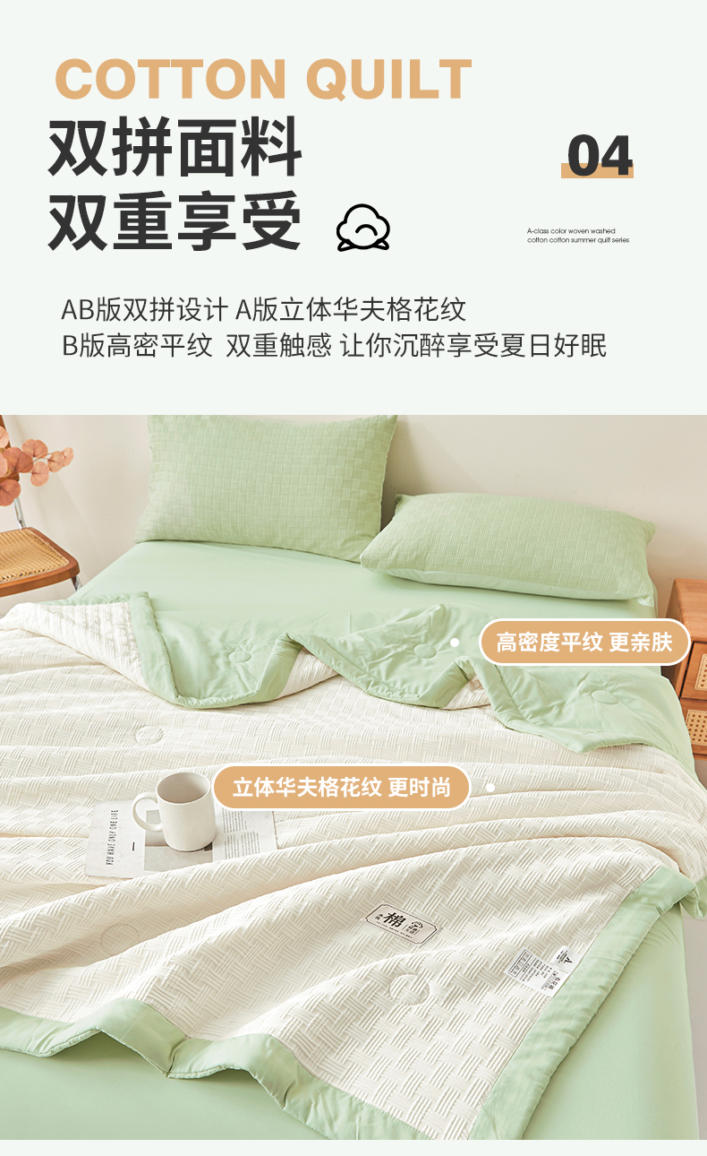 商品名称:好睡棉 2026新款华夫格双拼夏被夏凉被空调被新疆棉花被子 白拼绿