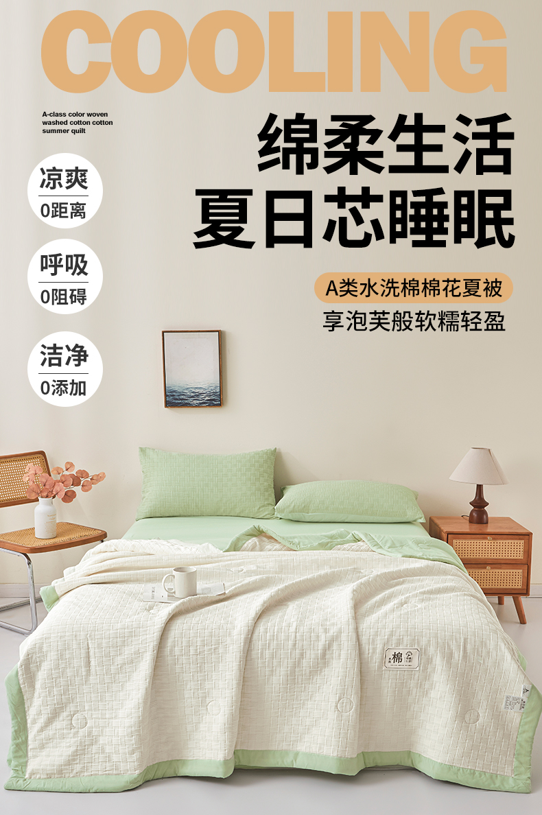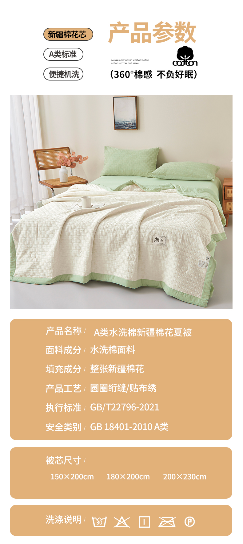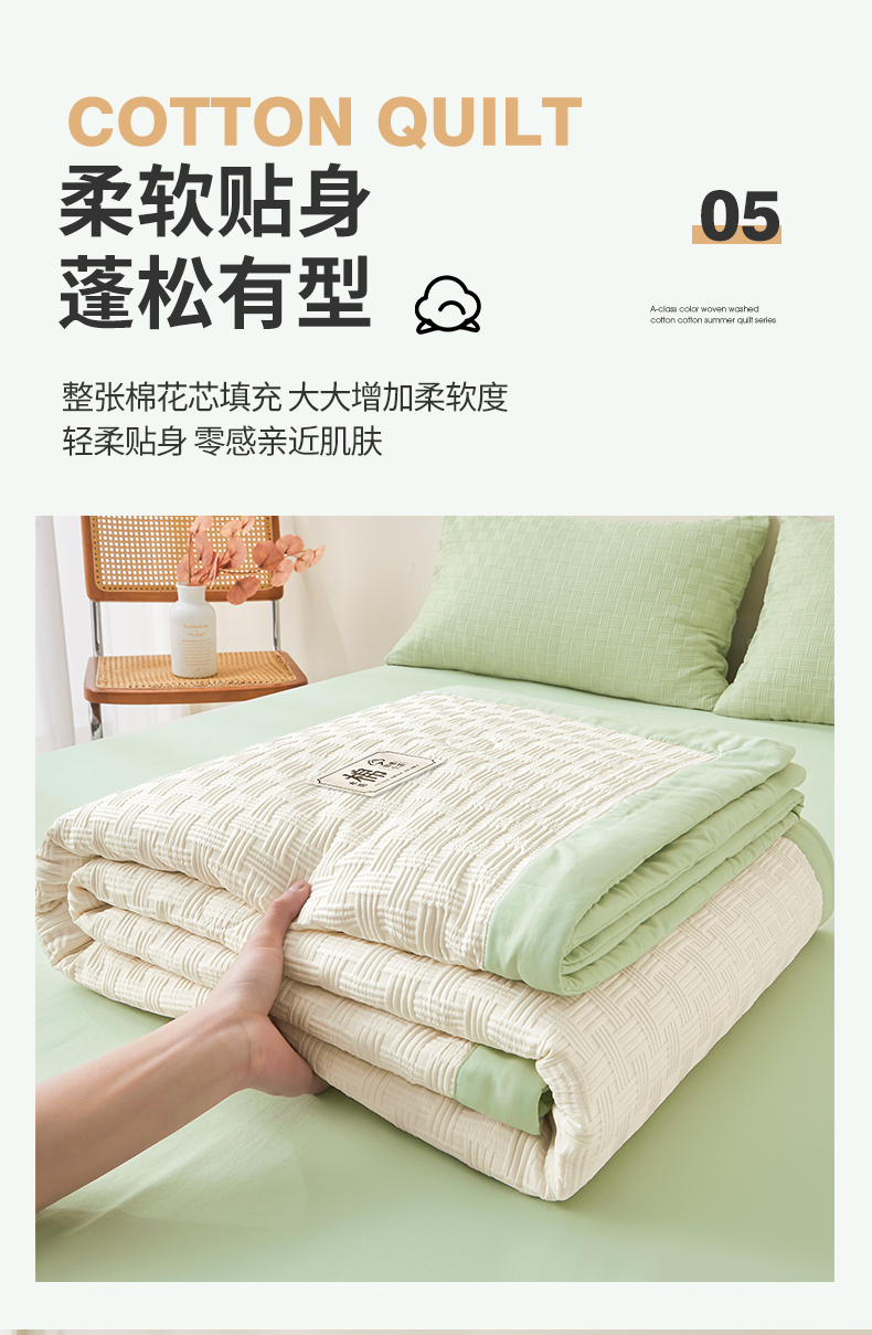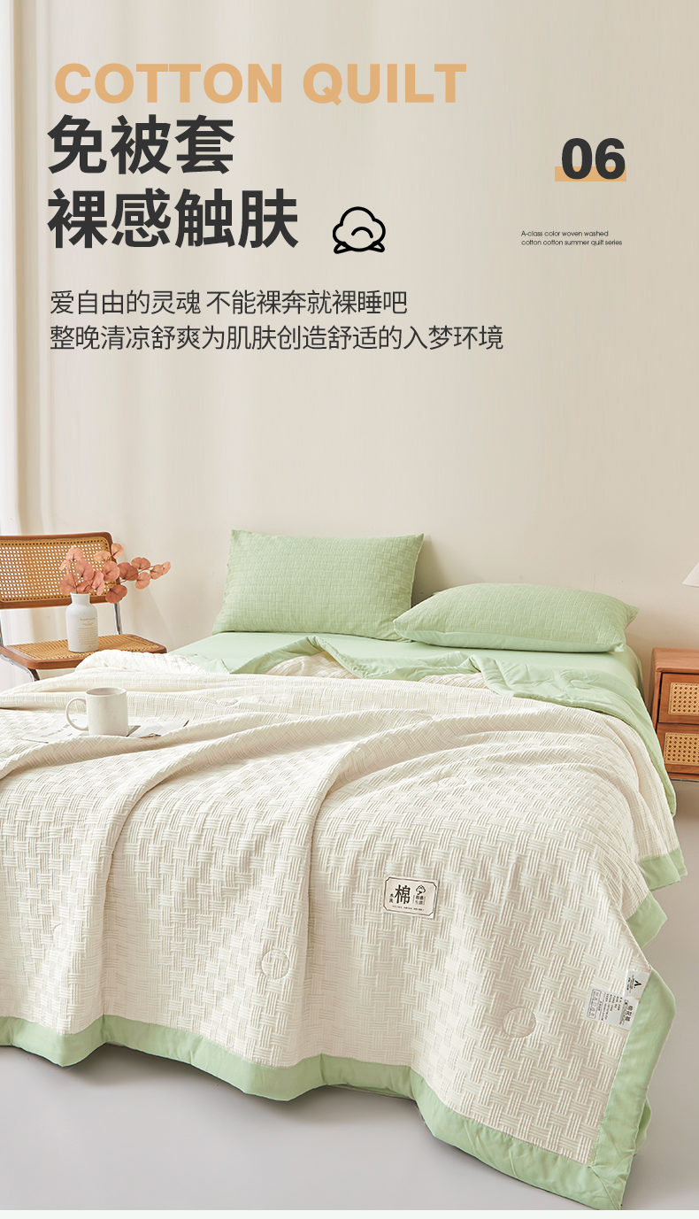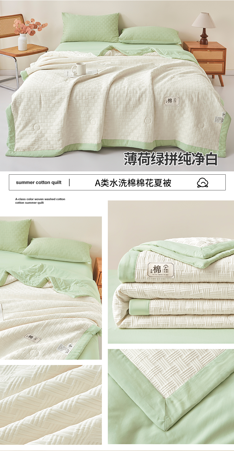 商品名称:好睡棉 2026新款华夫格双拼夏被夏凉被空调被新疆棉花被子 白拼绿