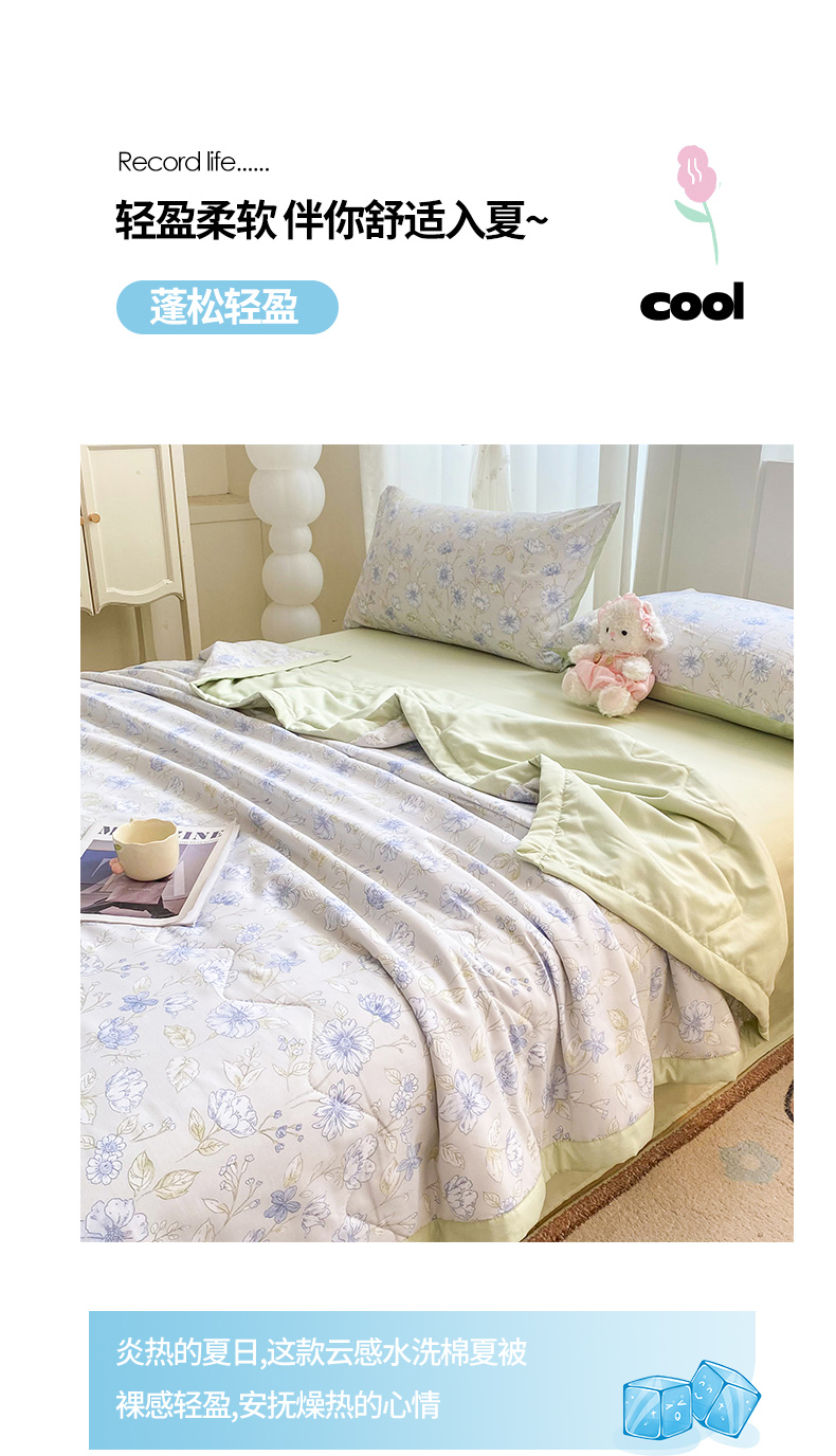 商品名称:延遥 2026新款水洗棉夏被夏凉被空调被薄被子直播爆款 浅雾花涧