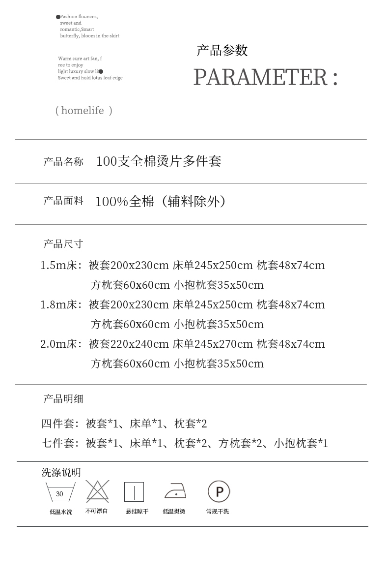 商品名称:(总)100支皇妃缎100%全棉烫片纯色四件套长绒棉