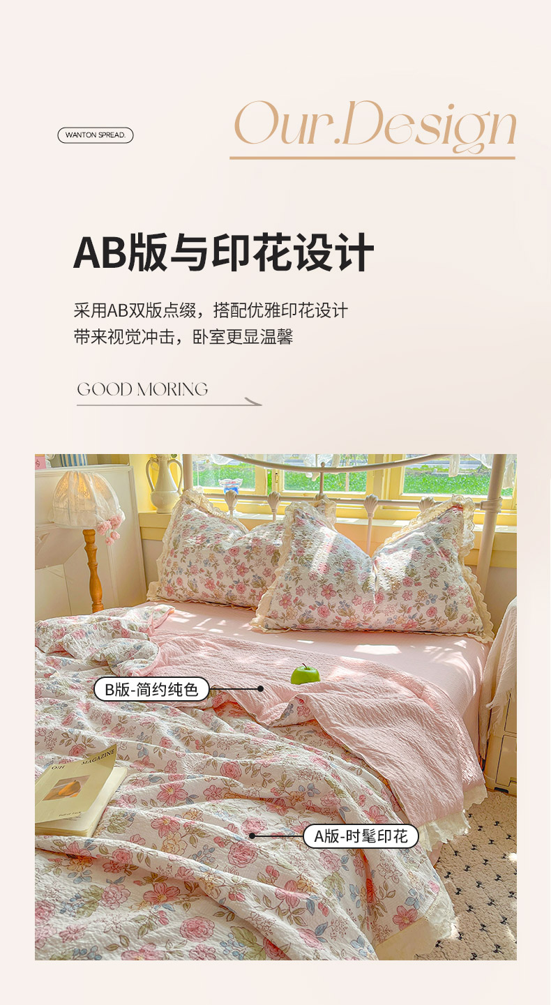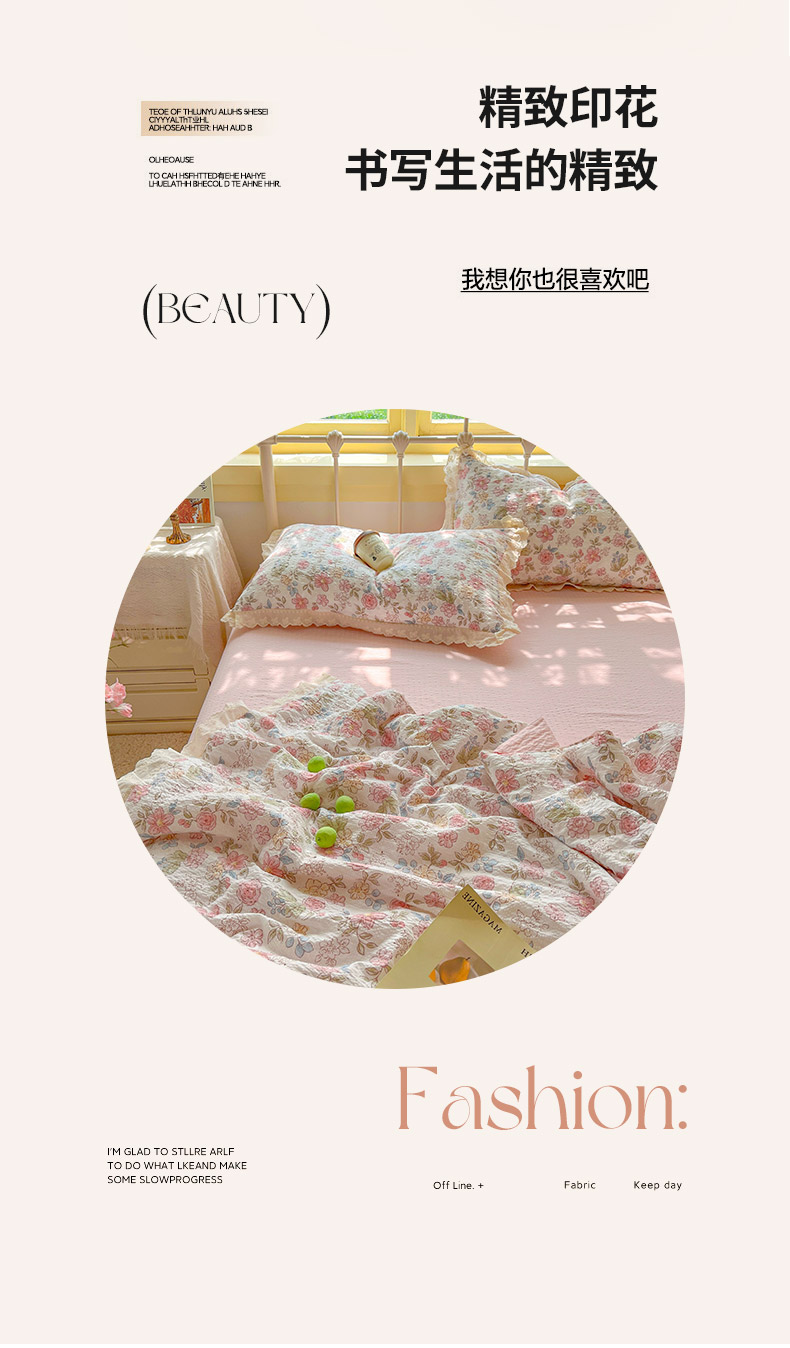 (总)金梦拉家纺 2026新款皱皱纱泡泡纱法式赫本系列床盖大花边四件套夏被四件套,黑暗荣耀,山樱漫岛,字母星河,樱桃记忆,心之光,少女心事,四叶草,墨染星辰