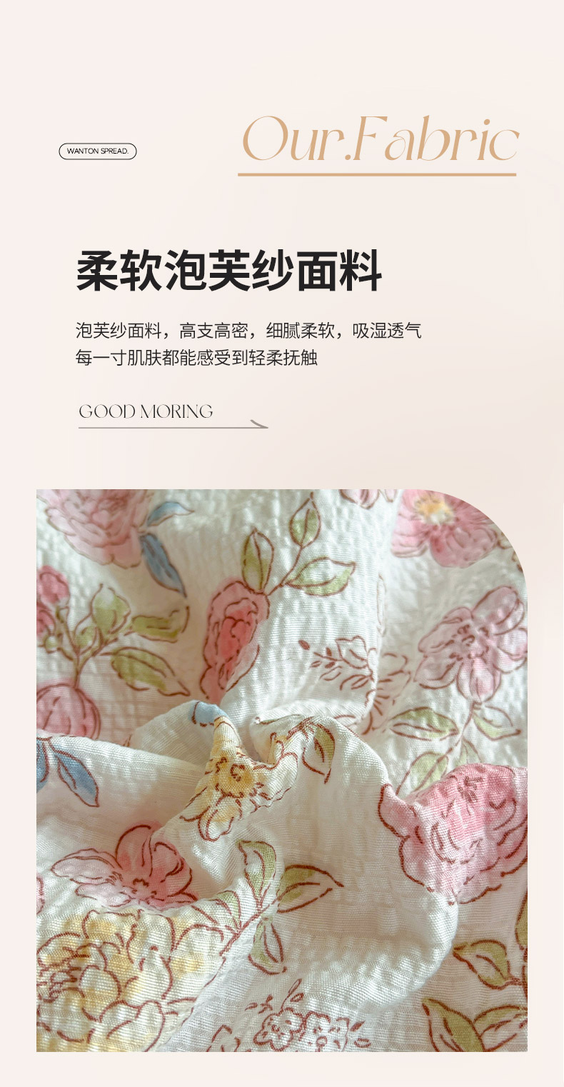 (总)金梦拉家纺 2025新款提花纱布棉双层纱皱皱纱四件套,微醺玫瑰,梦华录,花开半夏,漫山紫野,薄荷初夏,点点草莓,法式浪漫,粉杏绿,花颜,惠心,桔梗紫,咖调蝴蝶结,快乐狗,梨落,林间兔,绿意,绿茵,满园春色,曼塔庄园,萌萌小兔,雾野山茶,小野菊,寻春,樱桃,月梨漫香,芝士黄,枝蔓绿,紫线调,紫樱落