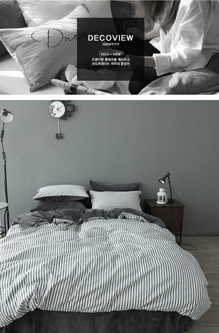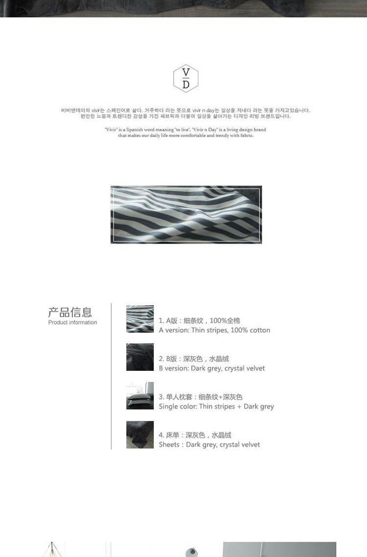 (总)梦家居 2024新款全棉13372简约小清新四件套,彩虹条纹,墨竹—黑色,墨竹—米色
