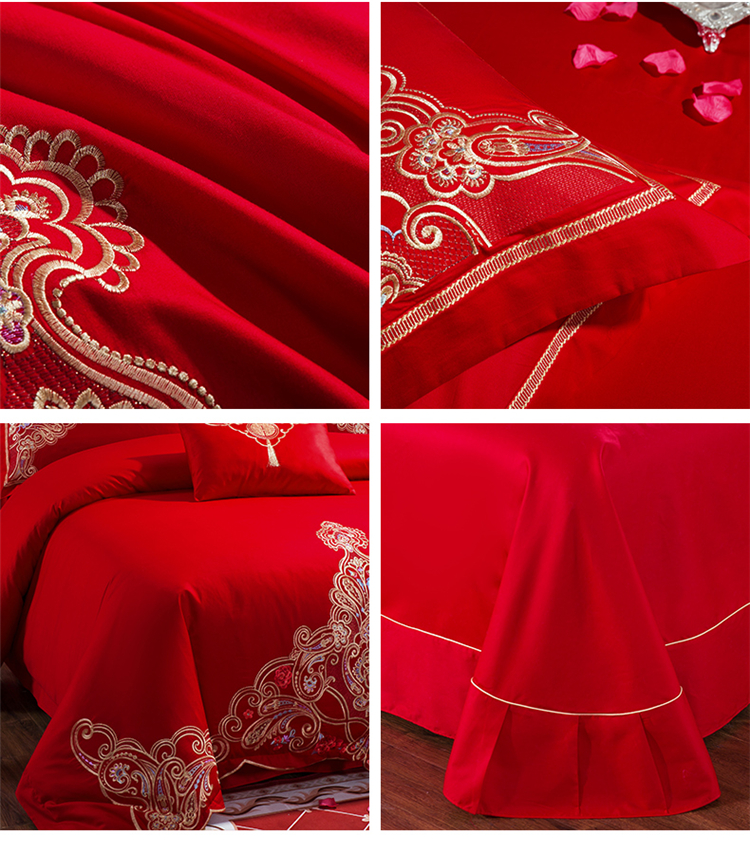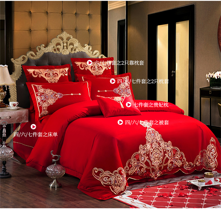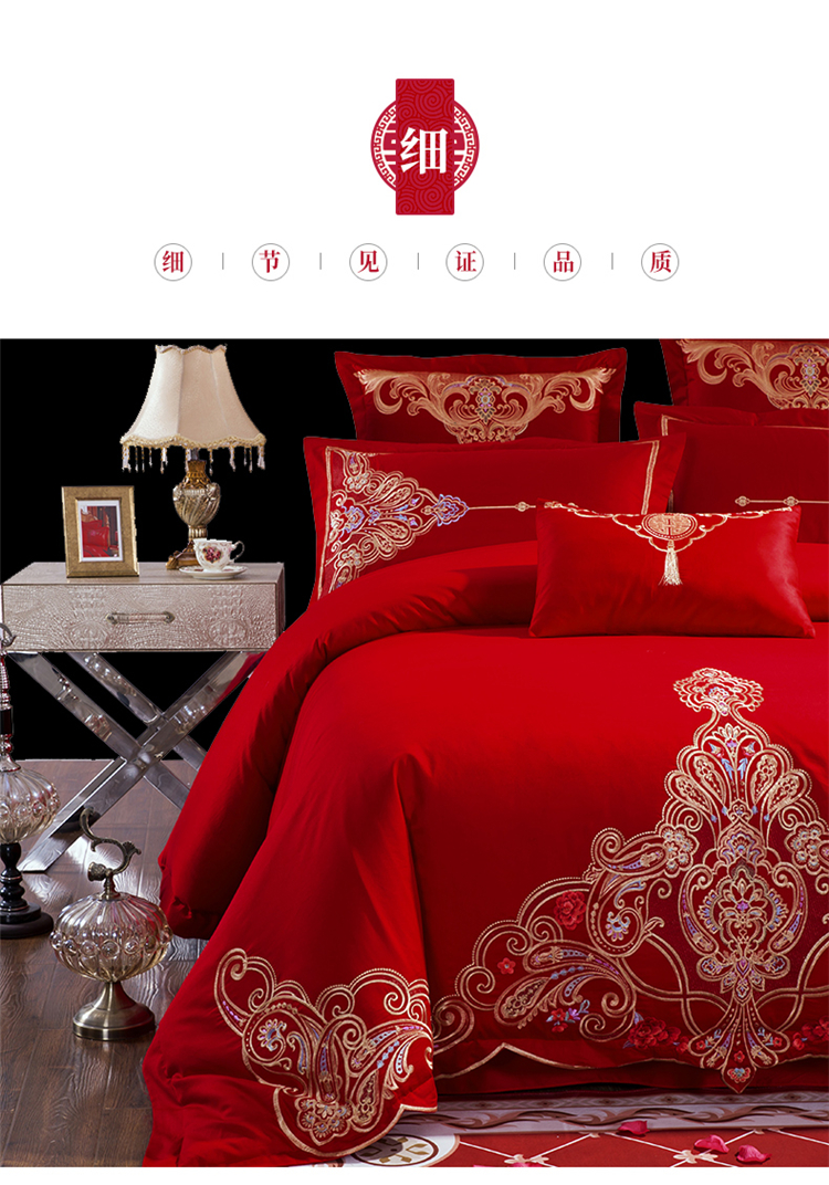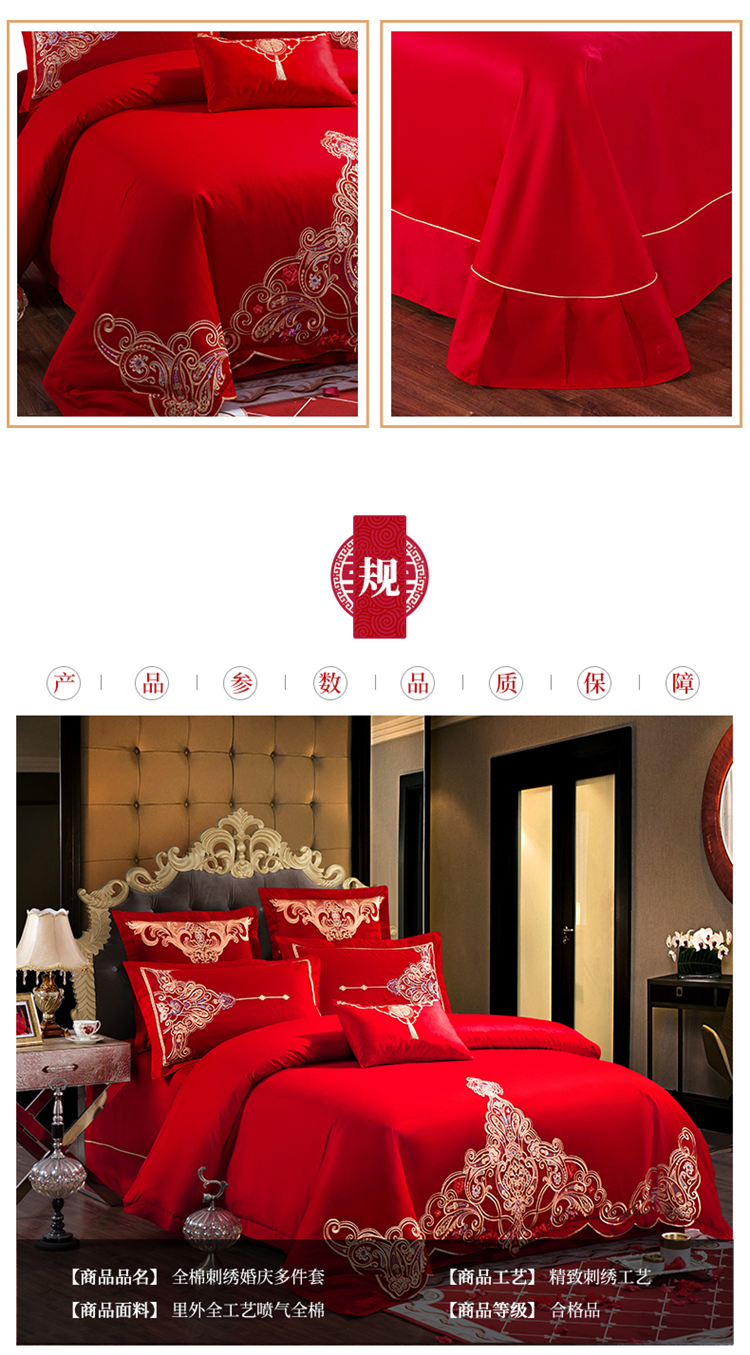 商品名称:千禧婚庆专供 2019新款喷气全棉婚庆四件套多件套 醉意红颜