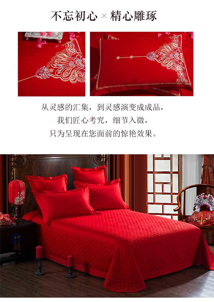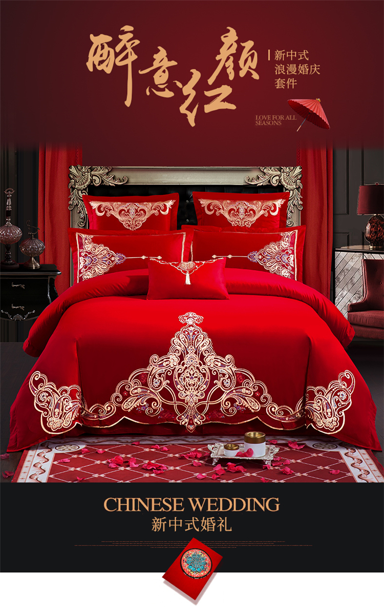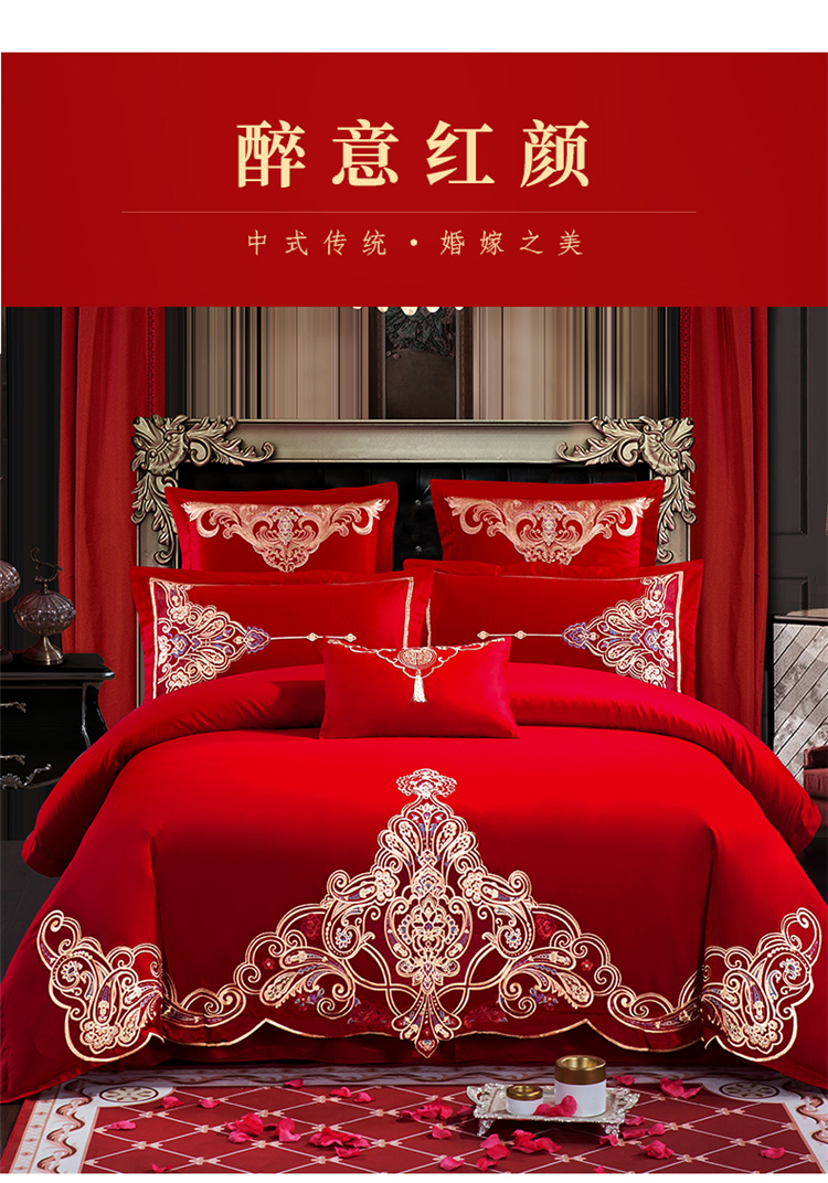 千禧婚庆专供 2019新款喷气全棉婚庆四件套多件套 醉意红颜