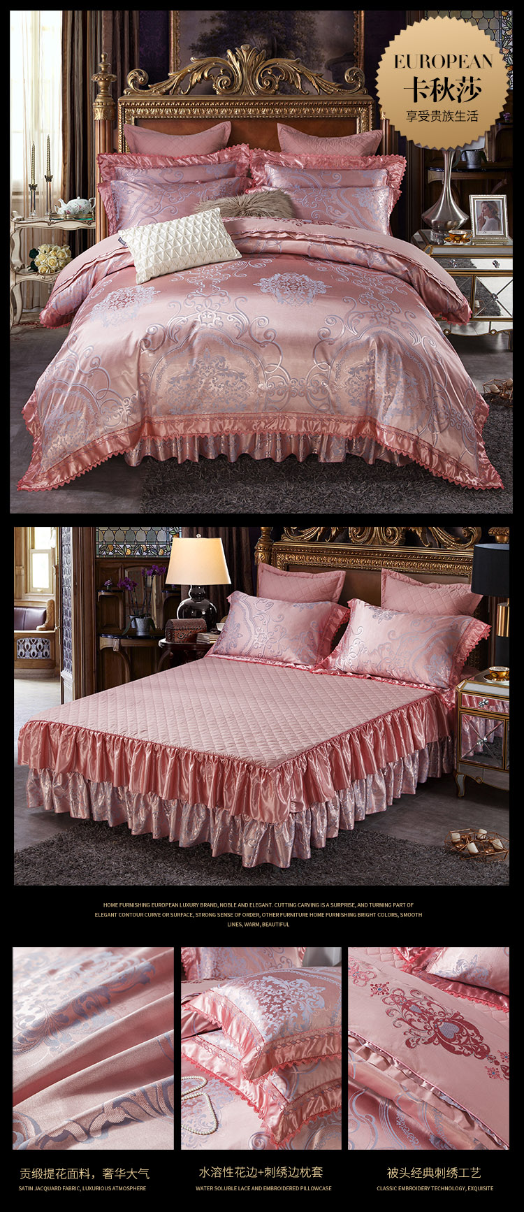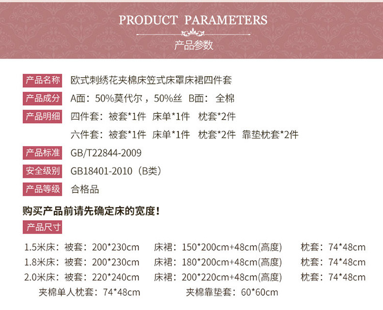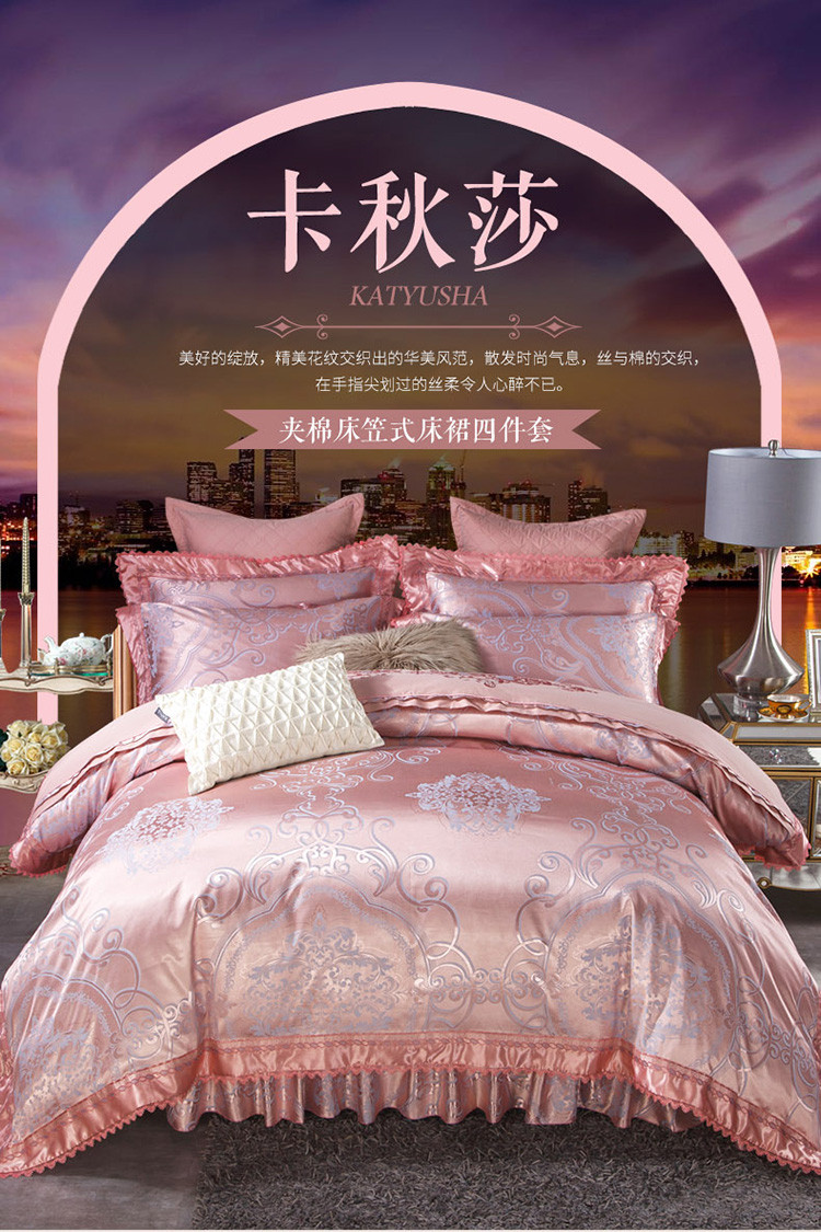 当前位置: 91家纺网 > 商品网购 > 床品套件 > 四件套 > 全棉普通四件套 > 兴美佳家纺 欧式刺绣花夹棉床笠式床罩床裙四件套 卡秋莎
