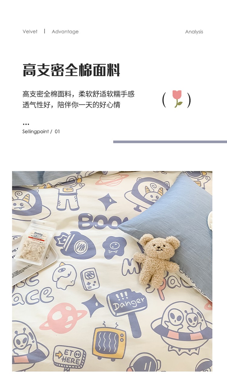 澳萝拉 2023新款全棉印花四件套会员减5元 快乐星球