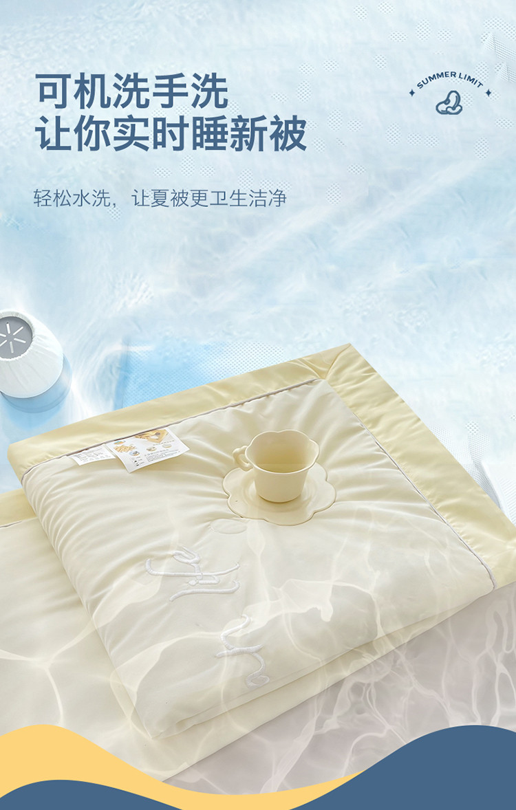 米乐被业2025新款凉感绣花大豆夏被空调被被子被芯米白
