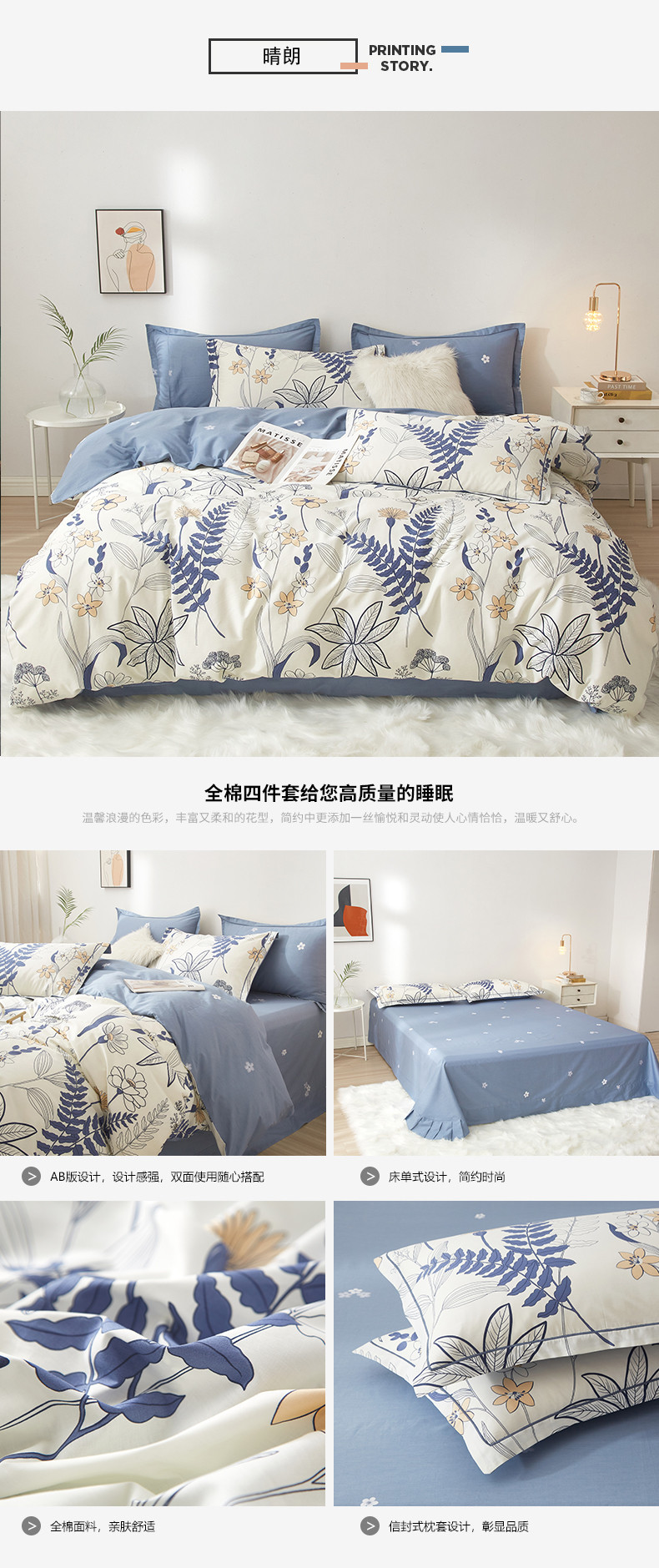 商品名称:沐白家居 2023全棉13376全棉印花四件套 晴朗