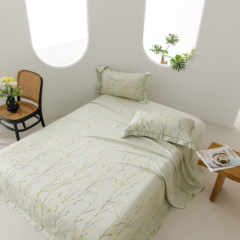 榻尚 2024新款竹纤维印花夏凉席三件套 春意 绿