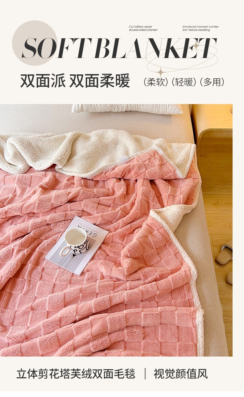 (总)湘之帛 2024直播新款高克重塔芙蓉绒羊羔绒多功能盖毯毛毯,简爱 白,简爱 粉,简爱 灰,简爱 咖,简爱 兰,简爱 绿,棋盘格白,棋盘格粉,棋盘格灰,棋盘格咖,棋盘格兰,棋盘格绿