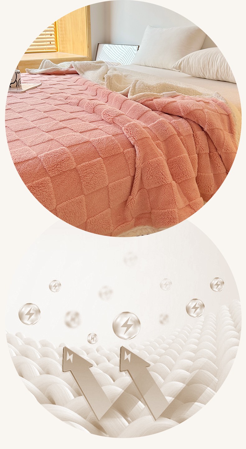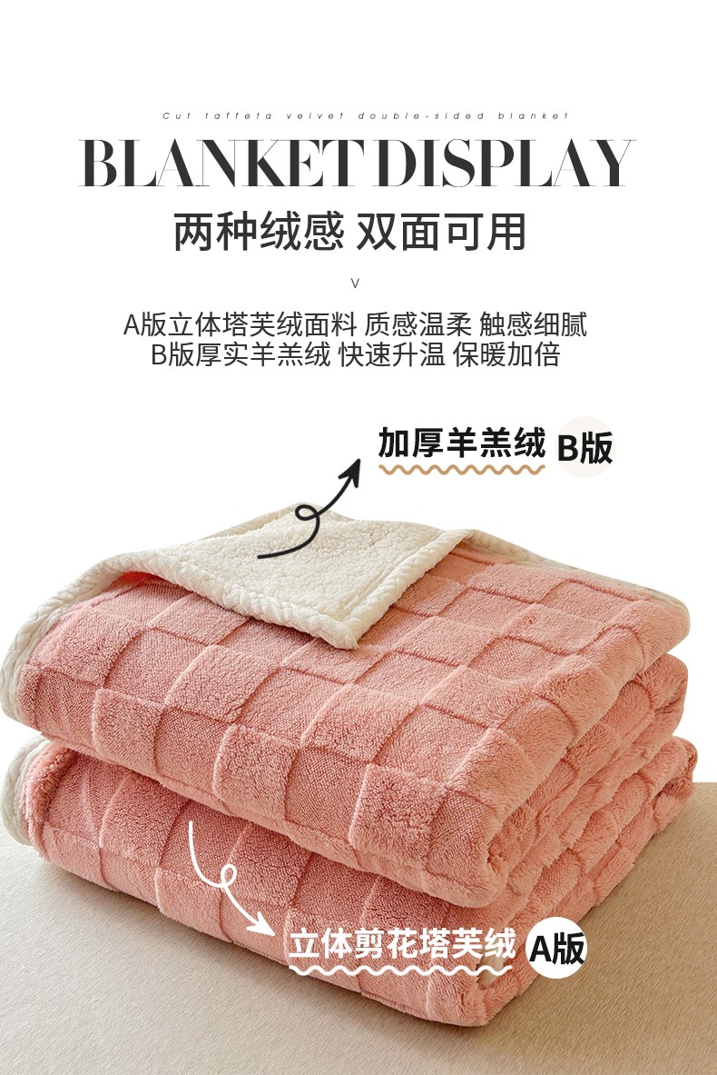 湘之帛 2024直播新款高克重塔芙绒羊羔绒多功能盖毯毛毯 棋盘格粉