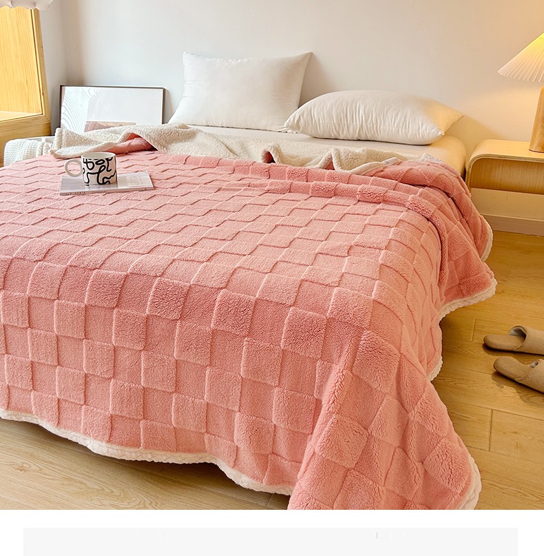 商品名称:湘之帛 2024直播新款高克重塔芙绒羊羔绒多功能盖毯毛毯 棋盘格粉