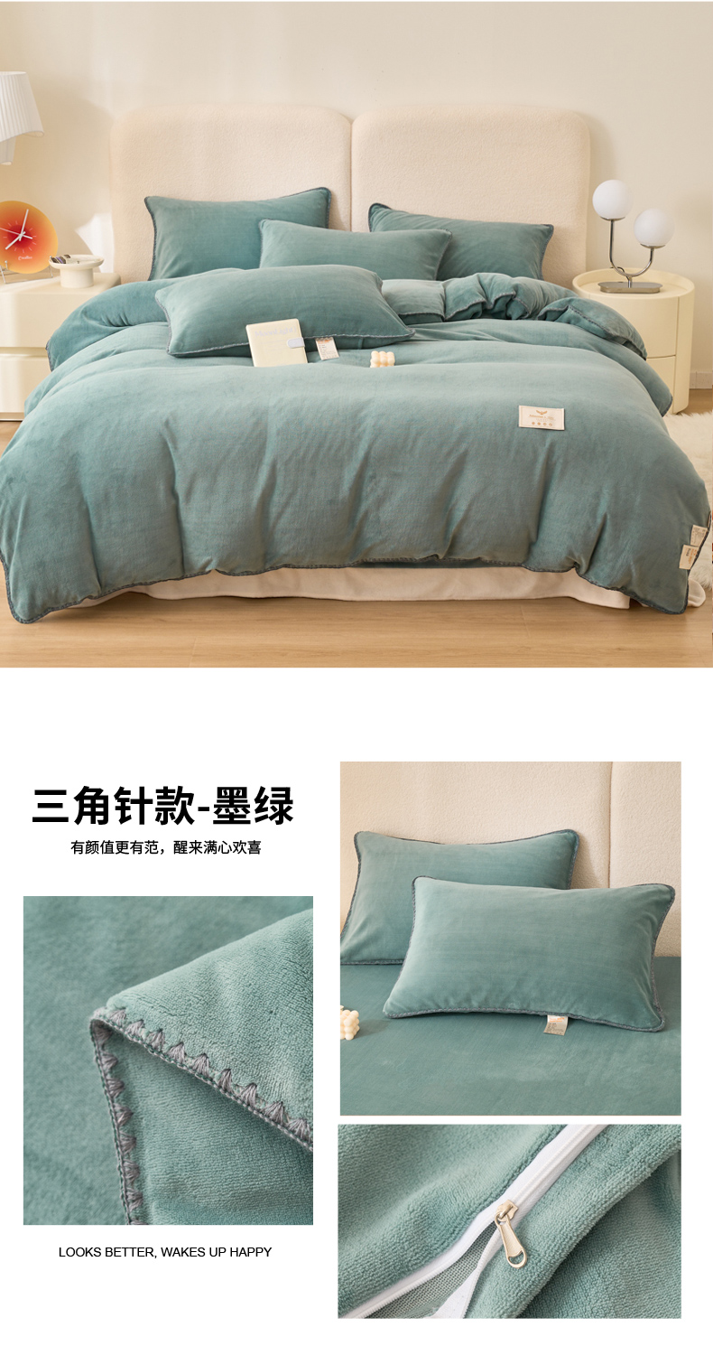 当前位置: 91家纺网 > 商品网购 > 床品套件 > 四件套 > 牛奶绒四件套 > 21度C 2023新款加厚保暖云朵牛奶绒四件套 云朵三角针-墨绿