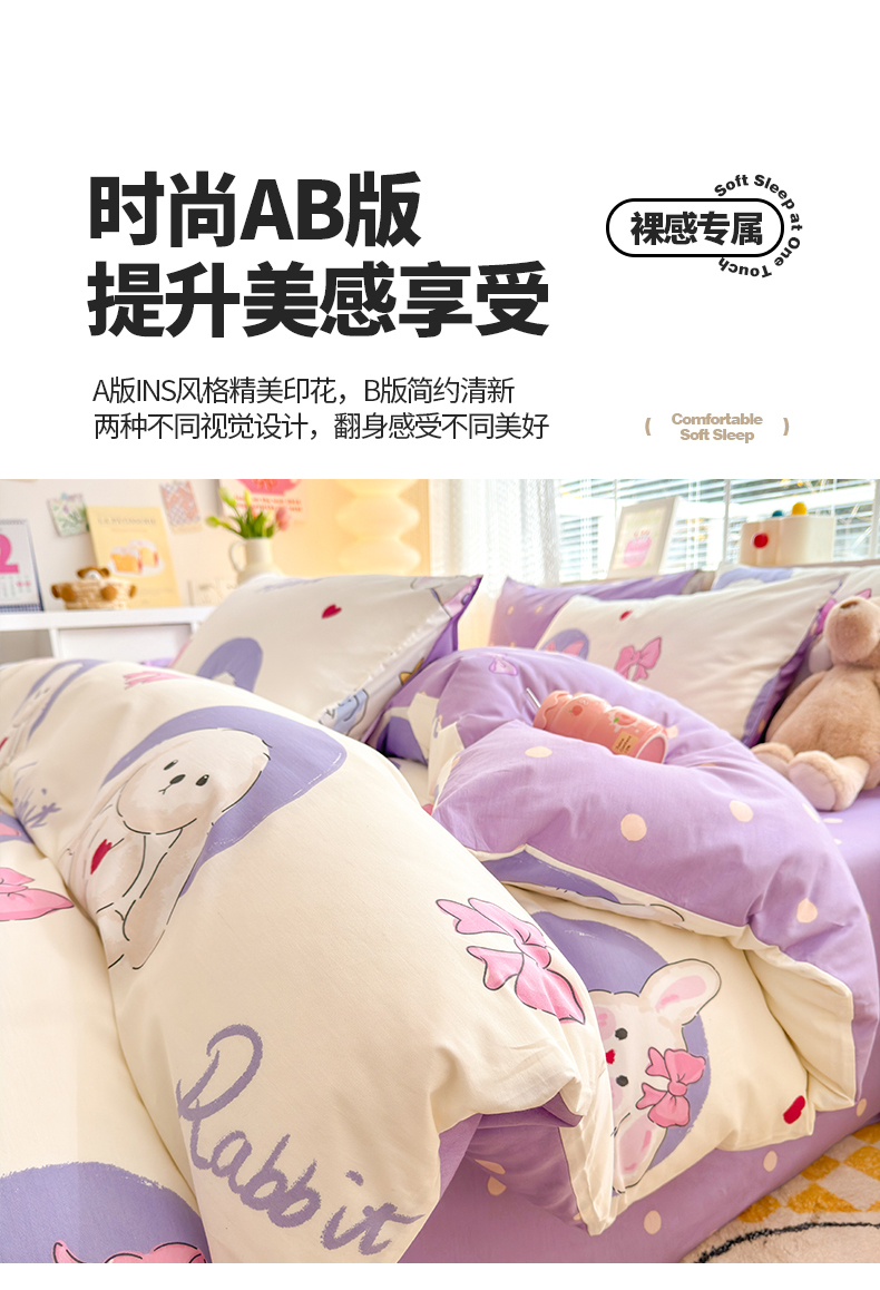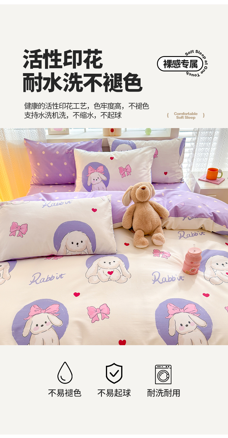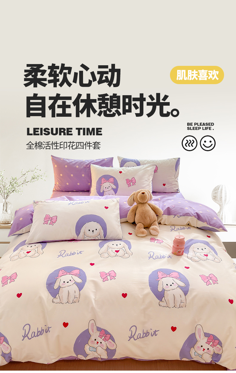 商品名称:清雅福 2024新款全棉13372小清新四件套-第三季 兔小萌