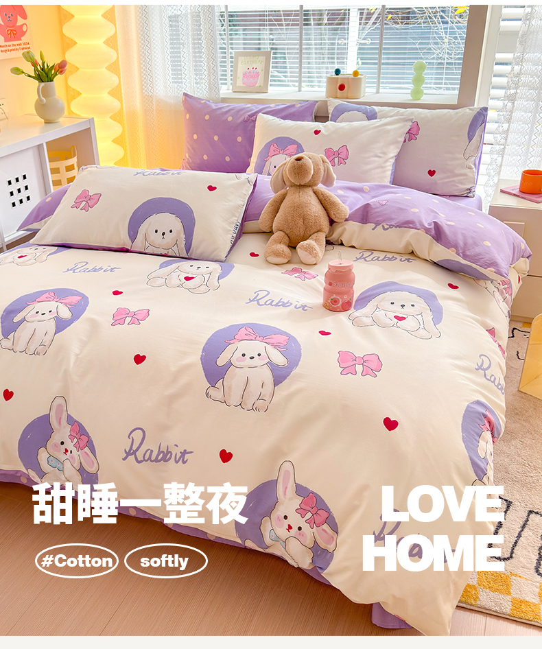 清雅福 2024新款全棉13372小清新四件套-第三季 兔小萌