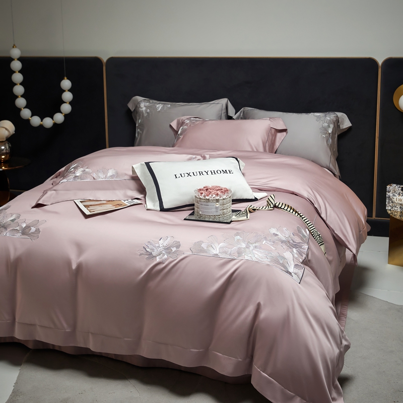 (总)榻尚家居 2023新款纯棉贡缎提花四件套(会员-10),缤兰,烟粉