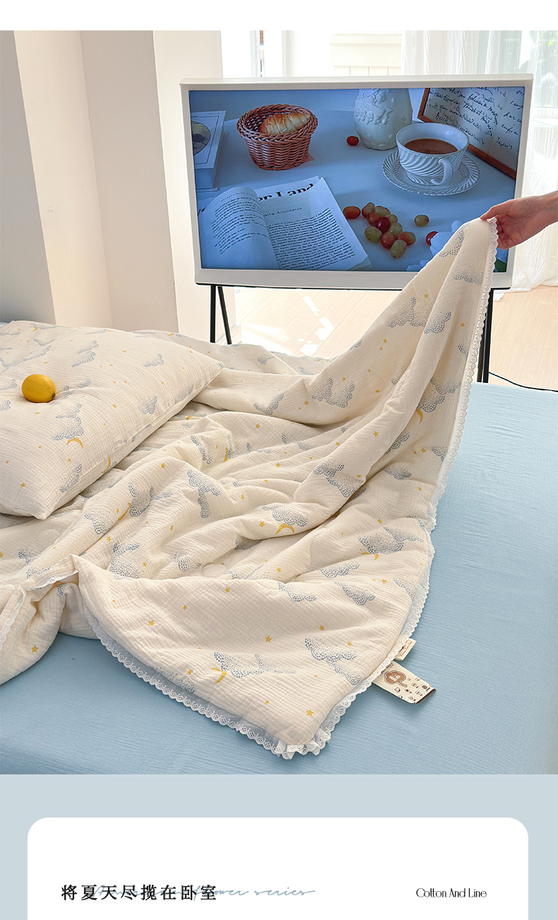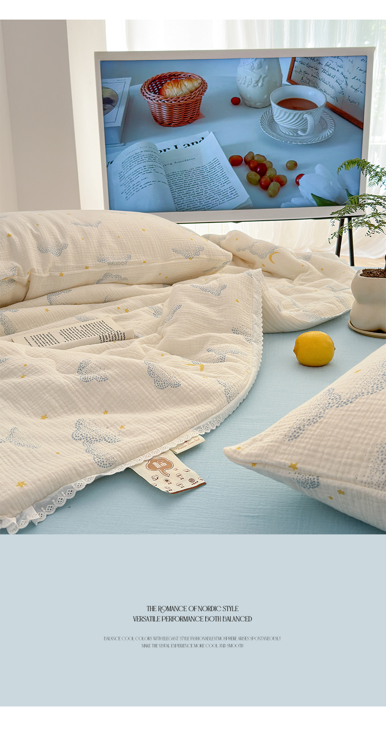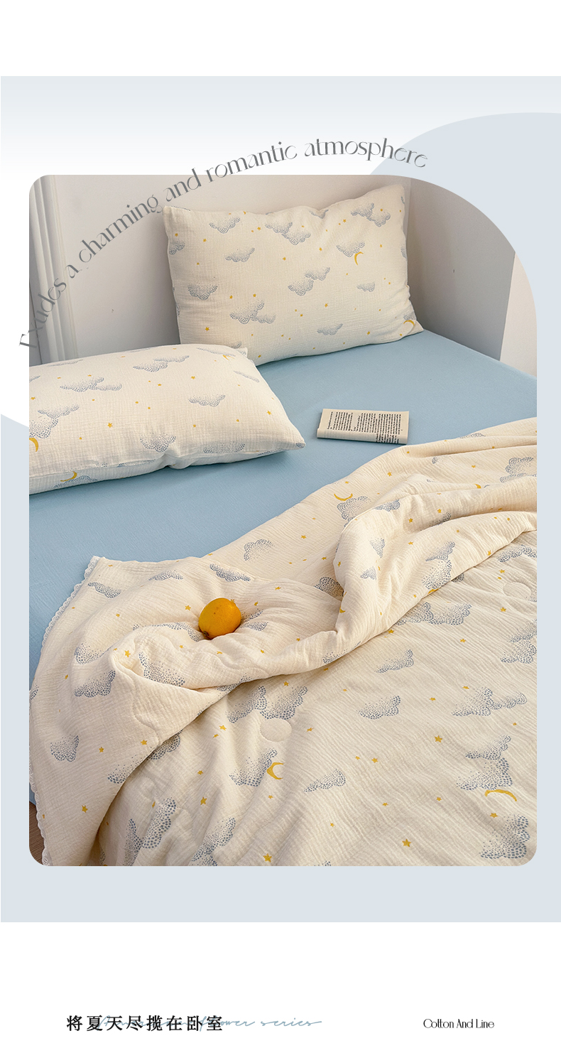 当前位置: 91家纺网 > 商品网购 > 床品套件 > 四件套 > 夏被四件套 > 山舍家居 2024新款全棉皱皱纱夏被四件套 云间月