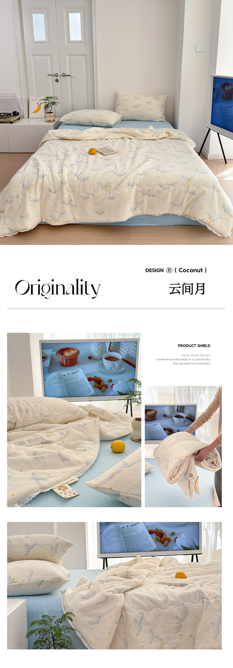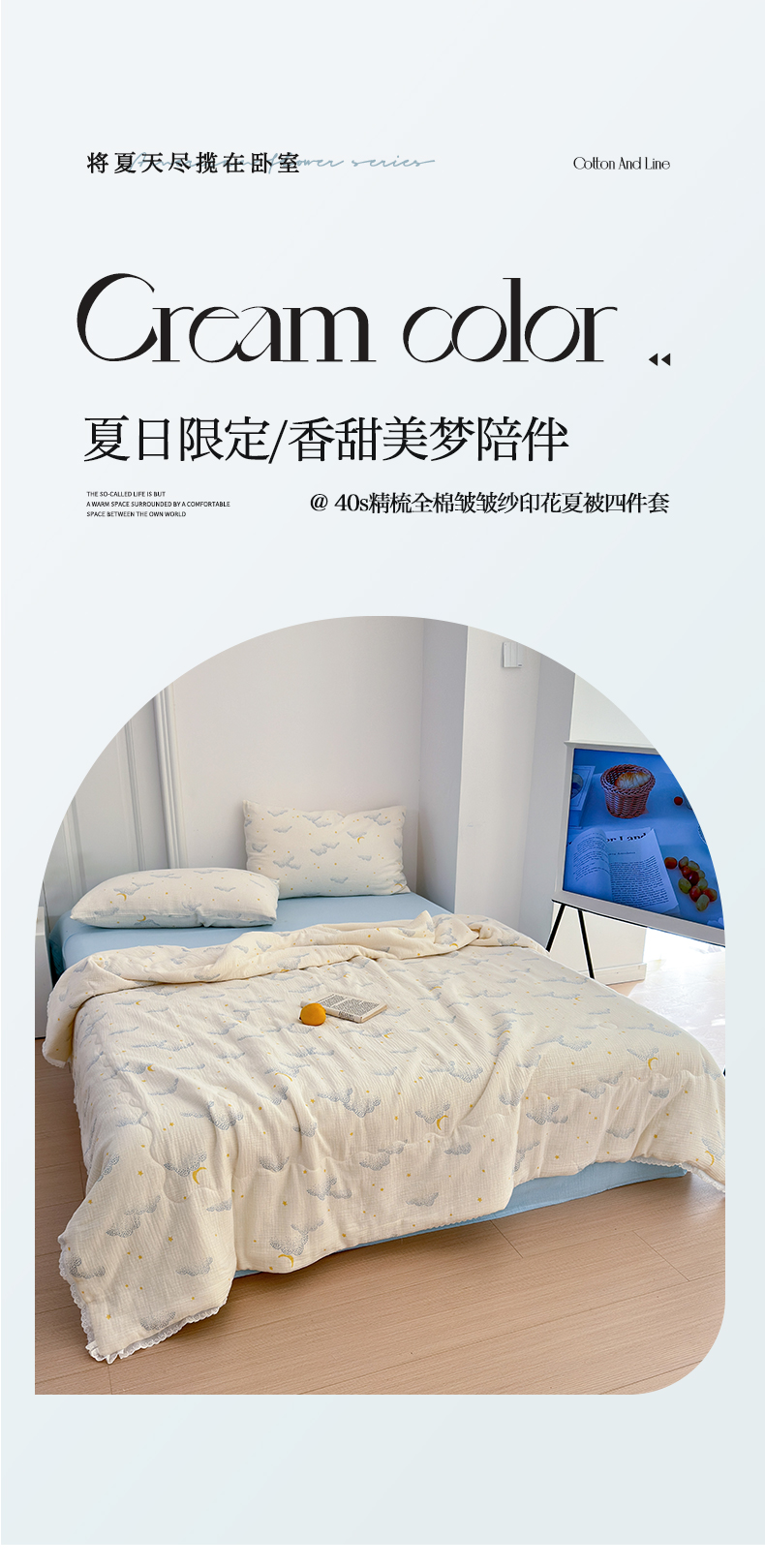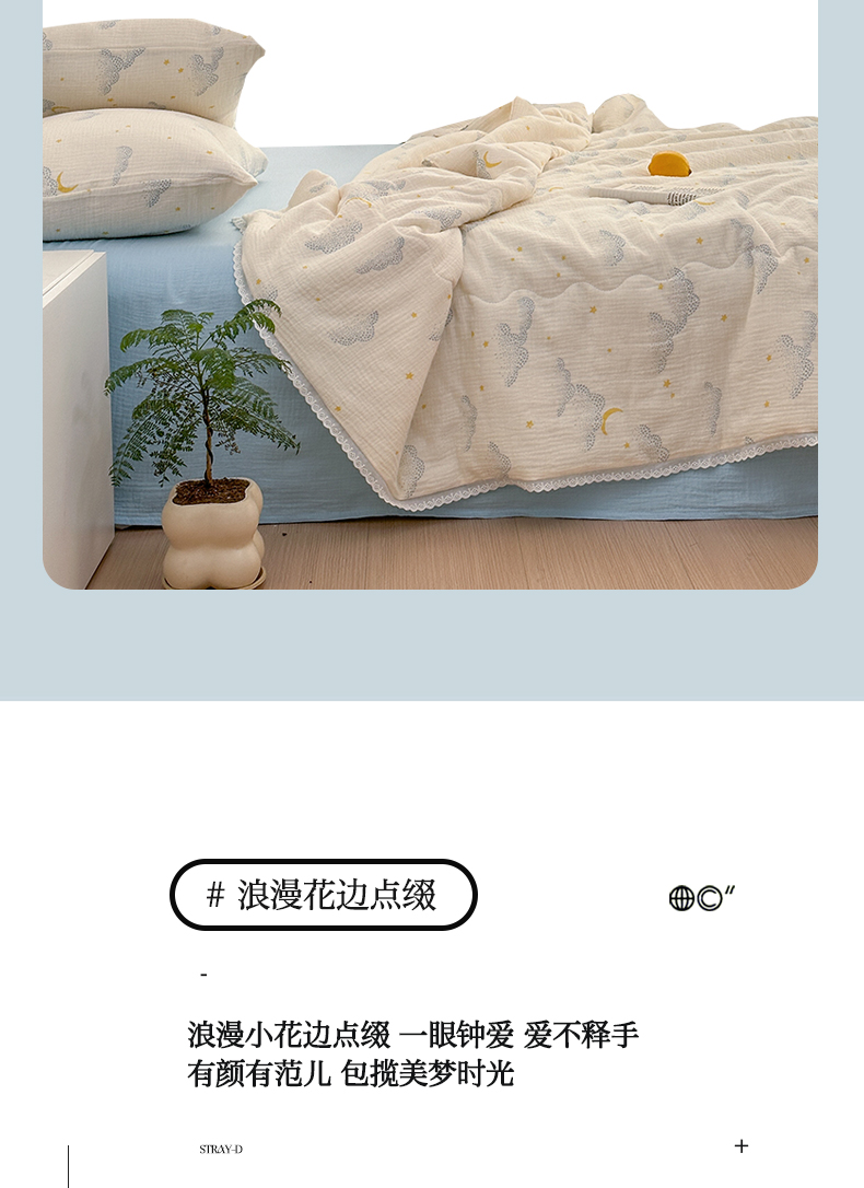 当前位置: 91家纺网 > 商品网购 > 床品套件 > 四件套 > 夏被四件套 > 山舍家居 2024新款全棉皱皱纱夏被四件套 云间月