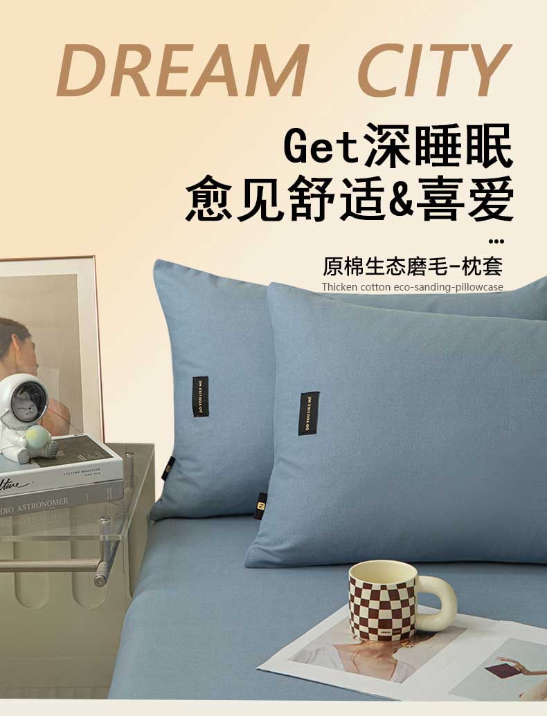 涵宸家纺 2024新款原棉纯色织标磨毛单品及套件--枕套 单枕套-丈兰