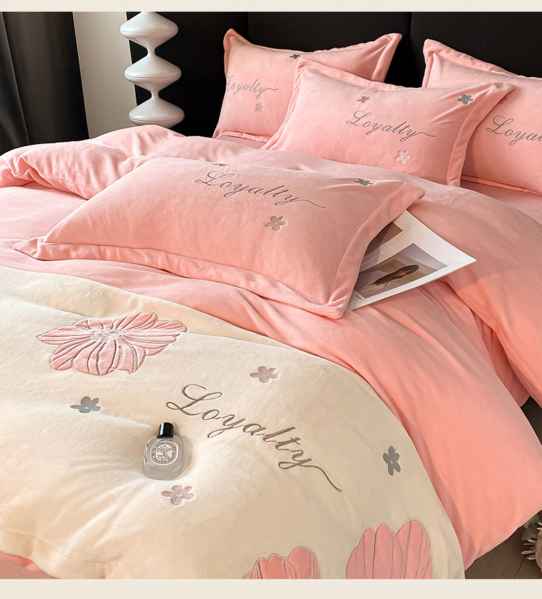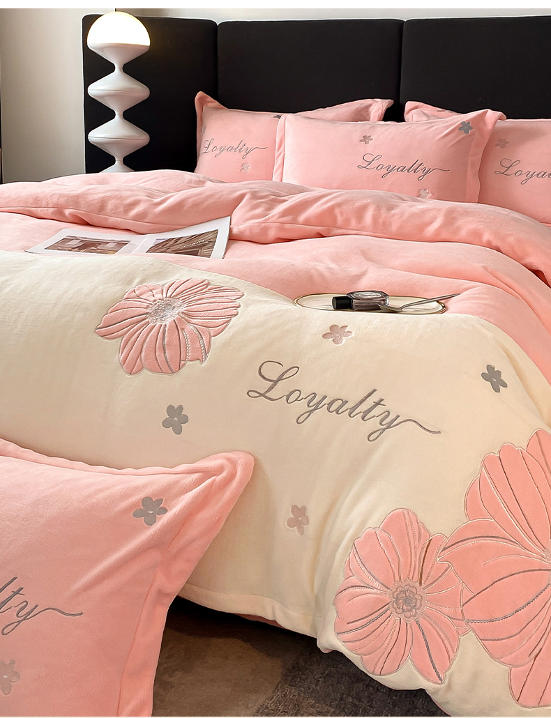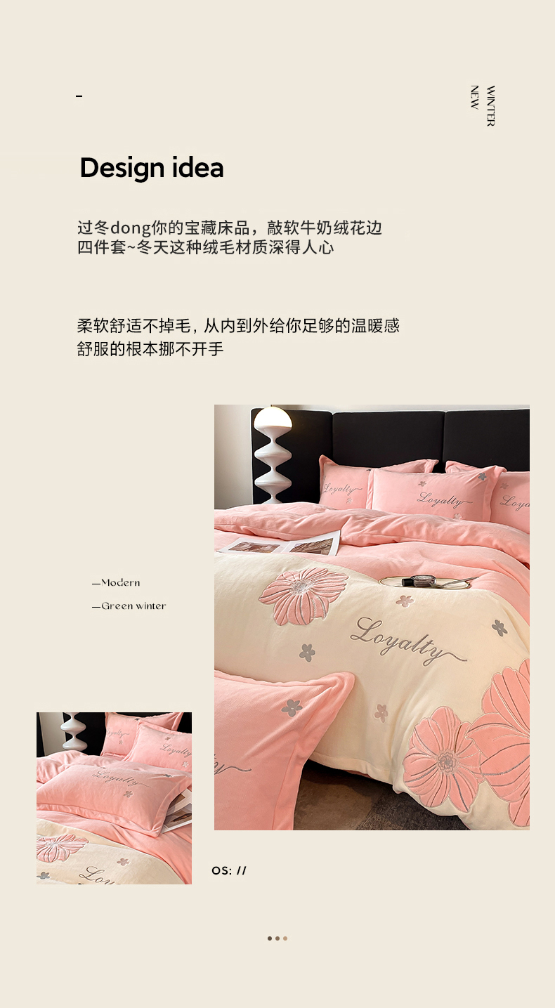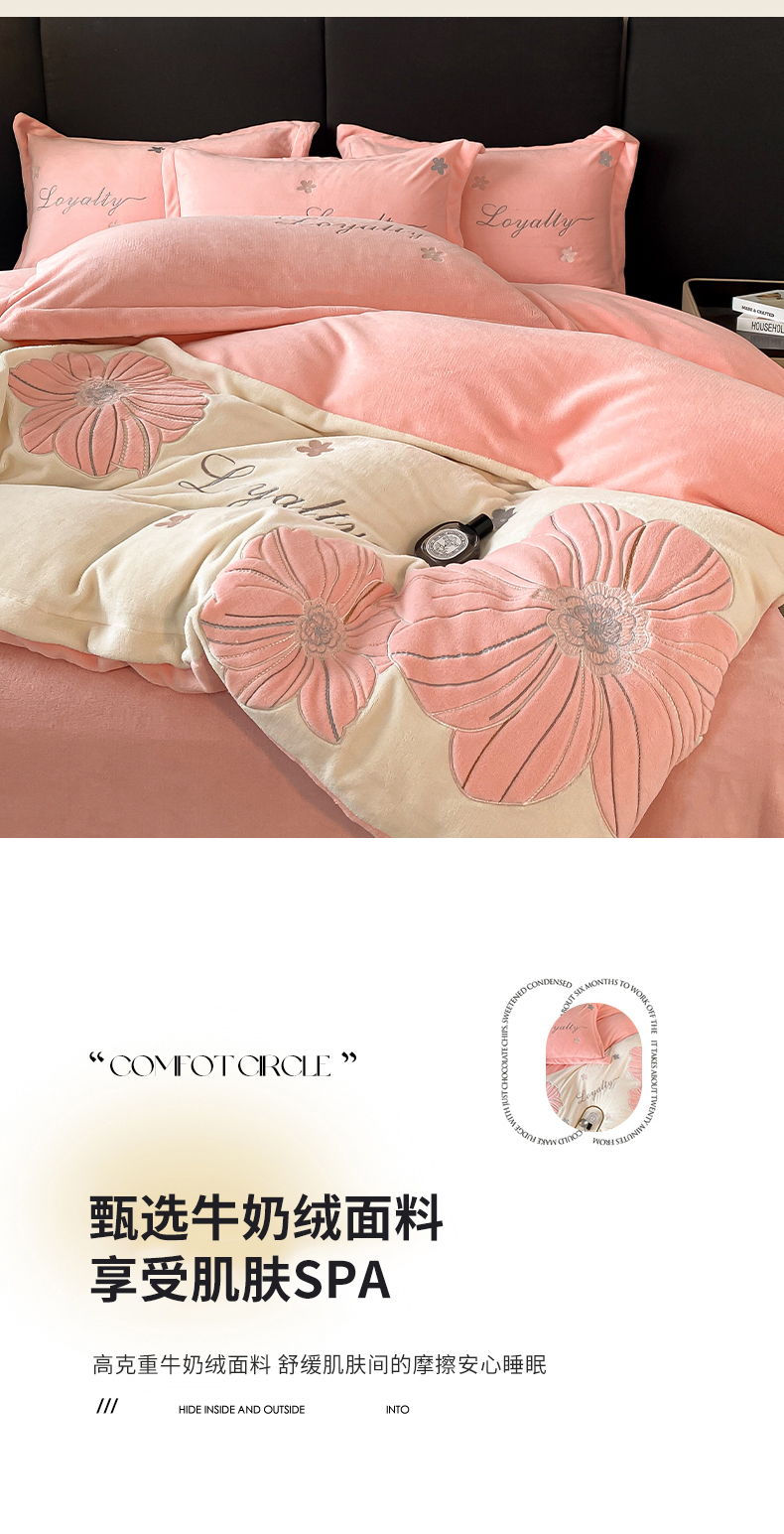 当前位置: 91家纺网 > 商品网购 > 床品套件 > 四件套 > 牛奶绒四件套 > 你好美丽 2025新款200克A类牛奶绒贴布绣大阪四件套雅漾-芬芳 芬芳粉