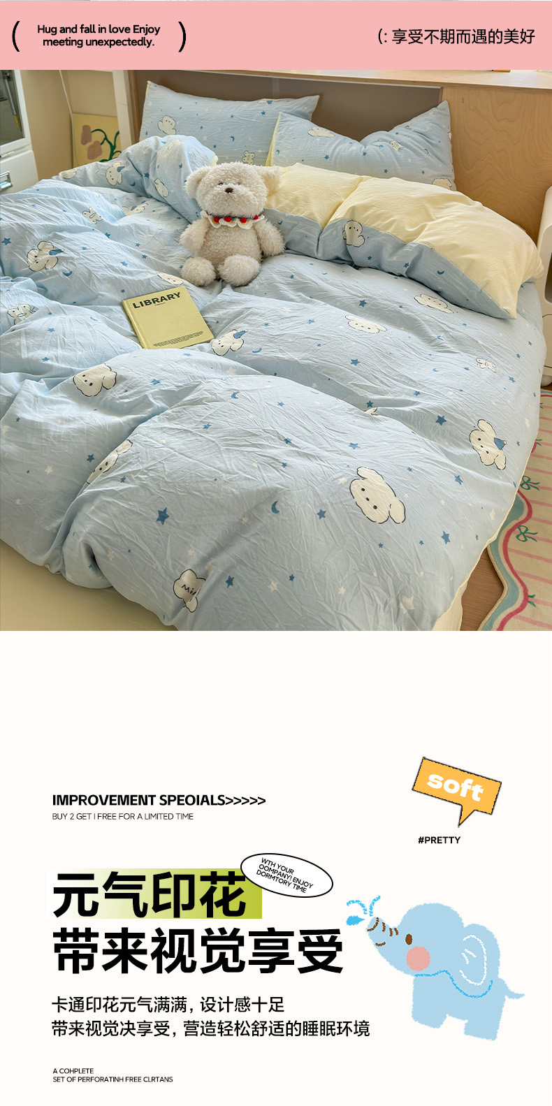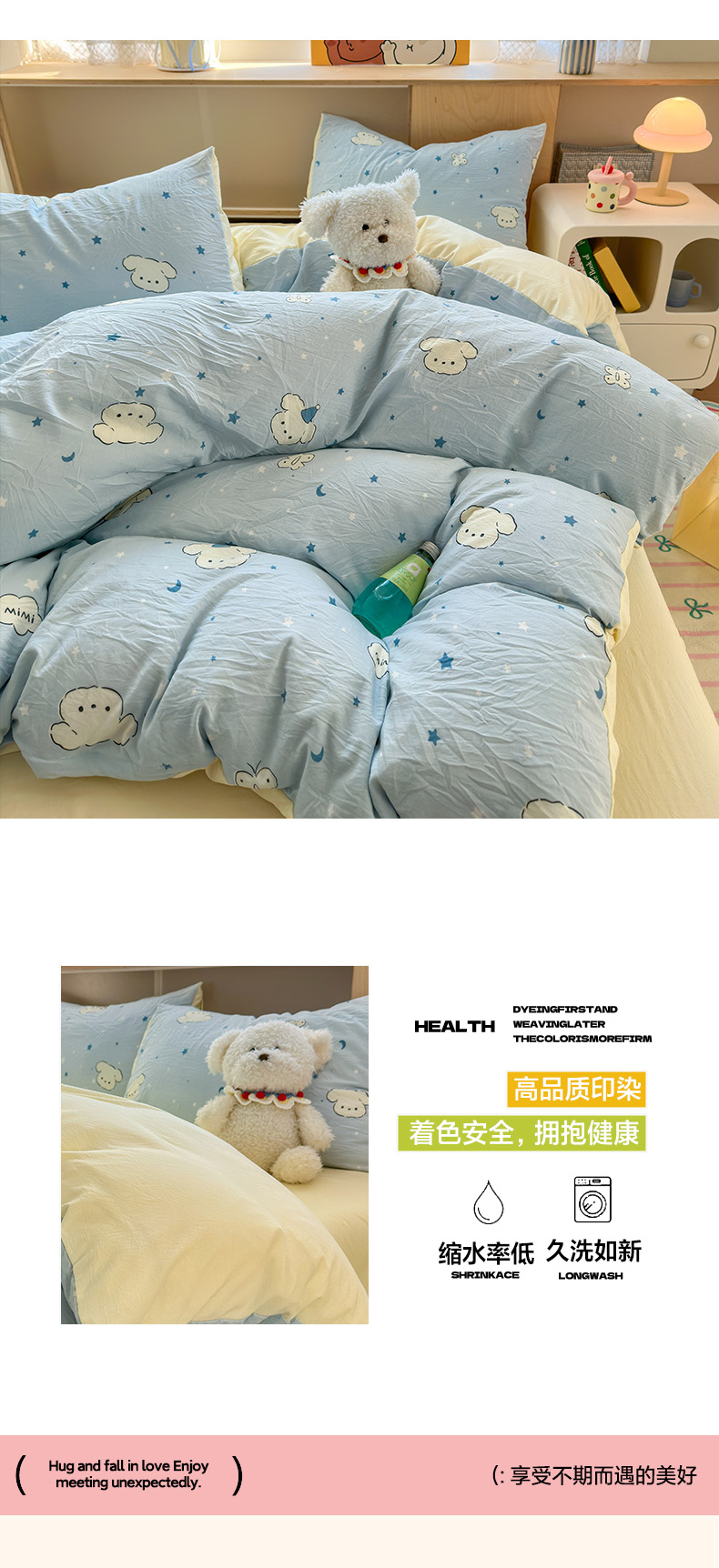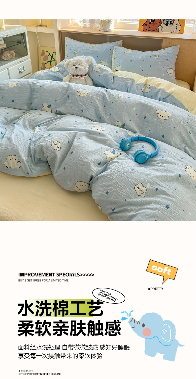 当前位置: 91家纺网 > 商品网购 > 床品套件 > 四件套 > 水洗棉四件套 > 冕悠家纺 2025新款A类高克重糯叽叽超柔糯水洗棉印花四件套 星空狗