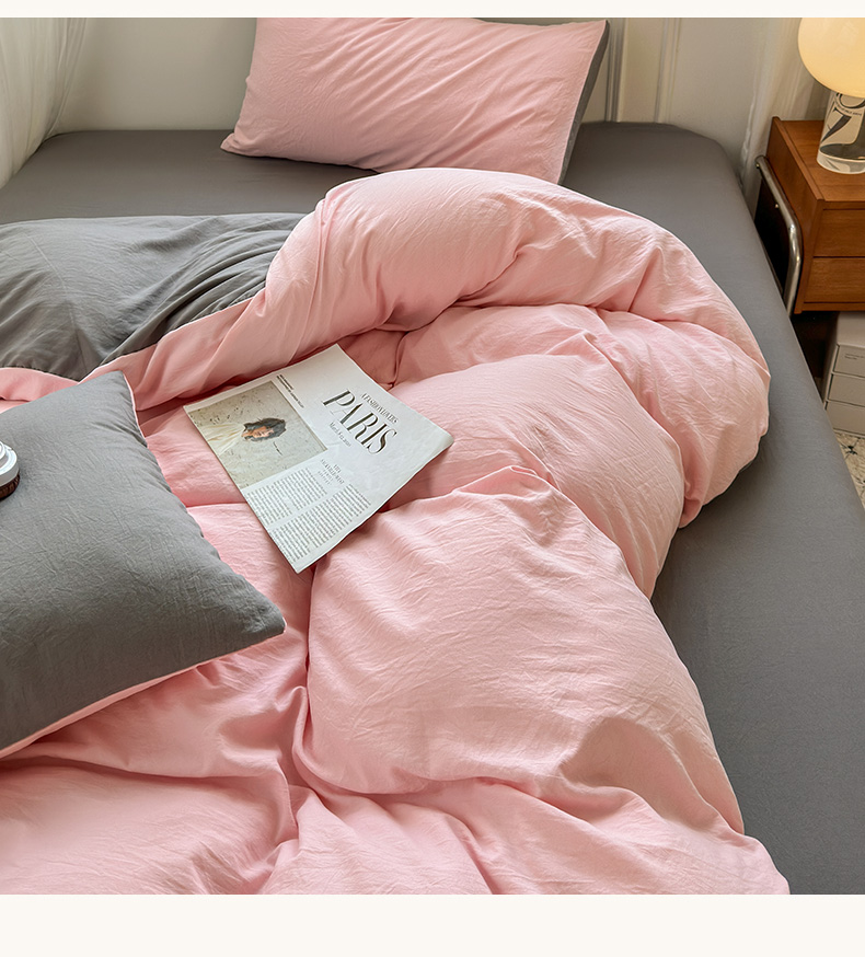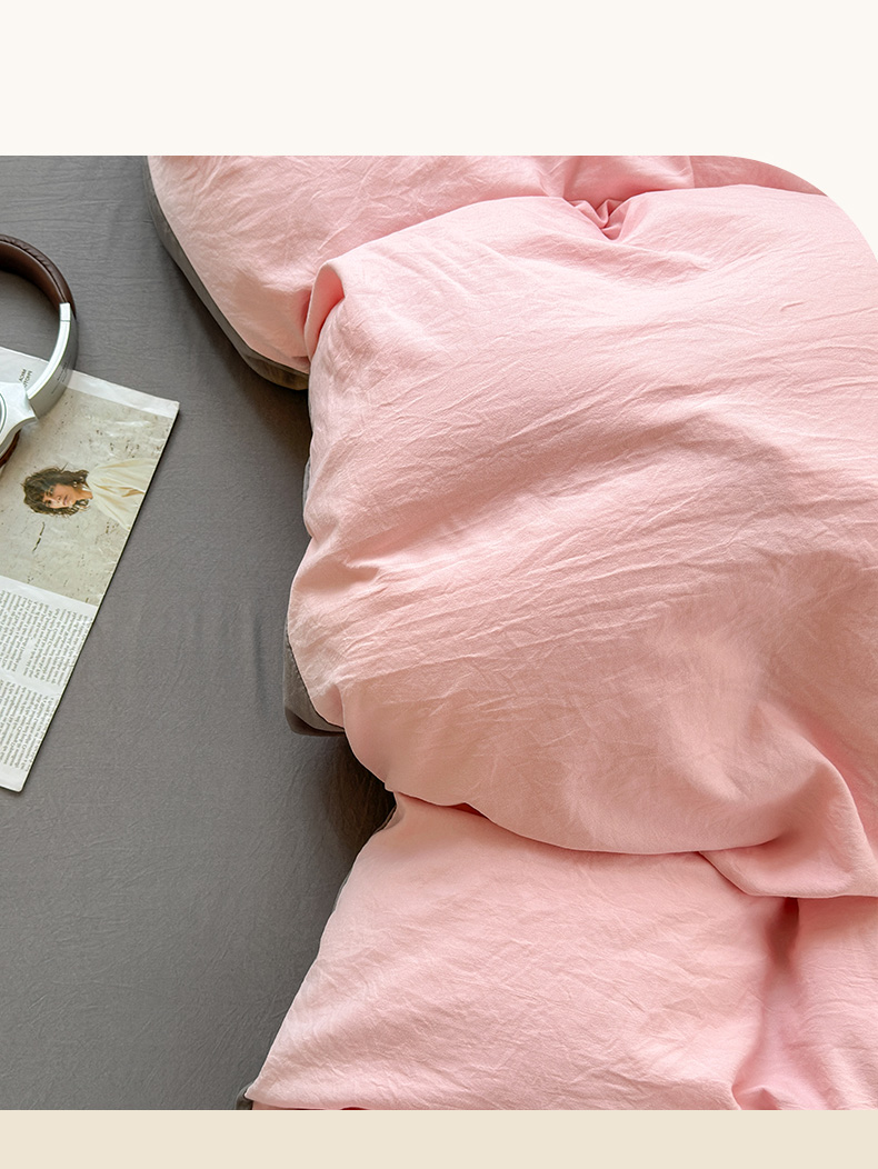 冕悠家纺 2025新款A类105克超柔褶皱水洗棉拼色四件套-单被套 樱花粉+岩灰