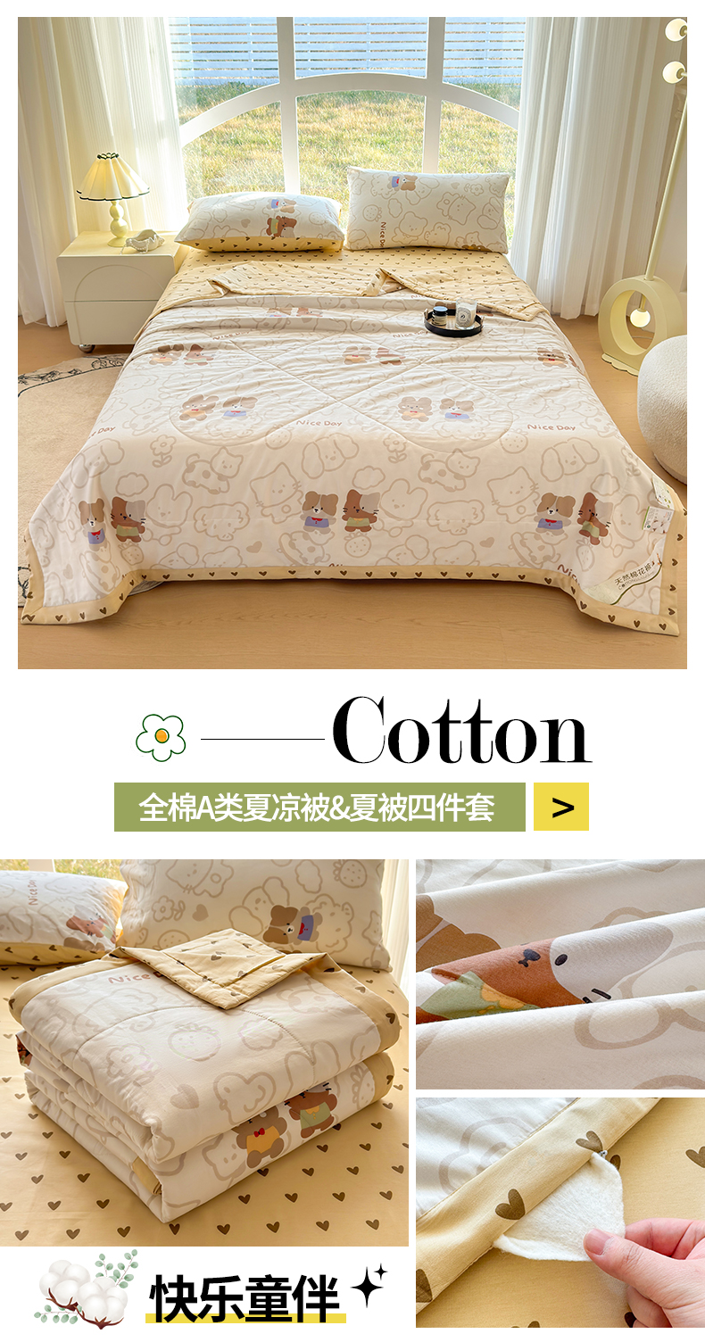 商品名称:蓝雀翎 2025新款全棉印花新疆棉花夏被 快乐童伴