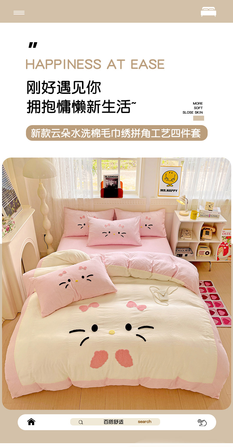 商品名称:(总)富米莱(原臻工厂) 2025新款云朵棉水洗棉毛巾绣拼角工艺四件套