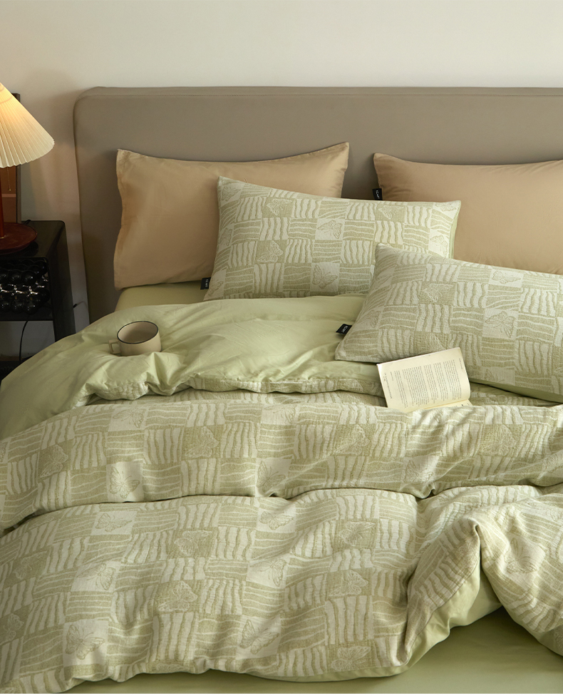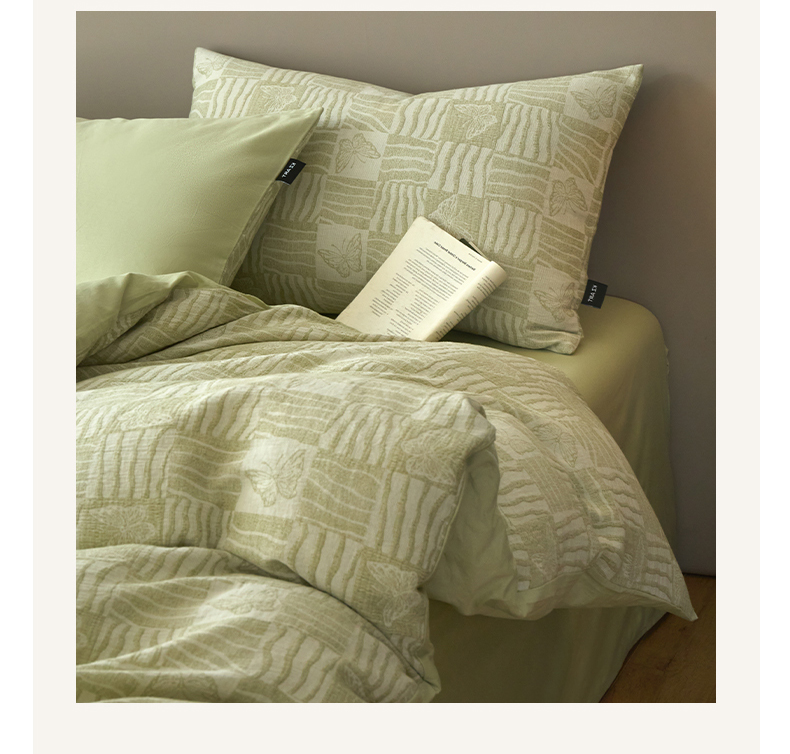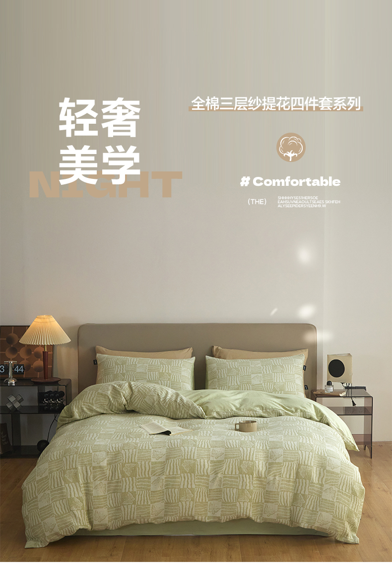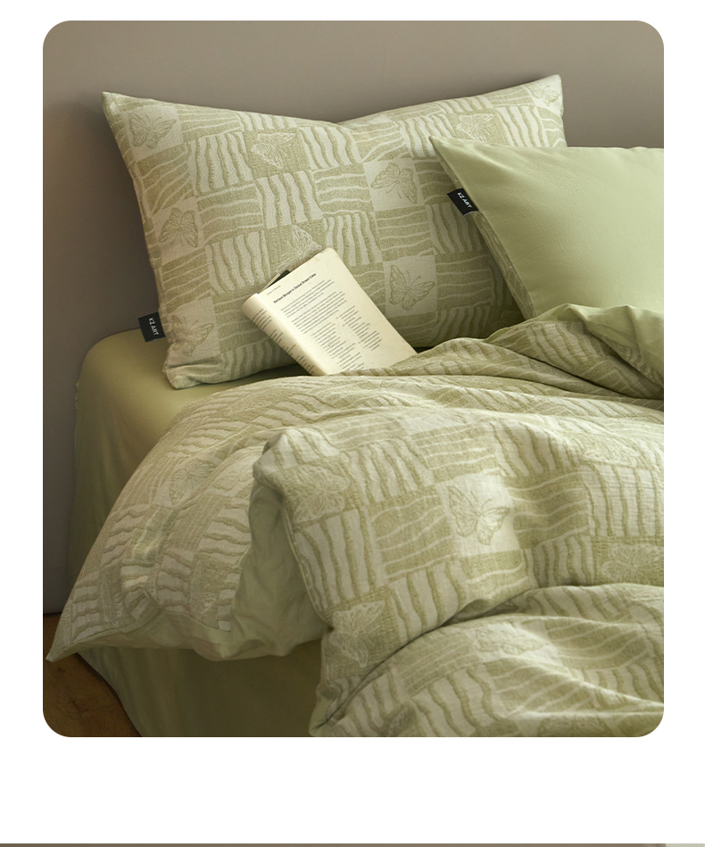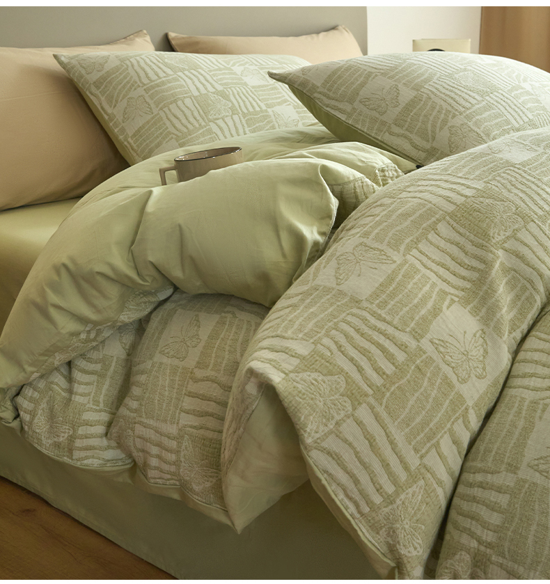 商品名称:乐美家纺 2025秋冬新款三层纱大提花系列四件套 梦境之翼-绿