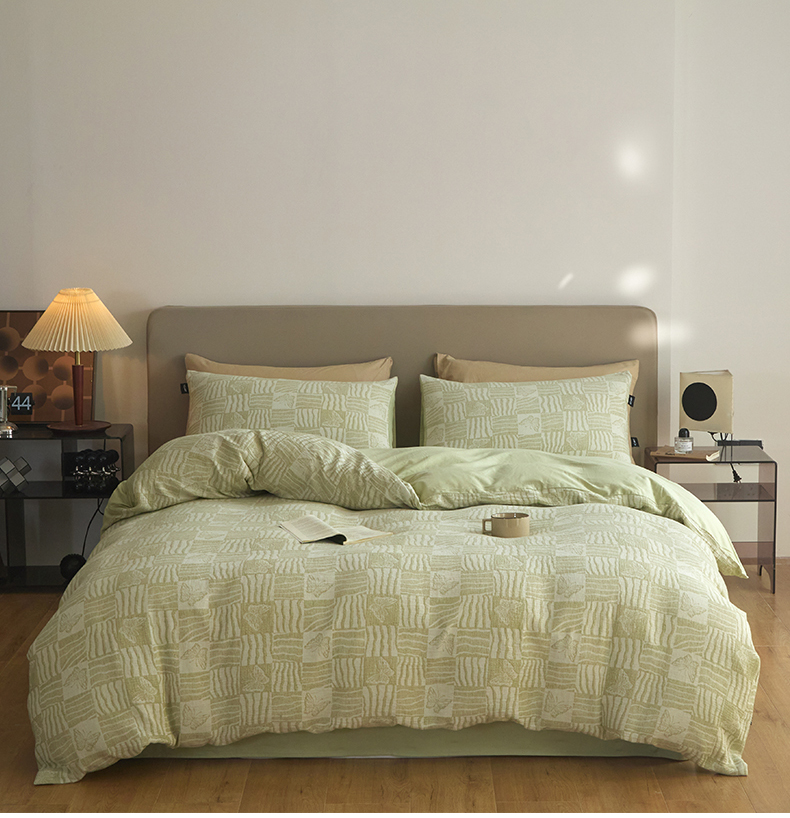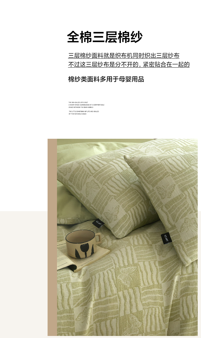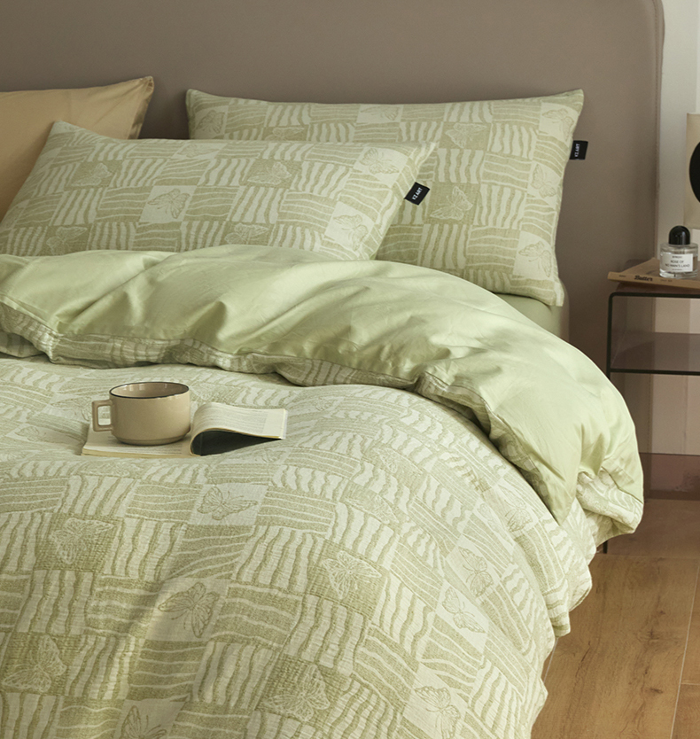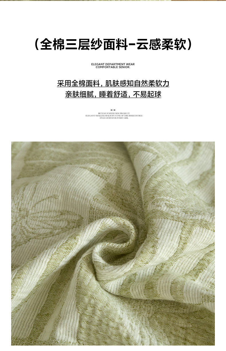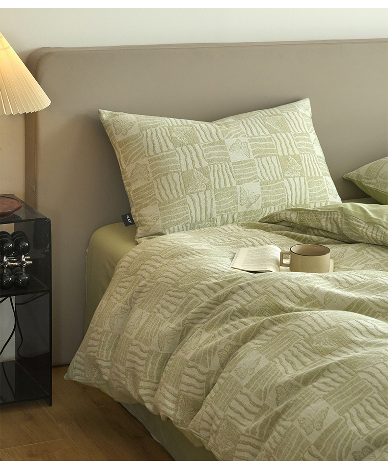 商品名称:乐美家纺 2025秋冬新款三层纱大提花系列四件套 梦境之翼-绿