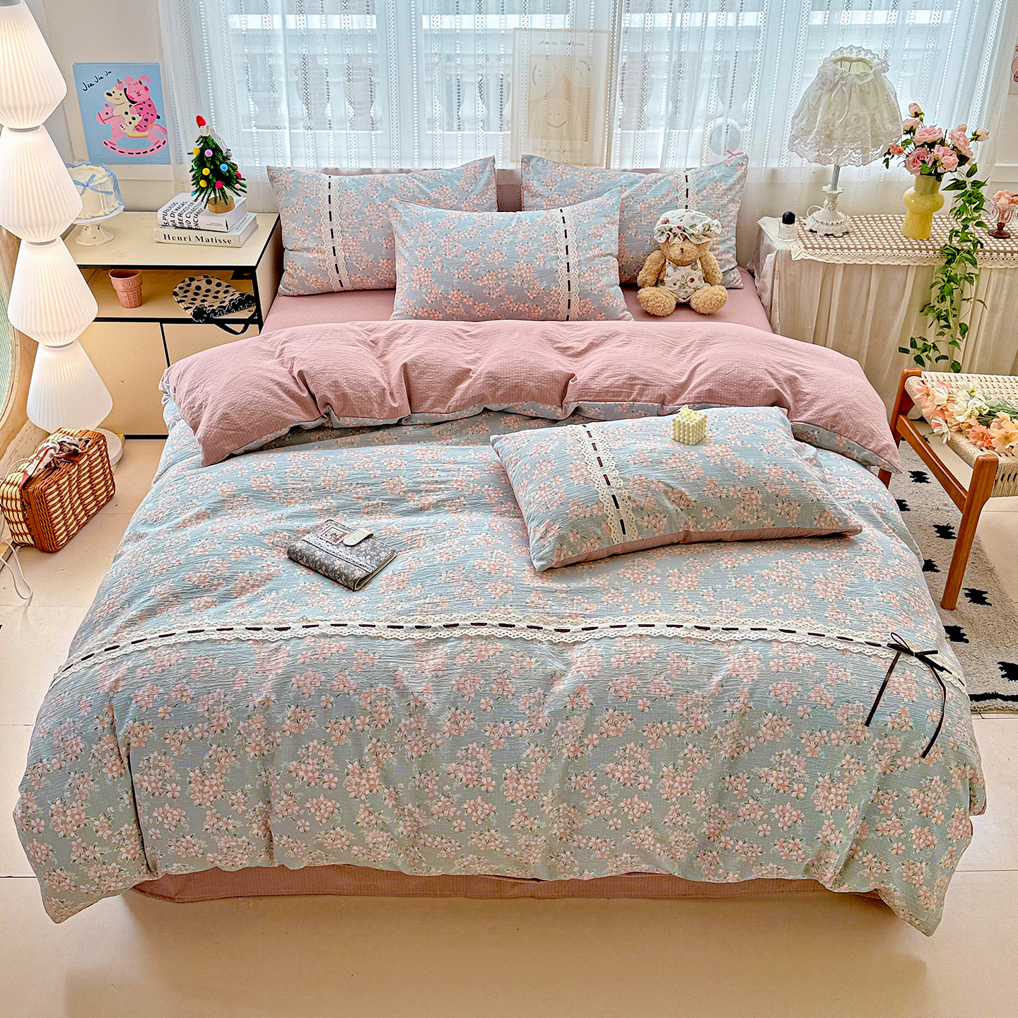 当前位置: 91家纺网 > 商品网购 > 床品套件 > 四件套 > 全棉普通四件套 > 仟网汇 2025新款古法水洗棉全棉花边蝴蝶结四件套 组合图仅供展示不可下单