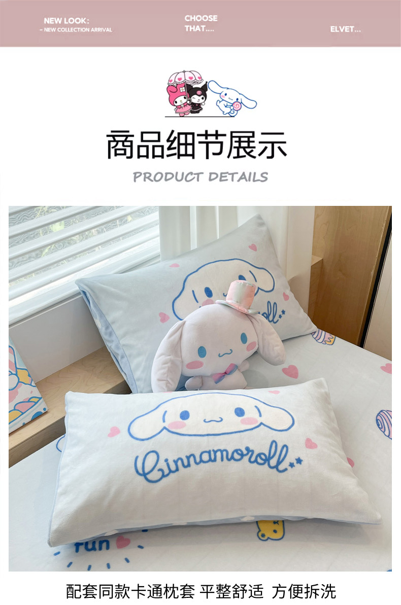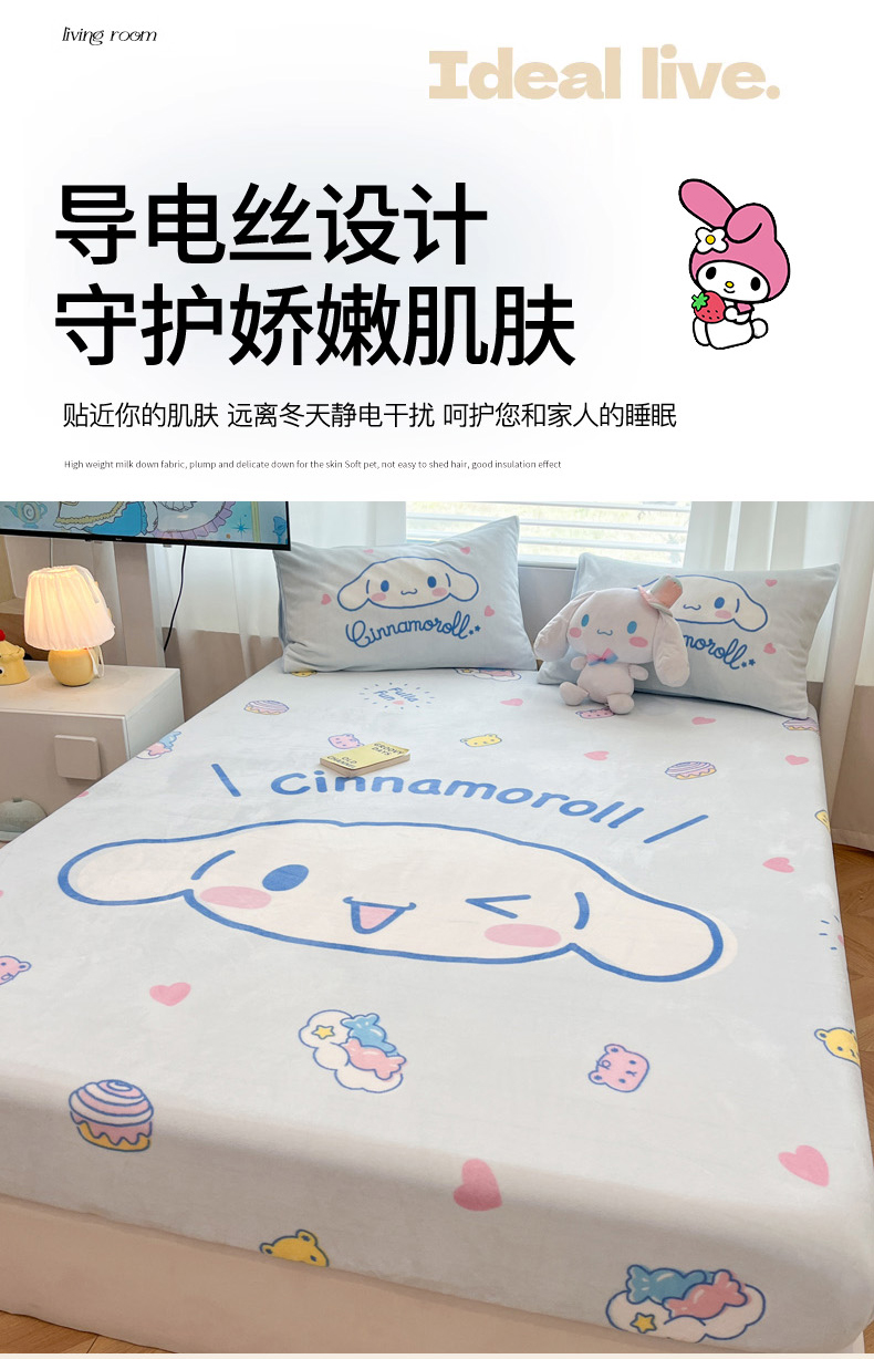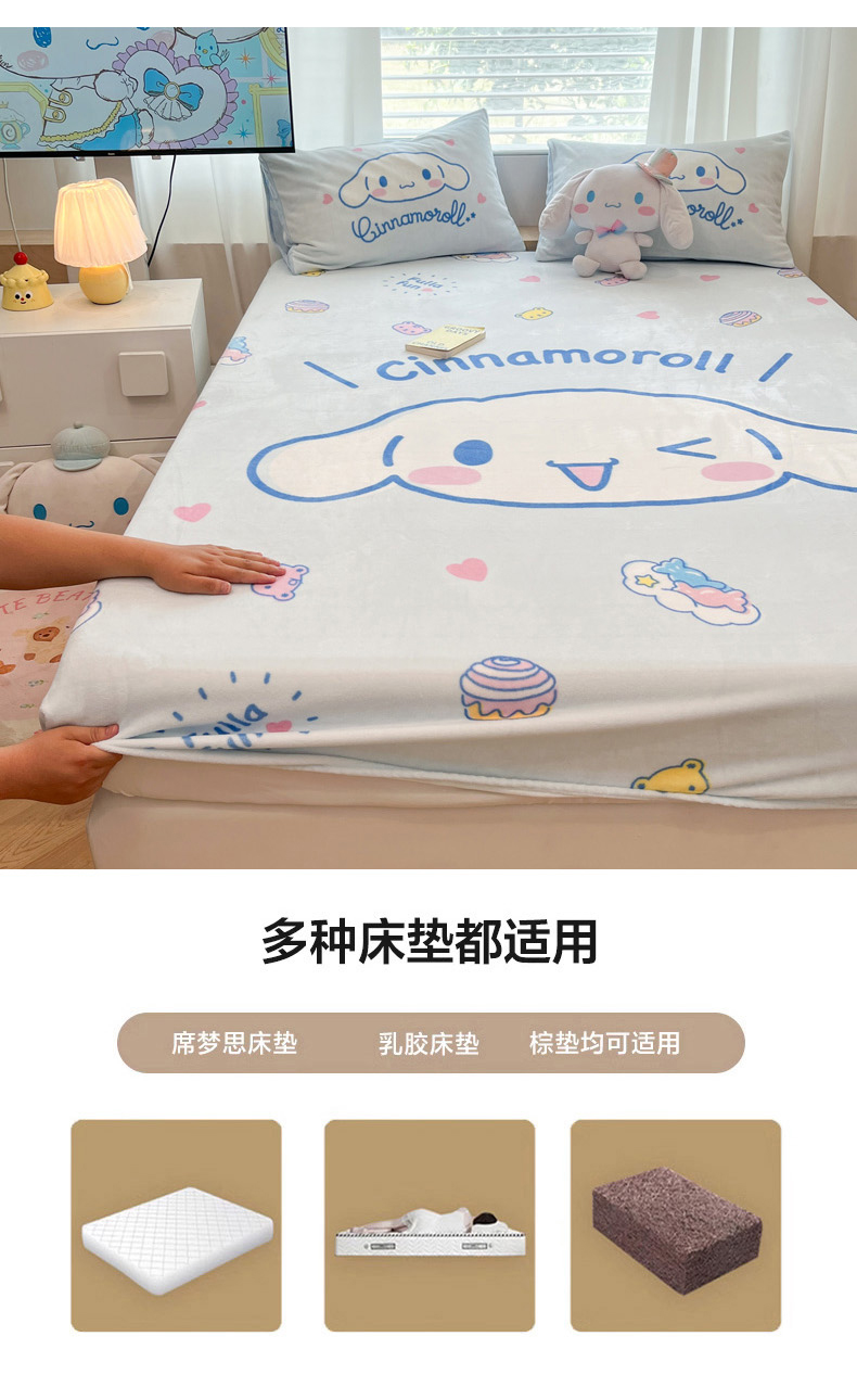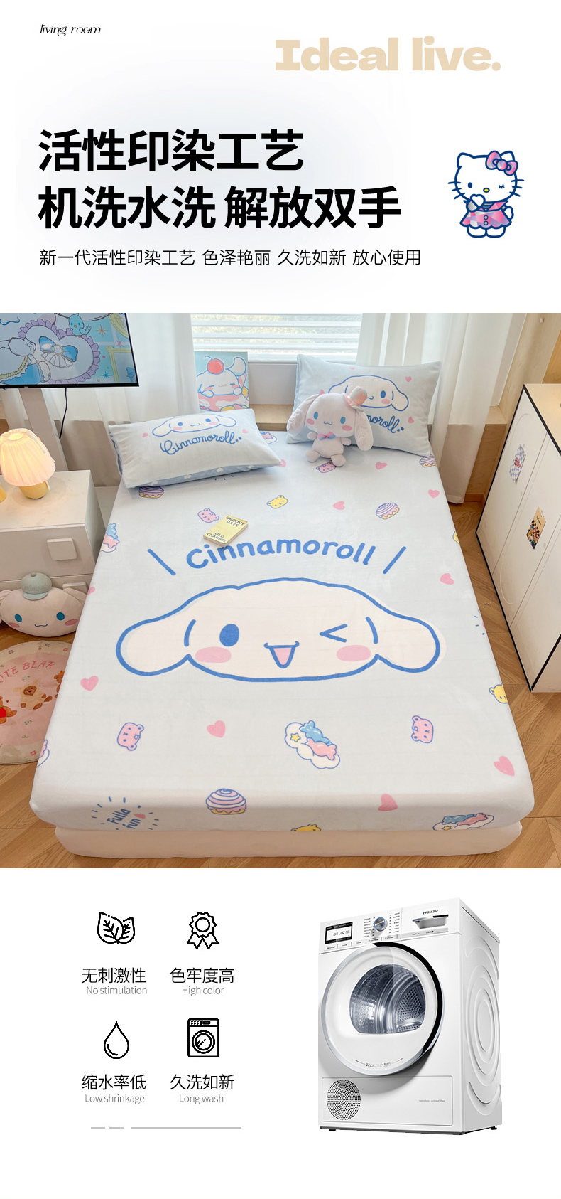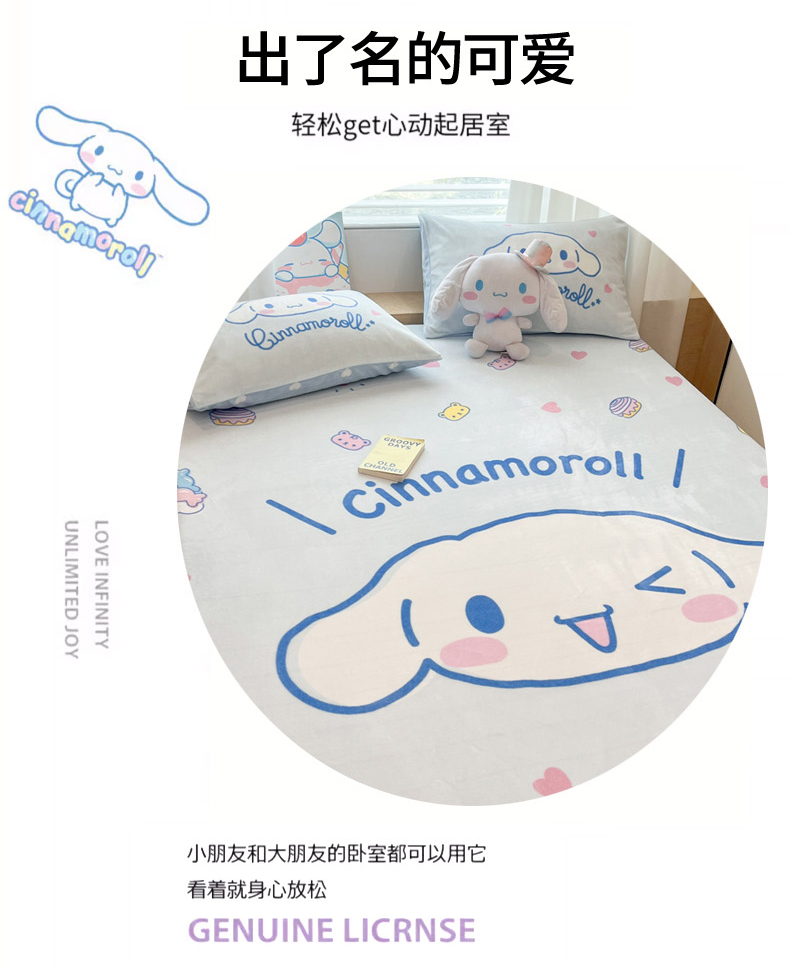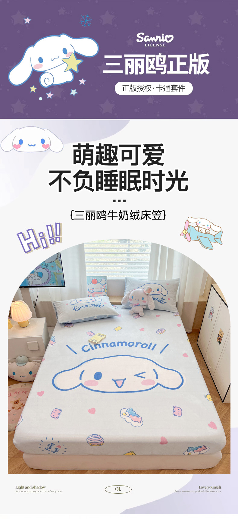 商品名称:暮思家居 2025新款正版授权三丽鸥大版牛奶绒数码印花单品床笠单件床笠(带标价格) 绒A版-开心玉桂狗