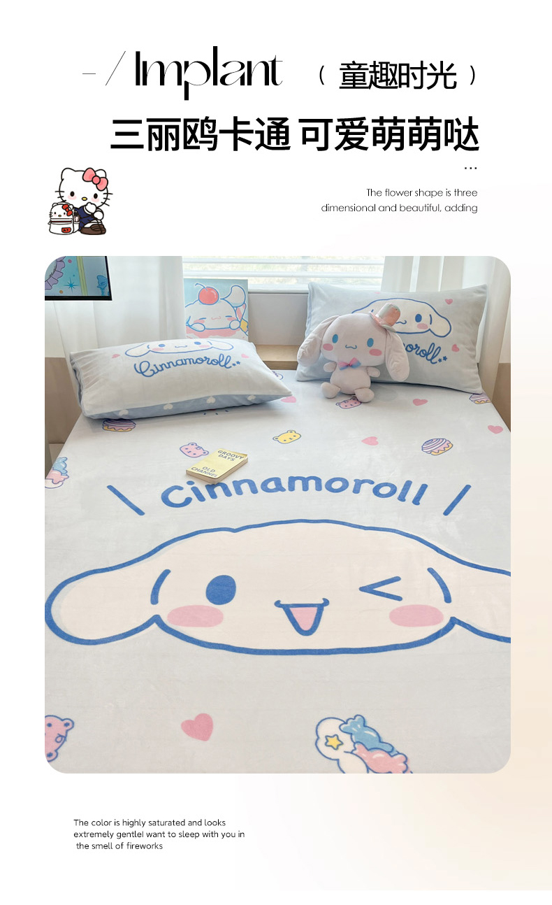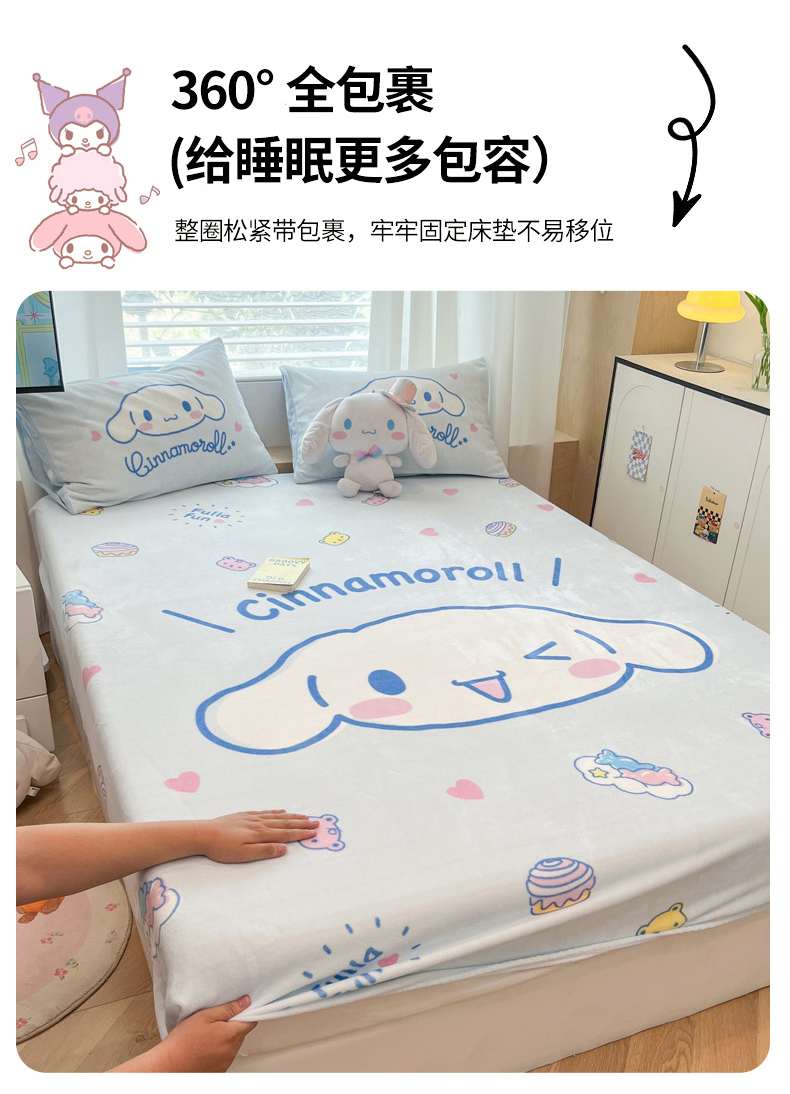暮思家居 2025新款正版授权三丽鸥大版牛奶绒数码印花单品床笠单件床笠(带标价格) 绒A版-开心玉桂狗