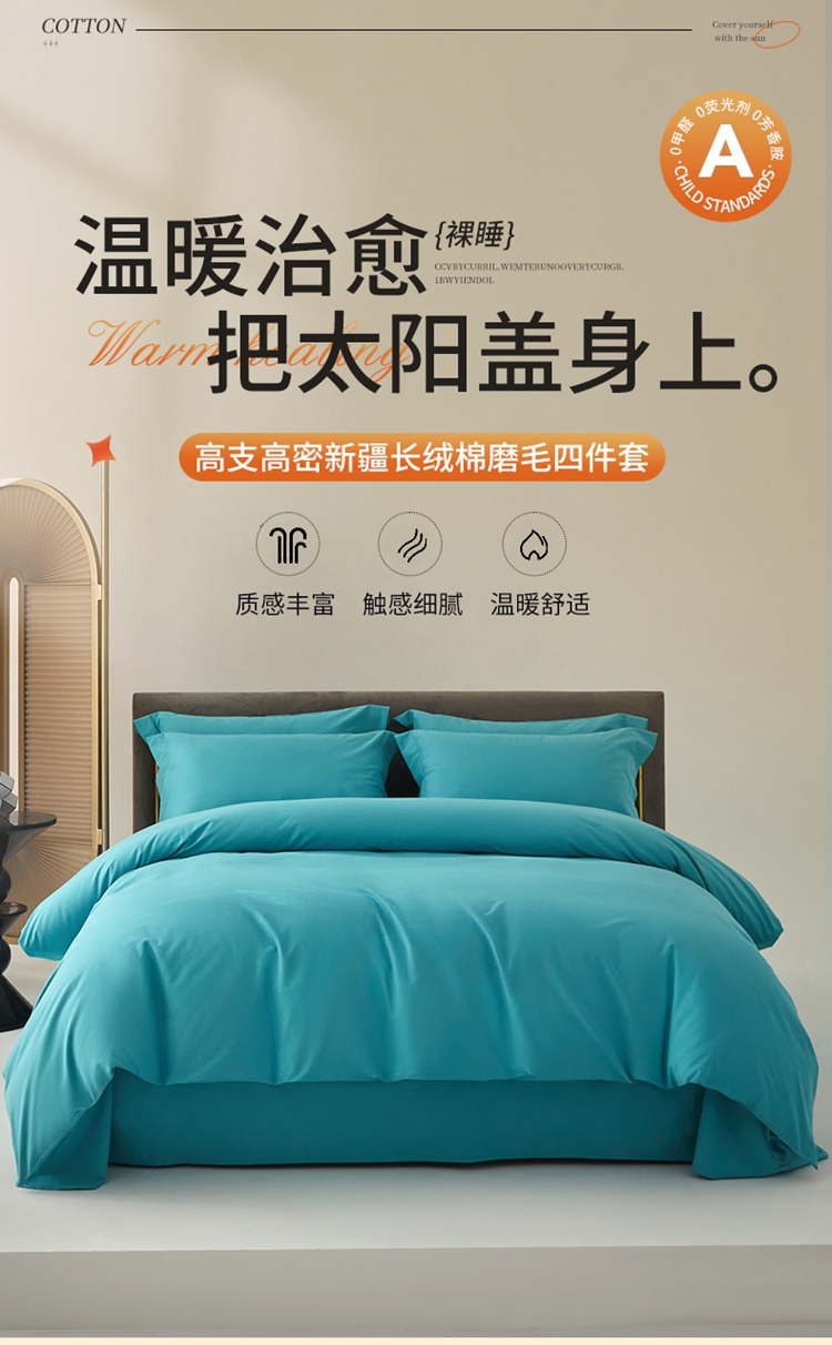 当前位置: 91家纺网 > 商品网购 > 床品套件 > 四件套 > 长绒棉四件套 > 柔觉家纺 新款50*50双股长绒棉纯色磨毛四件套 迈阿密兰