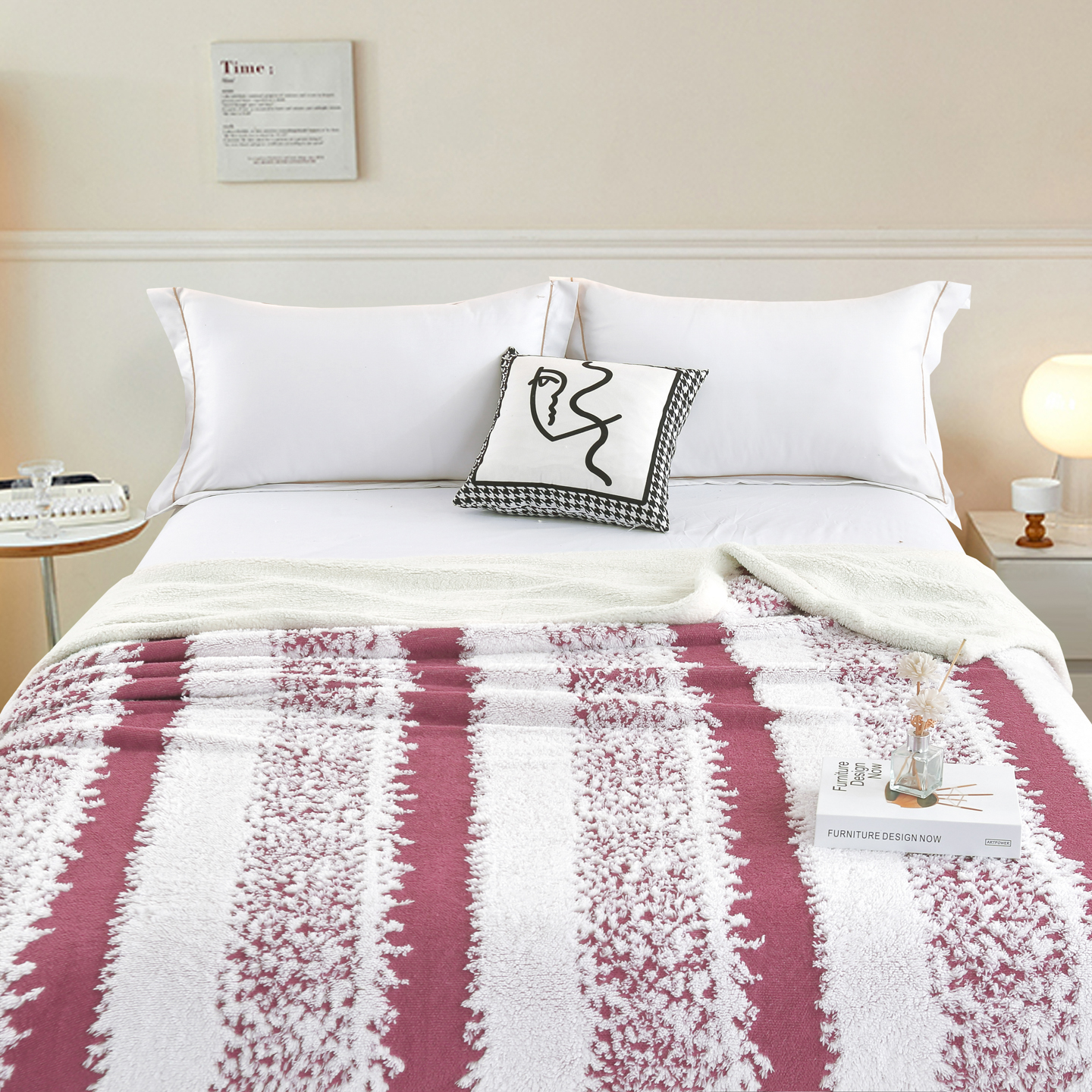 (总)巴木赫 2024新款舒棉绒点点塔芙绒双层配色羊羔绒沙发盖毯,茶绿配色,豆沙配色,灰蓝配色,米白配色,米杏配色,浅粉配色,深灰配色,银灰配色,棕咖配色