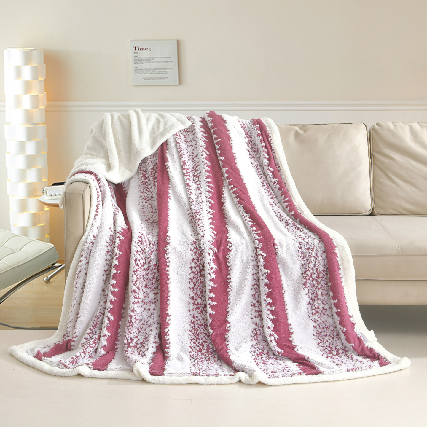 (总)巴木赫2025新款200g水墨印染抽条毛毯毯子,大理石纹,红棕,奶白,浅咖,深灰,水墨画,紫色,棕色