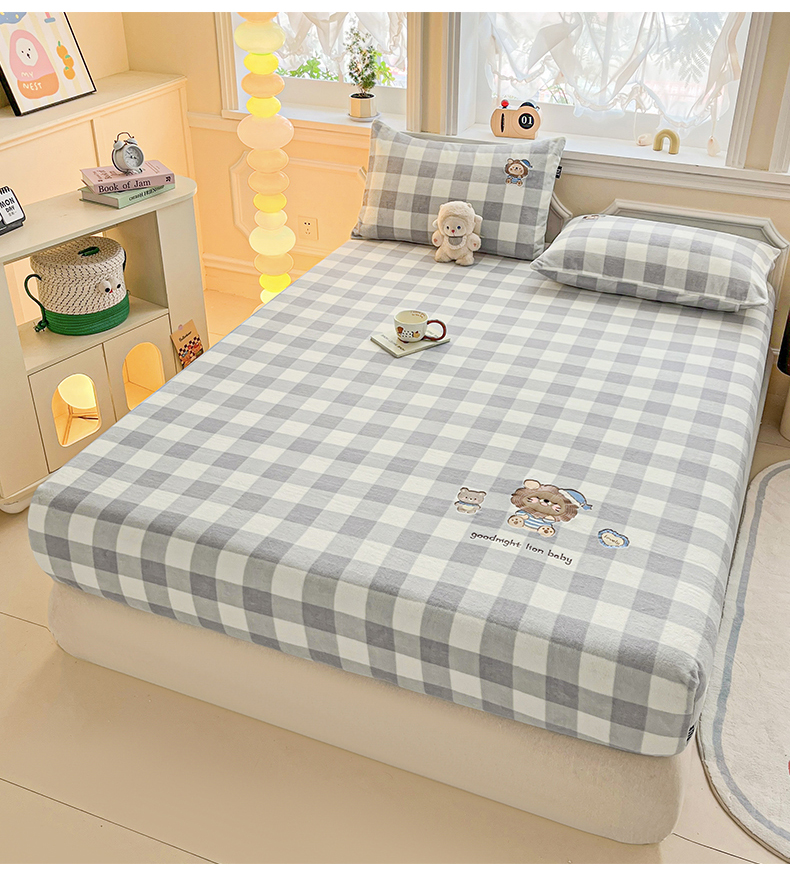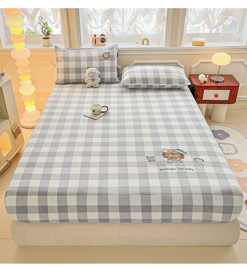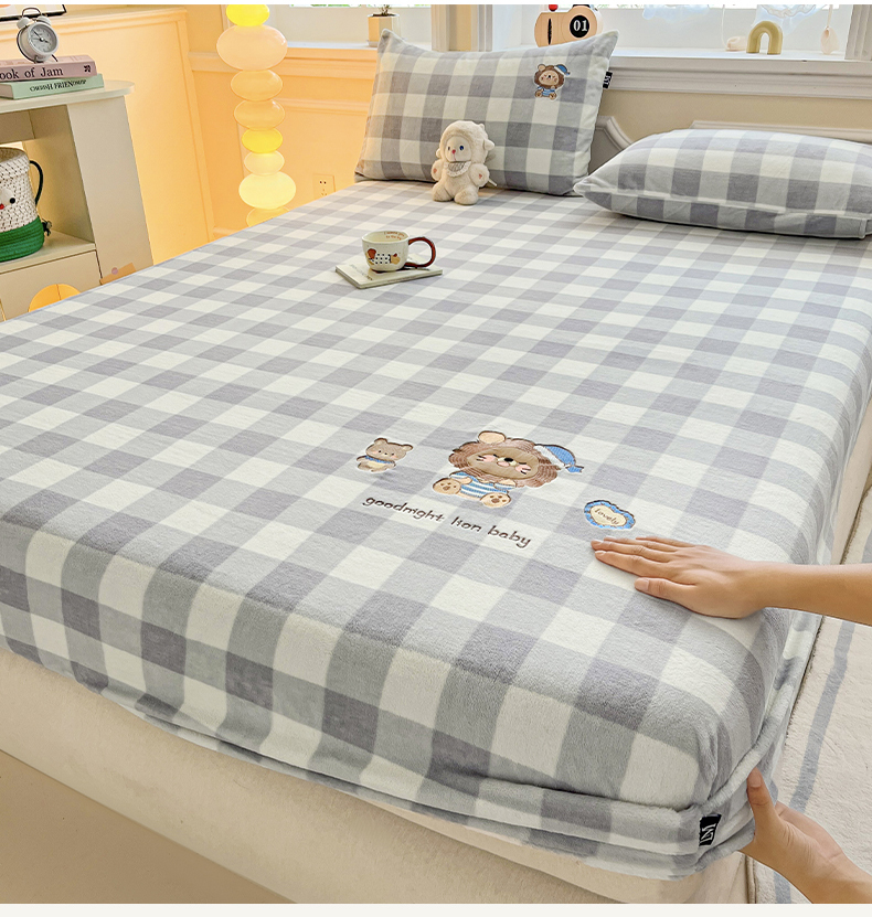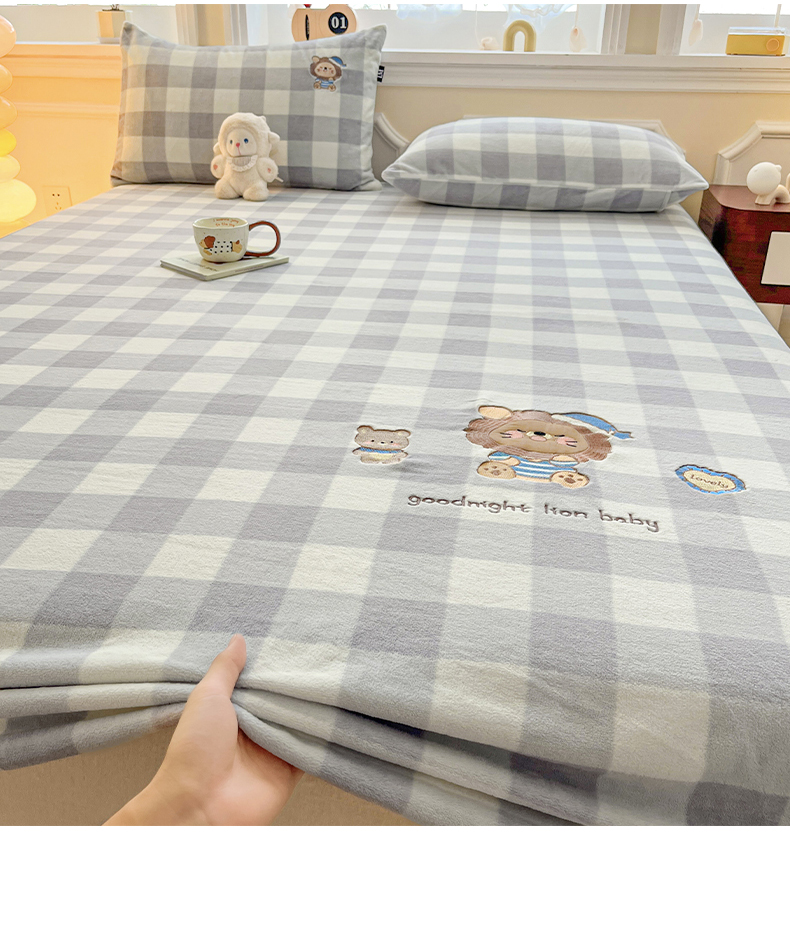 乐美家纺 2025新款A类高克重贴布绣牛奶绒床笠三件套 早安小狮子