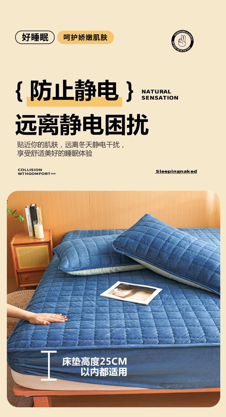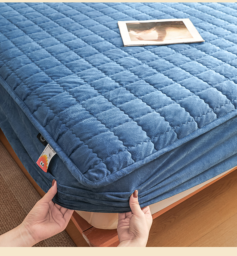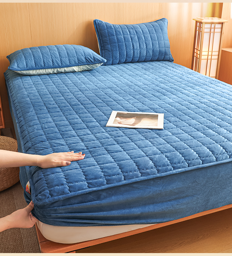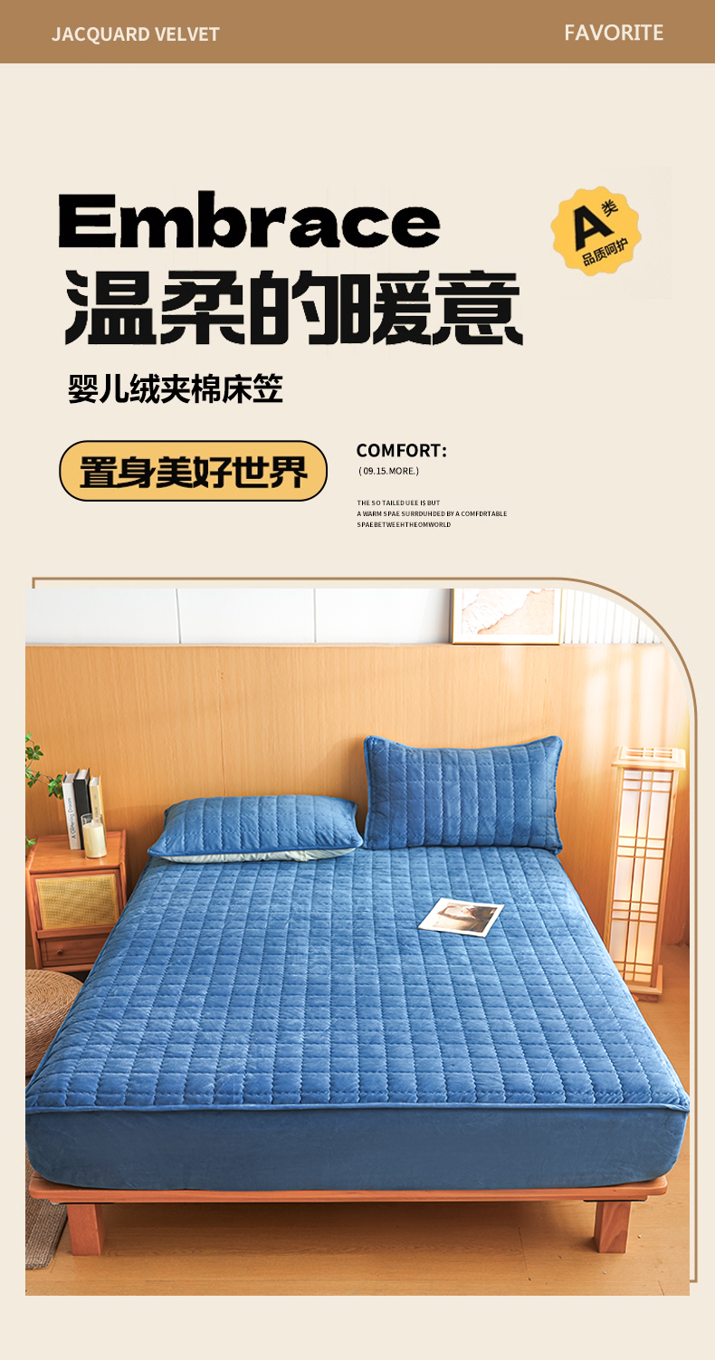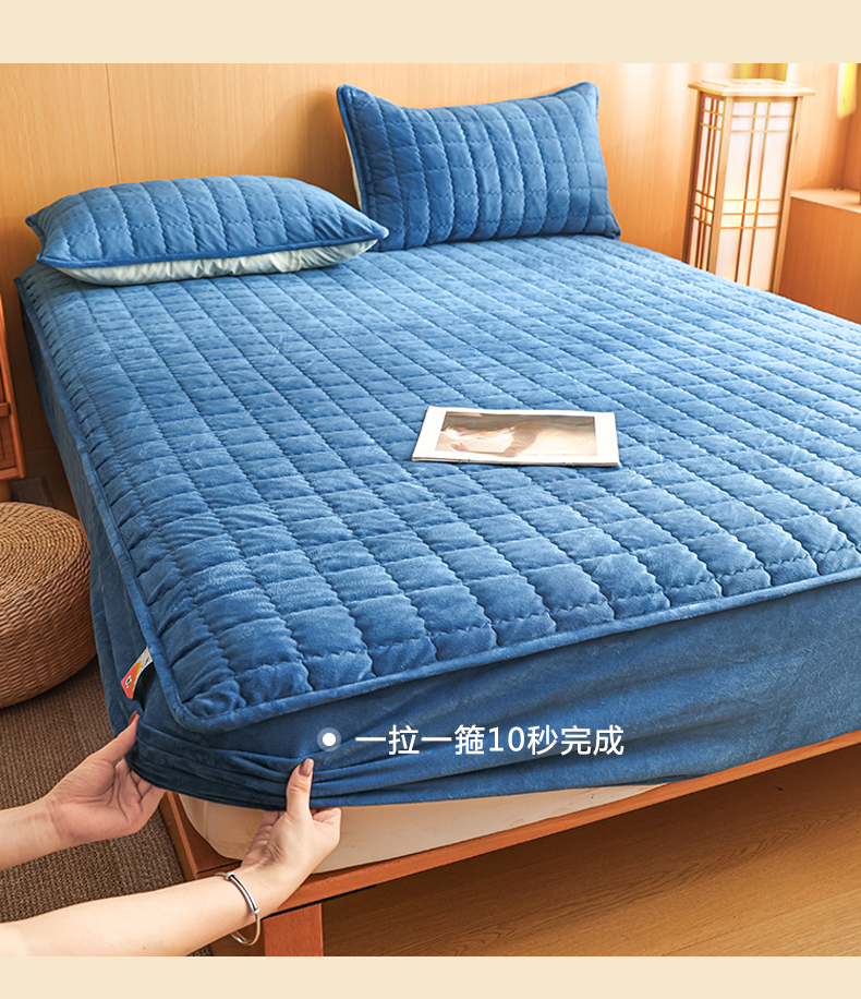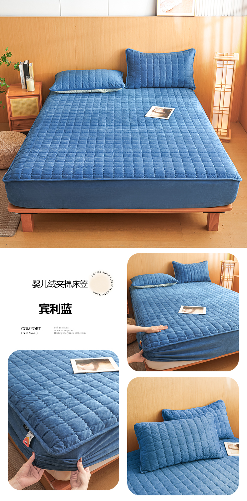 潮邦创意家居 2025新款婴儿绒夹棉床笠单品单件床垫保护套 宾利蓝