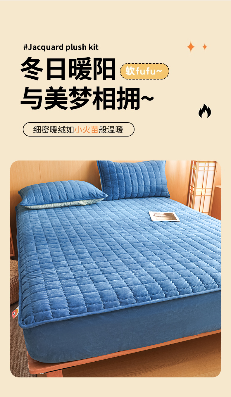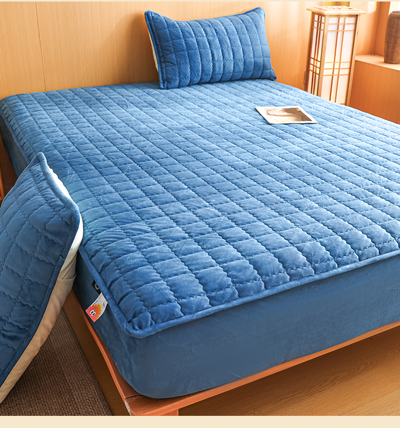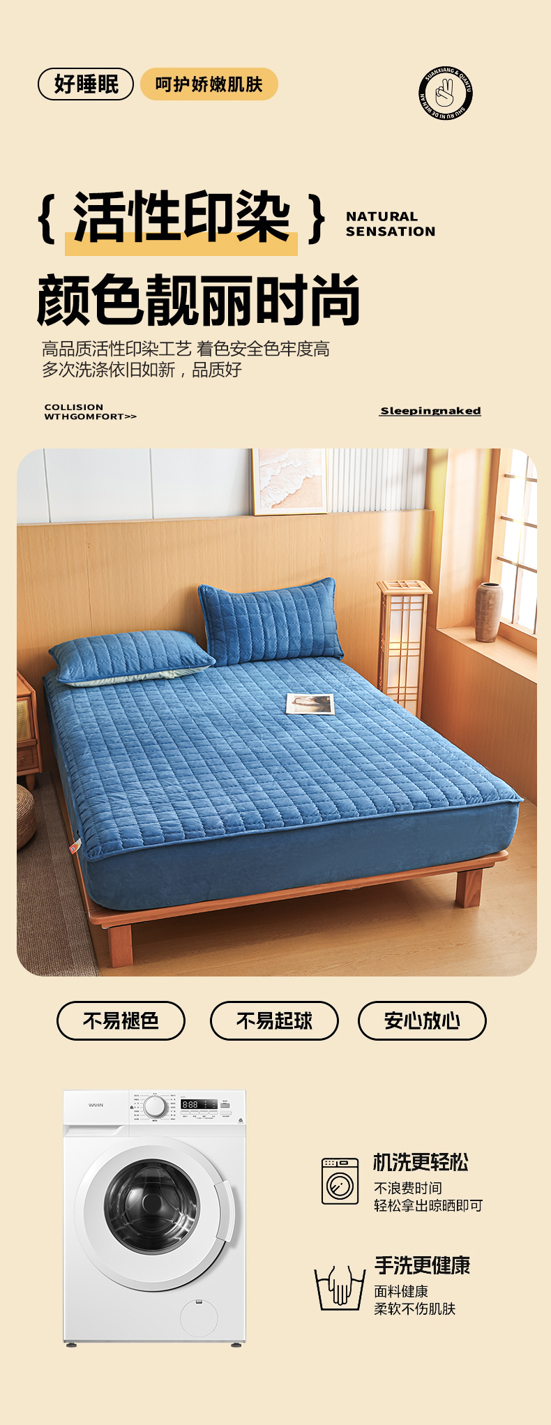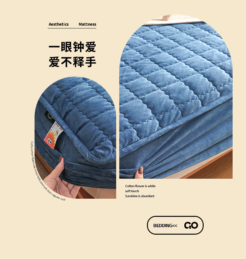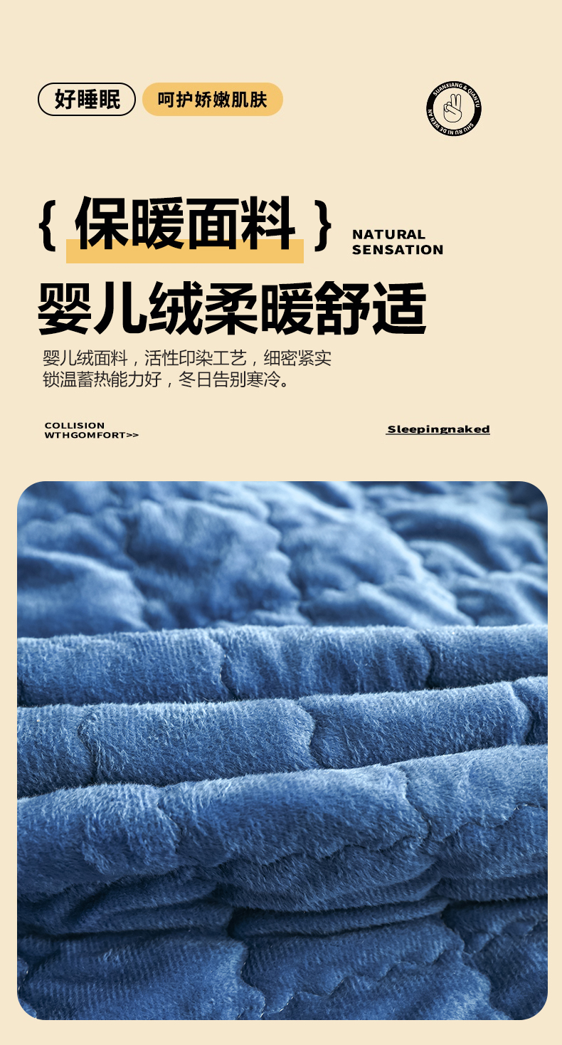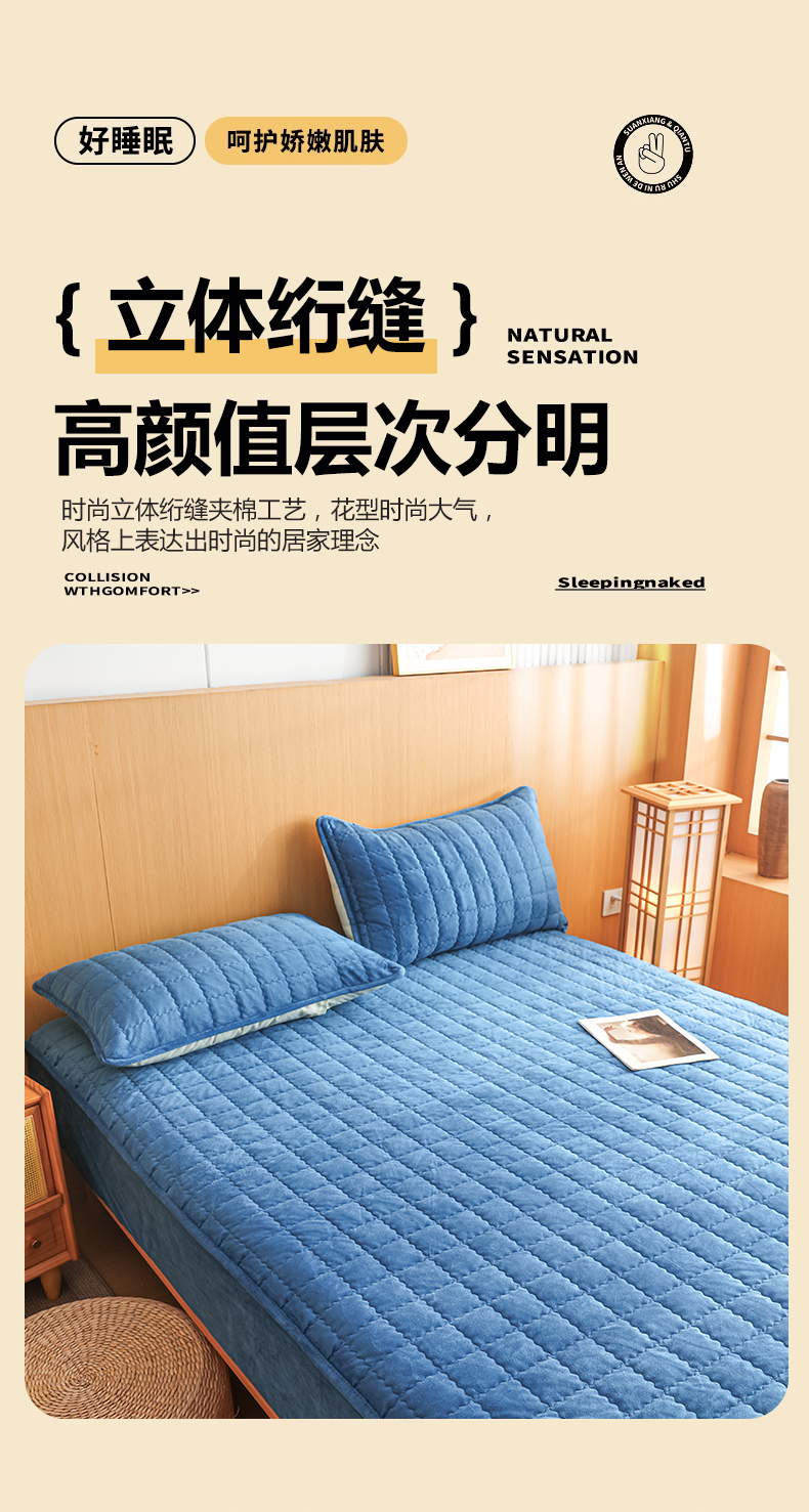 潮邦创意家居 2025新款婴儿绒夹棉床笠单品单件床垫保护套 宾利蓝