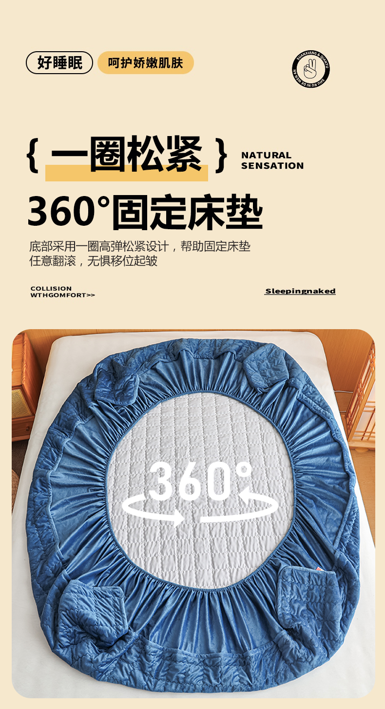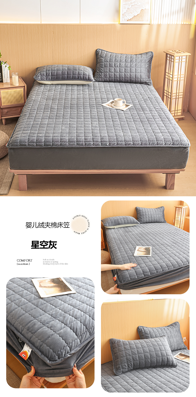 (总)潮邦创意家居 2025新款婴儿绒夹棉床笠单品单件床垫保护套,卡其,海棠粉,芋泥紫,星空灰,宾利蓝