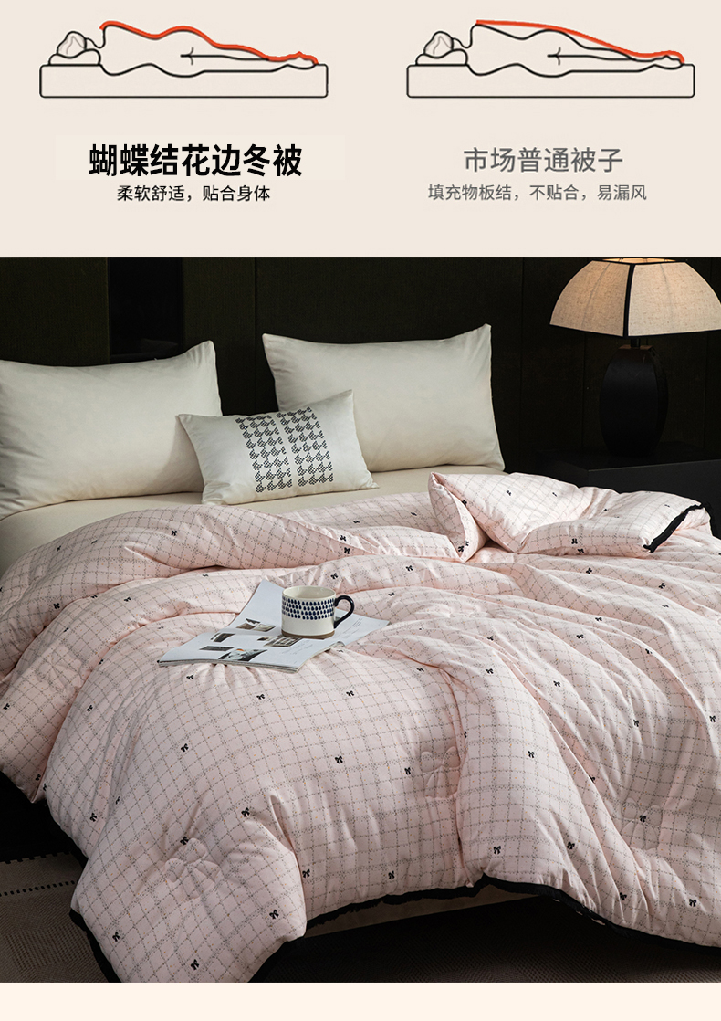 (总)大世界被王 2025新款蝴蝶结花边冬被被子被芯,粉色,白色,米色