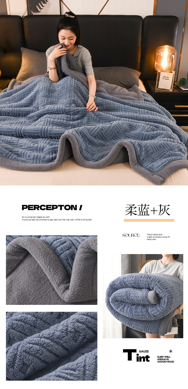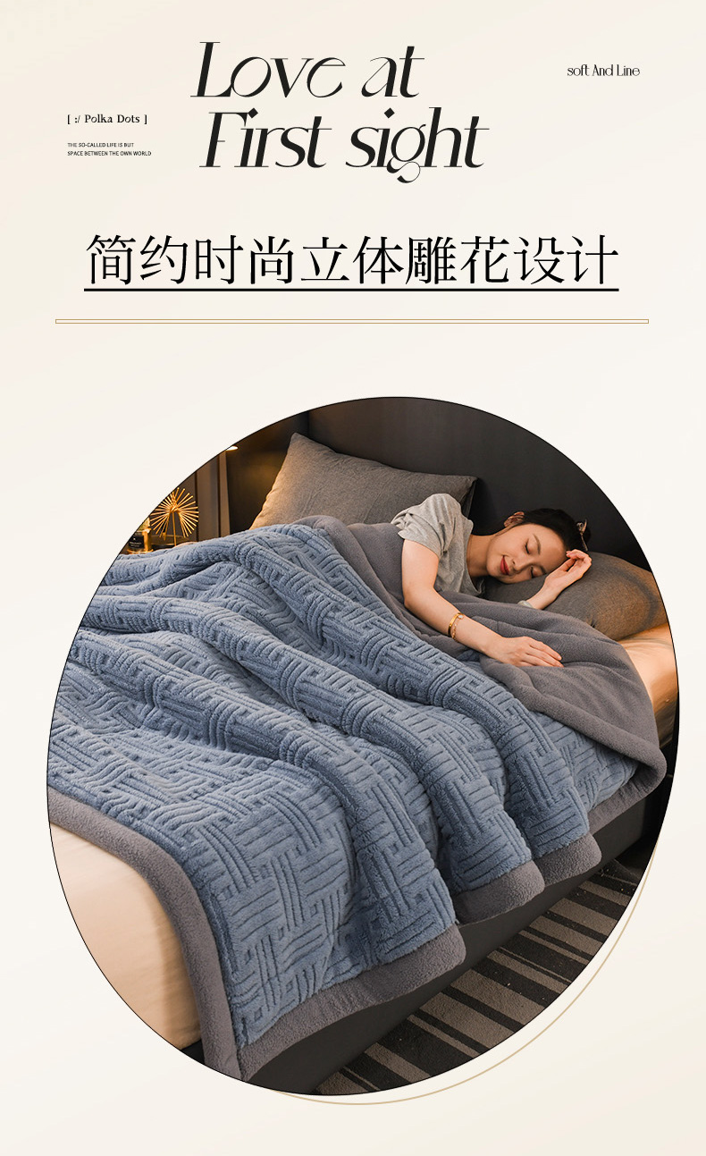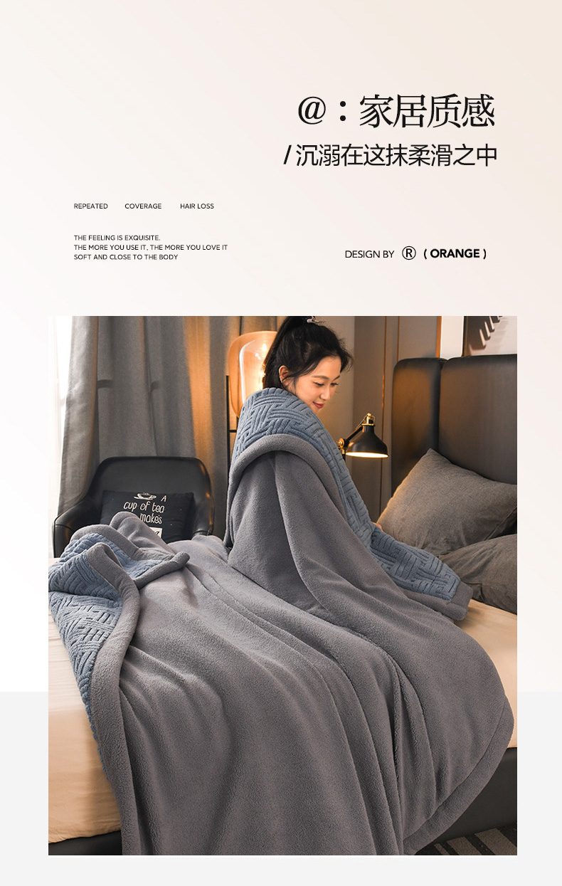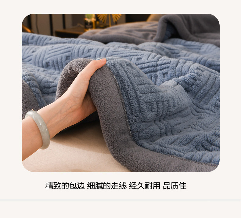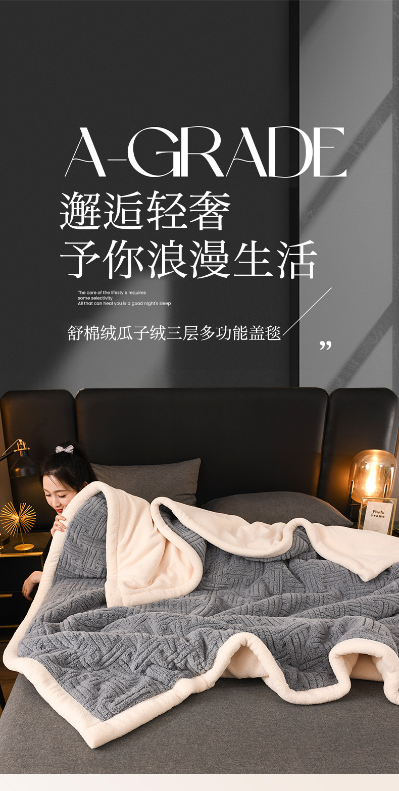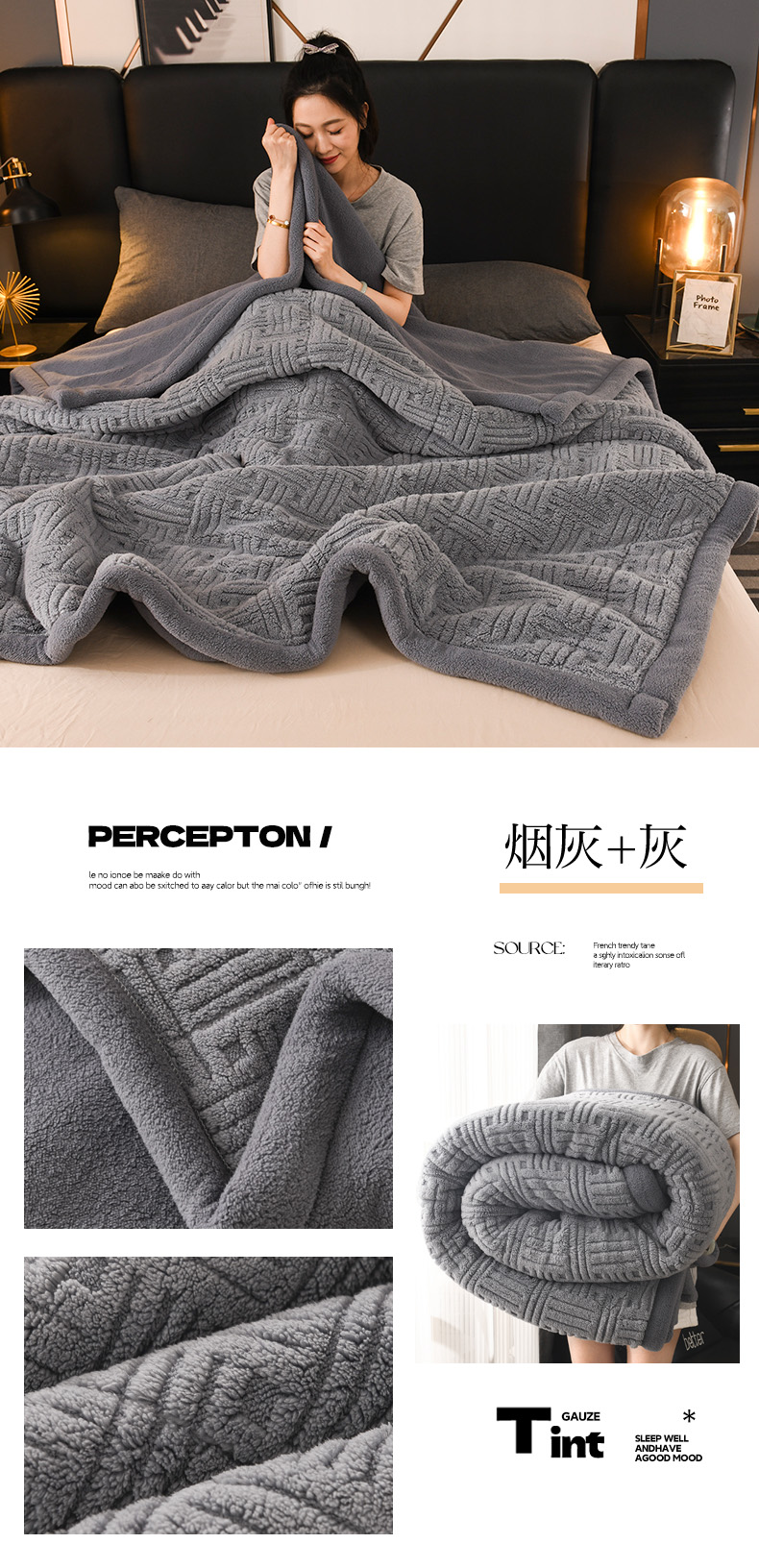 印季家纺 2025秋冬新款三层夹棉立体舒棉绒毛毯毯子多功能盖毯 烟灰