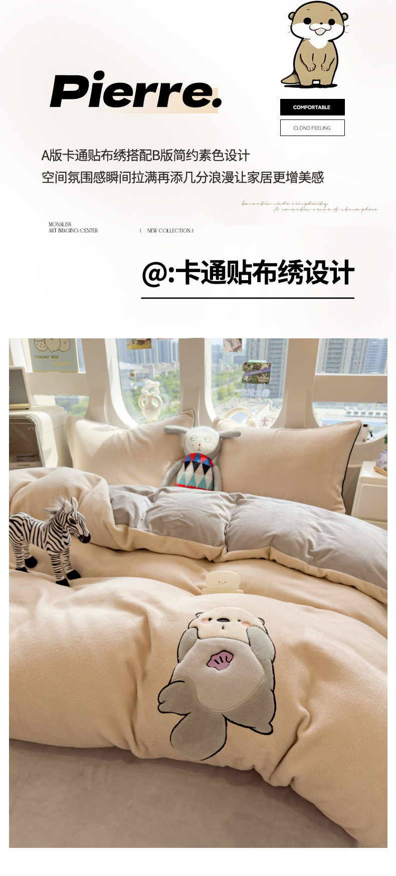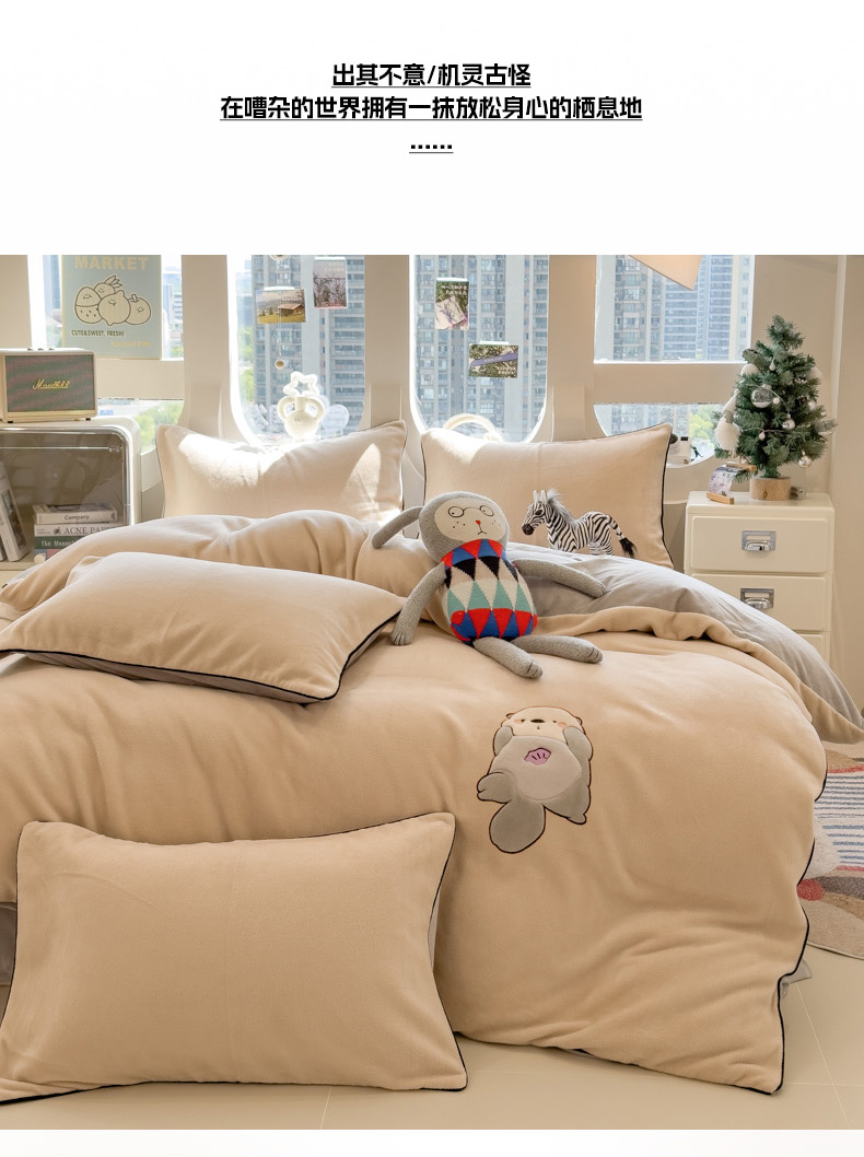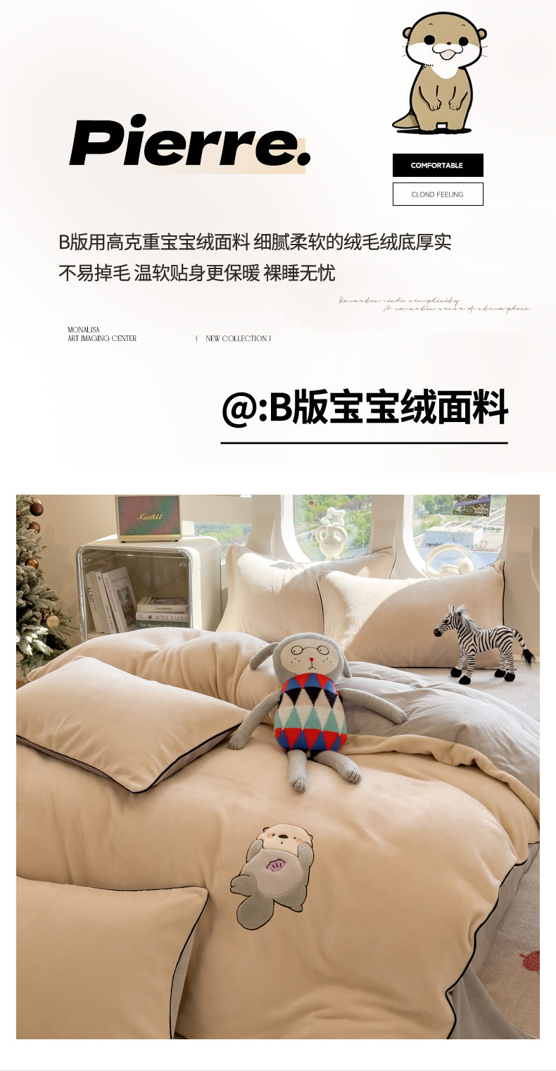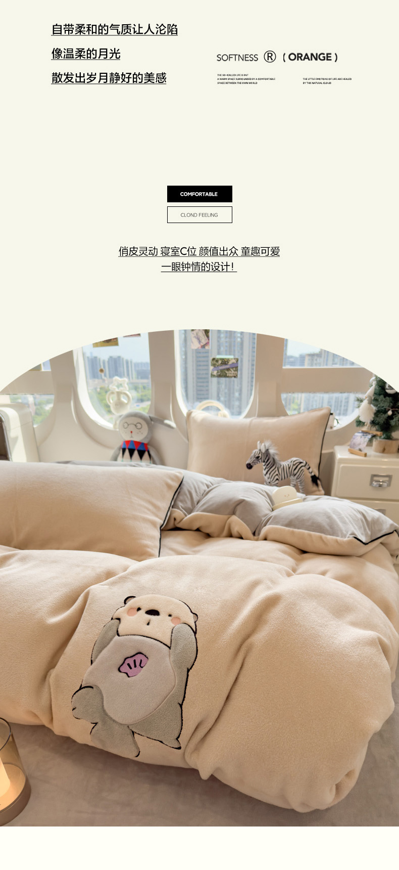 当前位置: 91家纺网 > 商品网购 > 床品套件 > 四件套 > 其它四件套 > 印季家纺 2025新款大肚腩-海獭绒贴布绣四件套 大肚腩-米粽-浅灰